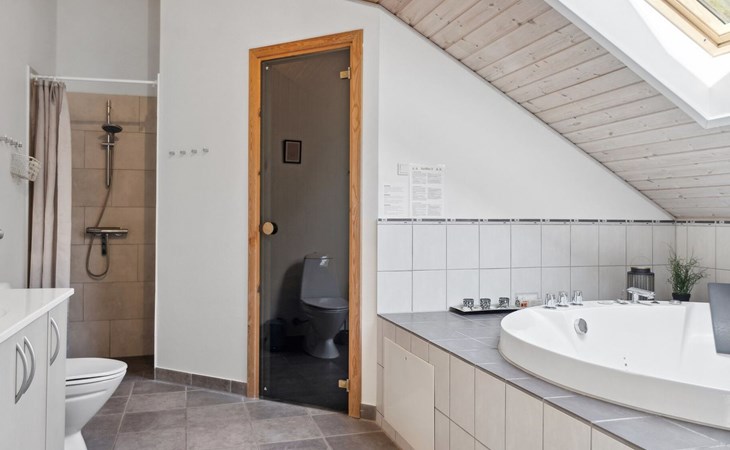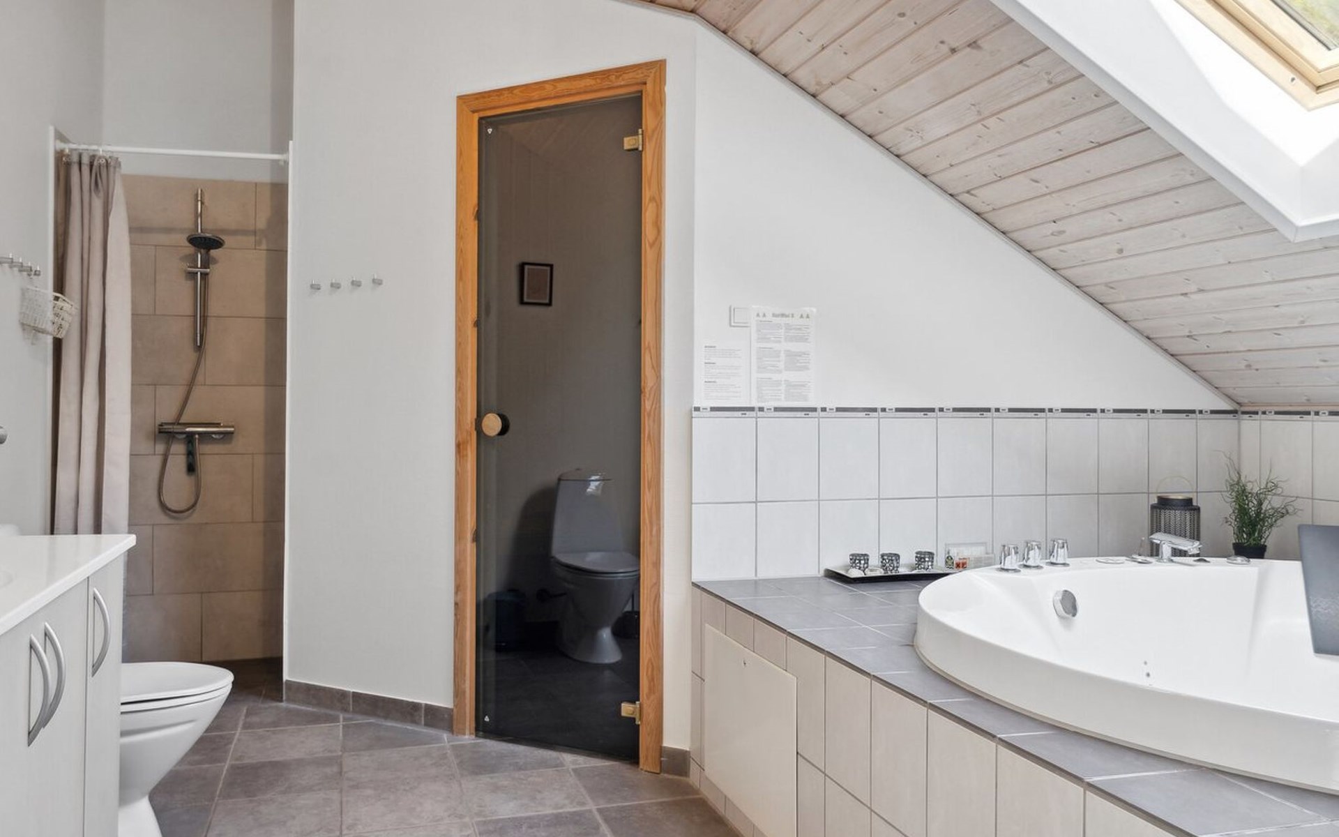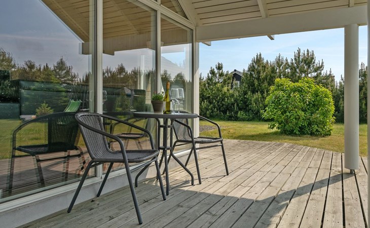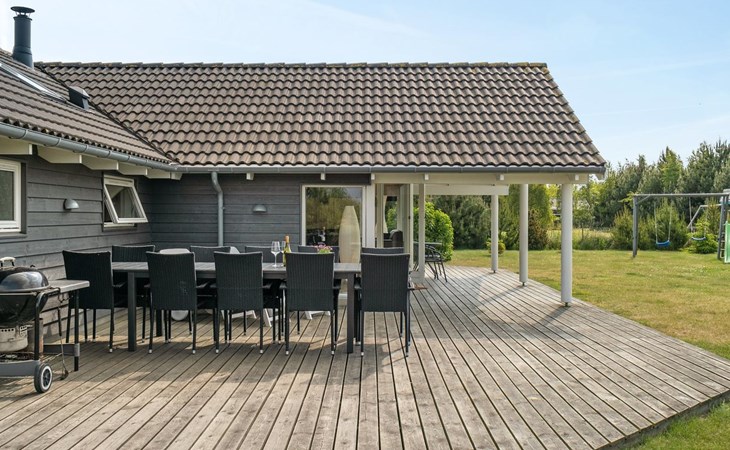 Eengezinswoning, bouwjaar 2008. 1.1 km van zee. Voor alleengebruik: terrein 1.401 m2, verzorgde tuin. Terras (90 m2), kinderspeelplaats (schommel). In het huis: sauna, wasmachine, droger. Parkeerplaats bij het huis. Oplaadstation. Levensmiddelenwinkel 900 m. Golfterrein 1 km. De eigenaar accepteert geen jeugdgroepen.