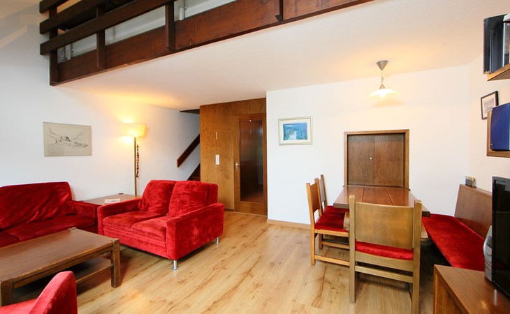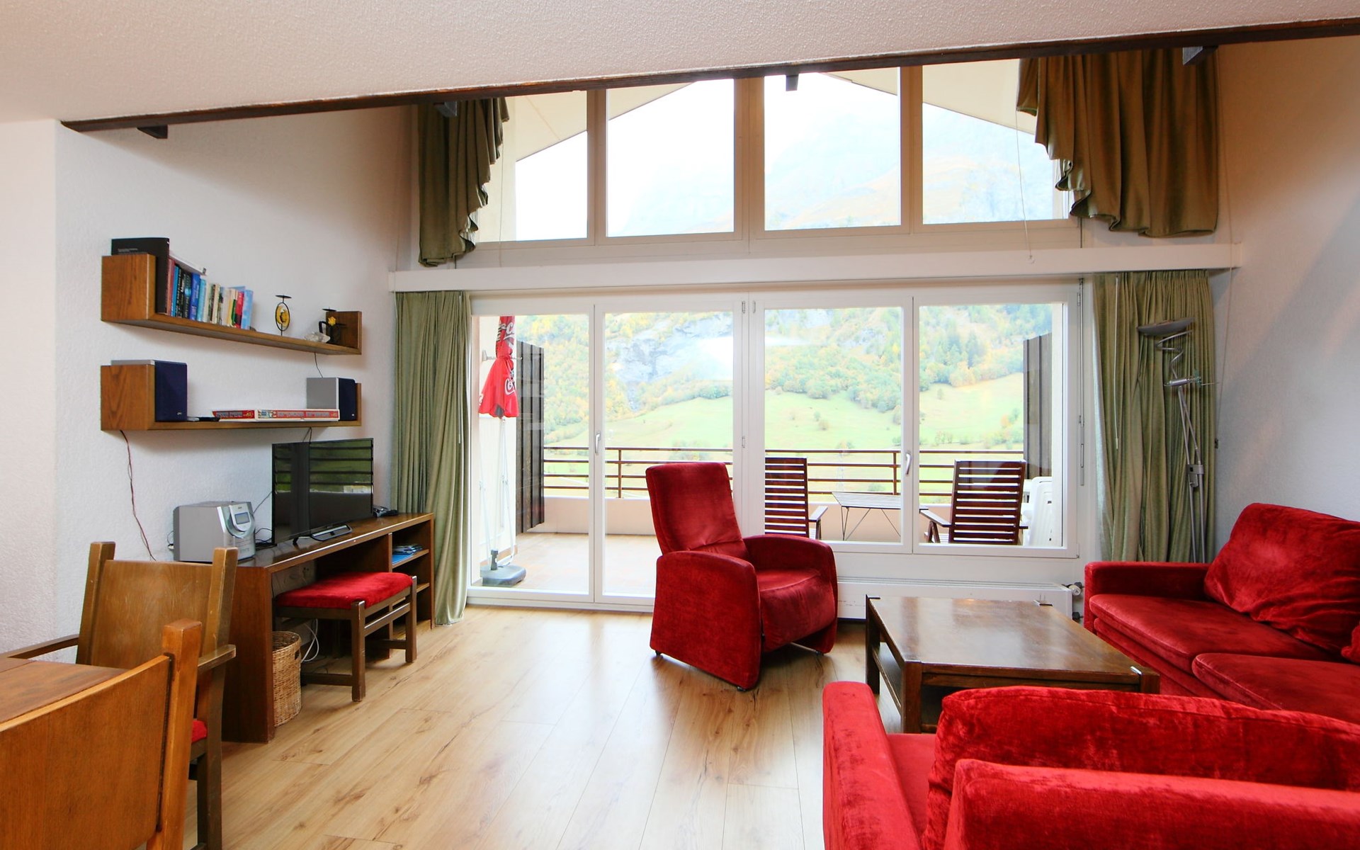 Residentie "Ringstrasse (Utoring)". In de plaats, 500 m van het centrum, 20 m van het skigebied. In het huis: bar, salon, tafeltennis, speelkamer, lift, bergruimte voor fietsen, berging voor ski's, centrale verwarming, wasmachine, droger (extra). Broodjesservice en drankjesservice. Toegangsweg tot aan het huis (bergweg). In de winter sneeuwkettingen aanbevolen, 's winters 4x4 aanbevolen. Parkeerplaats bij het huis, Openbare parkeergarage op 50 m, extra. Levensmiddelenwinkel, supermarkt, restaurant 500 m, bushalte "Leukerbad, Bristol" 250 m, openluchtzwembad 500 m, thermaalbad 300 m. Tennis 500 m, kabelbaan, ski faciliteiten, skipisten 20 m, rodelbaan, langlaufloipe 500 m, ijsbaan 1 km. Bekende skigebieden kunnen gemakkelijk worden bereikt: Leukerbad Torrent. Wandelgebied Gemmi 1 km. Het huis staat op een beboste helling op het zuidwesten, direct naast de Torrent-kabelbanen. Slechts een korte trappenweg scheidt het huis van het dalstation. Parkeermogelijkheid: in de winter parkeerplaats CHF35.00/week, garage CHF 70.00/week, in de zomer parkeerplaats gratis, garage CHF 35.00/week.