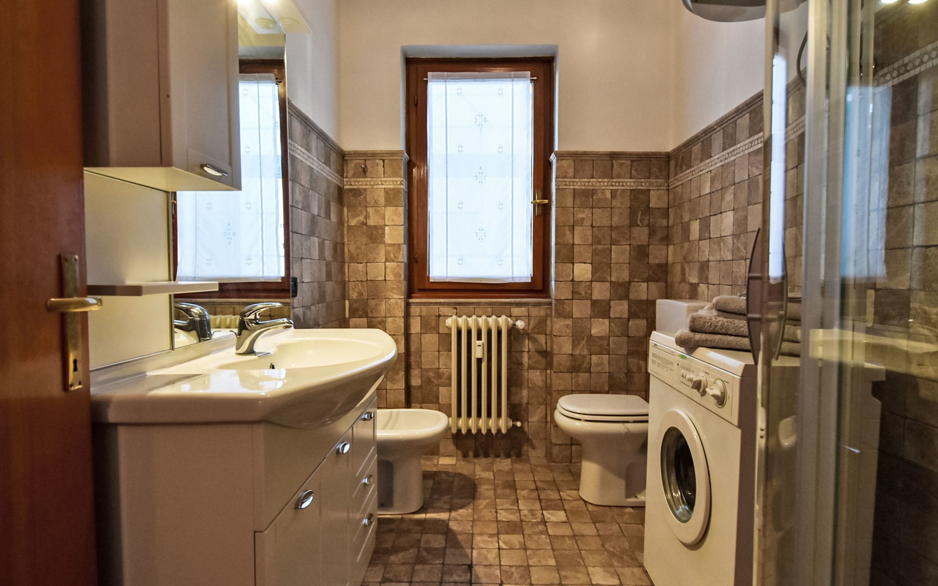 Klein, comfortabel appartementencomplex "Monte Livrio", 1.225 m boven zeeniveau, van 5 verdiepingen. In het centrum van Bormio, rustige, zonnige ligging in een woonwijk, perfecte locatie: in het centrum en toch rustig gelegen, 1.2 km van het skigebied. Voor medegebruik: tuin met planten en bomen. In het huis: lift, berging voor ski's, centrale verwarming. Openbare parkeerplaatsen in de straat. Supermarkt 500 m, restaurant, bar, café 300 m, bushalte 150 m, thermaalbad "Terme di Bormio" 250 m. Kinderspeelplaats 50 m. Attracties in de buurt: Parco Nazionale dello Stelvio. Bekende skigebieden kunnen gemakkelijk worden bereikt: Bormio 2000 10 m, Santa Caterina Valfurva 13 m, Livigno 36 m. Wandelgebied Croce della Reit, Val Zebrù, Sentiero Glaciologico Alto, Malga di San Colombano, Val Viola.