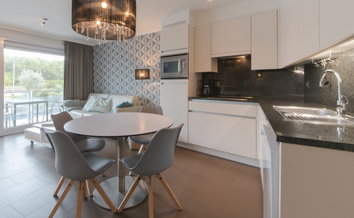 Moderne residentie "Residentie Albatros", van 5 verdiepingen. In het centrum van Bredene, 200 m van zee, van het strand. In het huis: lift. Wissel van linnengoed (extra wissel te betalen). Schoonmaak op verzoek (extra). Eigen garage. Supermarkt 50 m, restaurant 20 m, tram "'DE LIJN'" 200 m, station "NMBS 'station Oostende'" 6 km. Golfterrein (18 holes) 6 km, zeilschool 1 km. Attracties in de buurt: Markt (dinsdagmorgen) 100 m, Boudewijn Seapark 26 km, Brugge 26 km, Plopsaland De Panne 48 km. Baby uitrusting (incl.). De eigenaar accepteert geen jeugdgroepen. De omgeving is gevoelig voor geluidsoverlast. Gelieve geen lawaai te maken en de rust te bewaren. Groepen jongeren niet toegestaan.