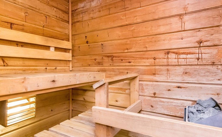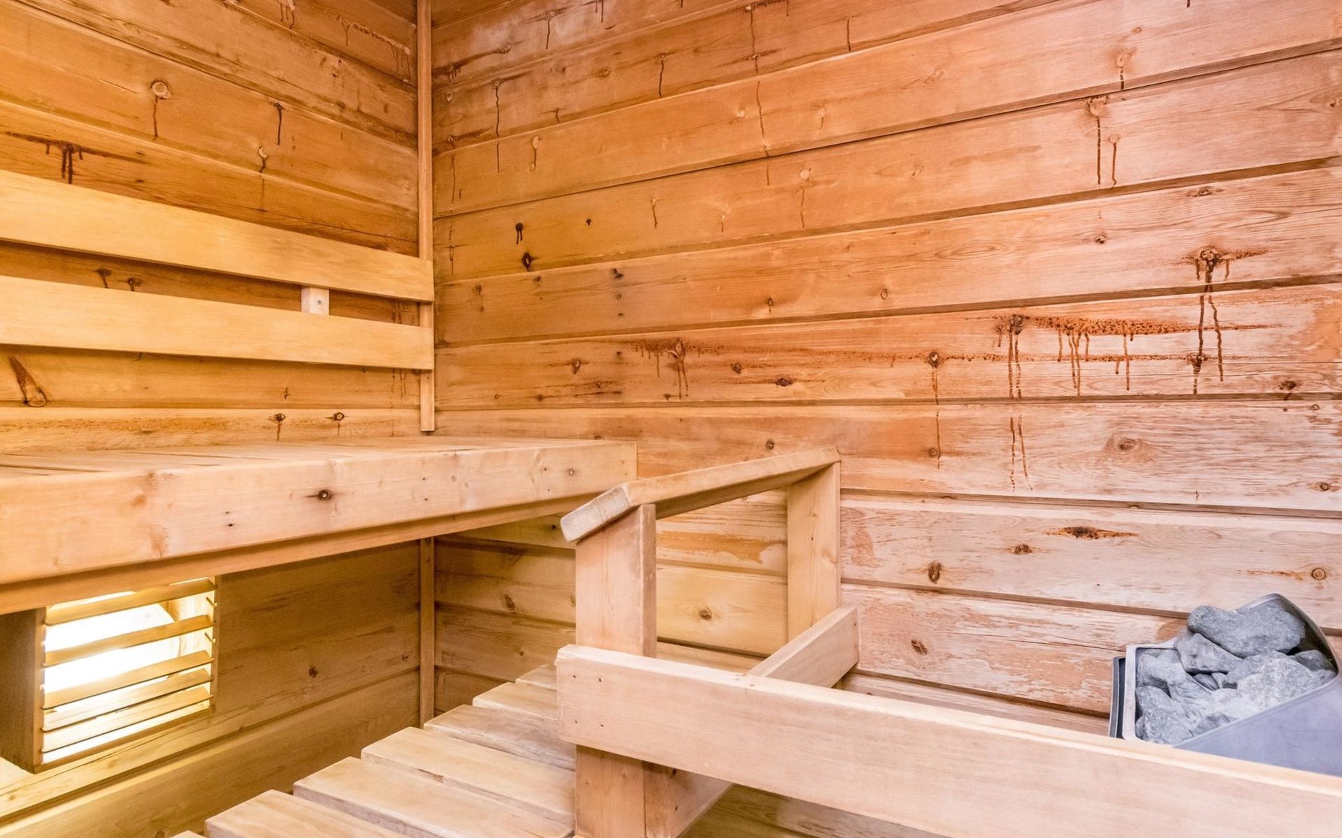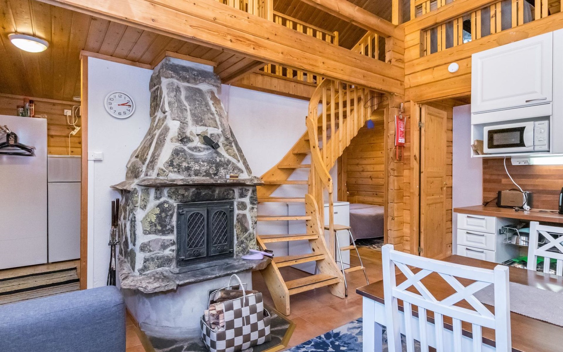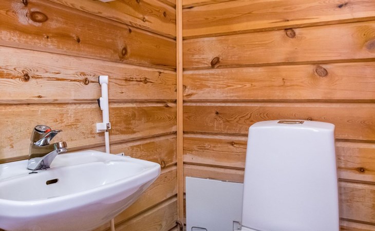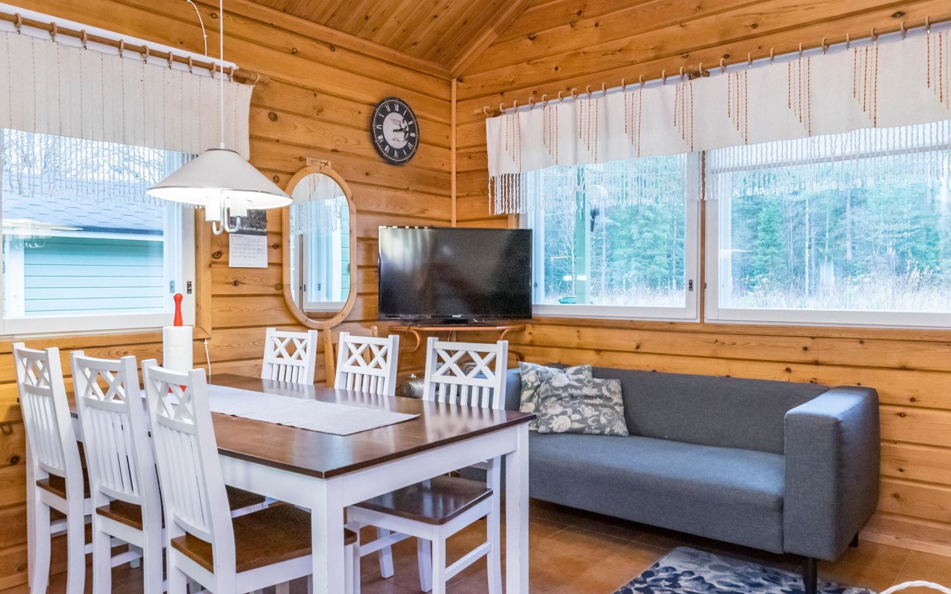 Log cabin with paneled interior built in 1990. Living room/kitchen, 2 bedrooms with double beds, sleeping loft (28m²) with 4 mattresses, sauna (electric stove), washroom and open porch.