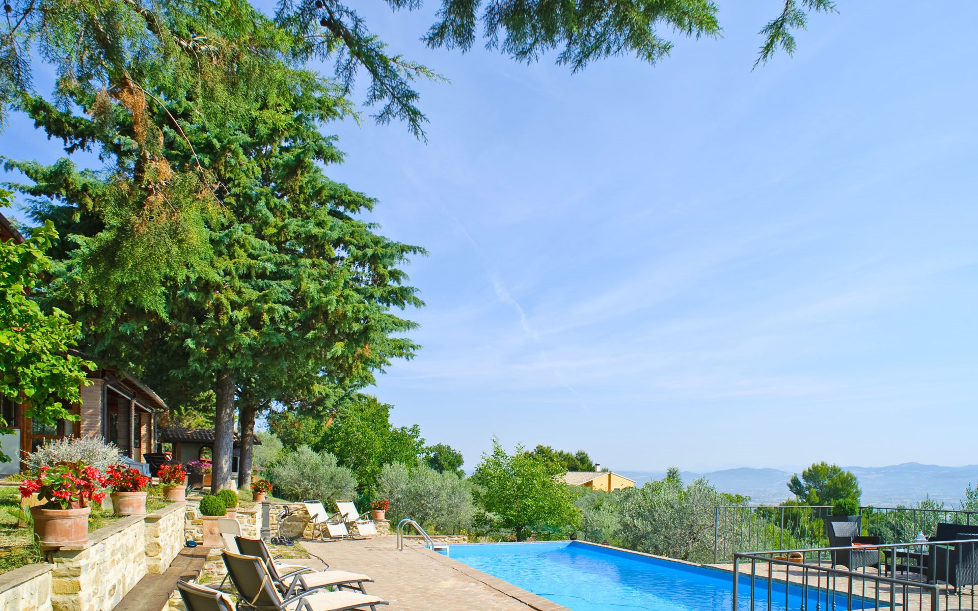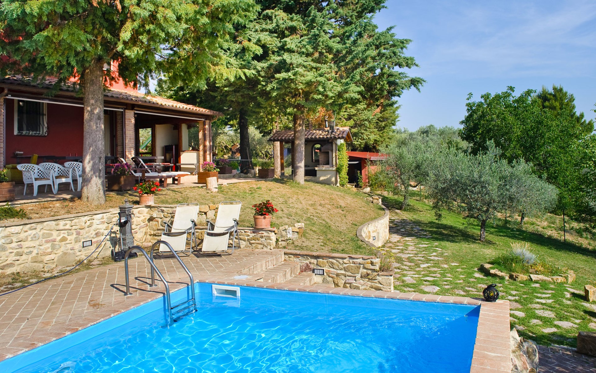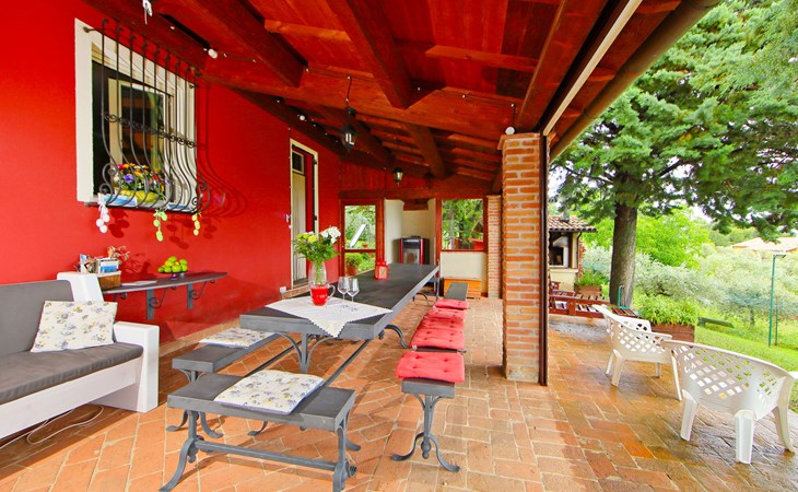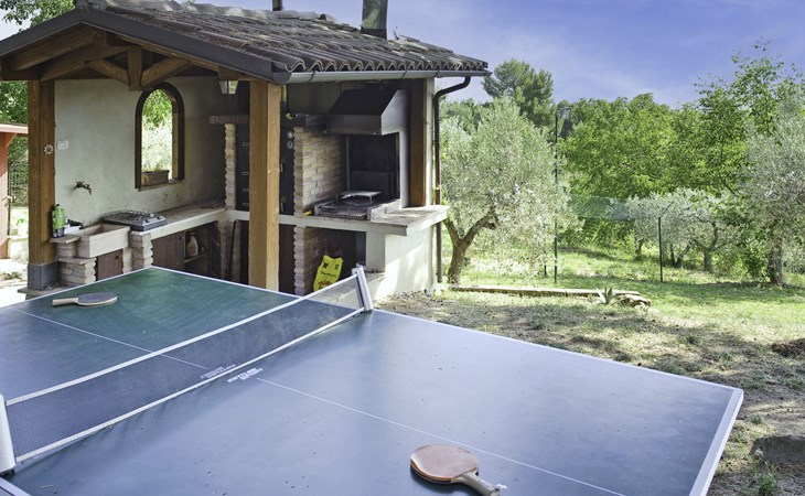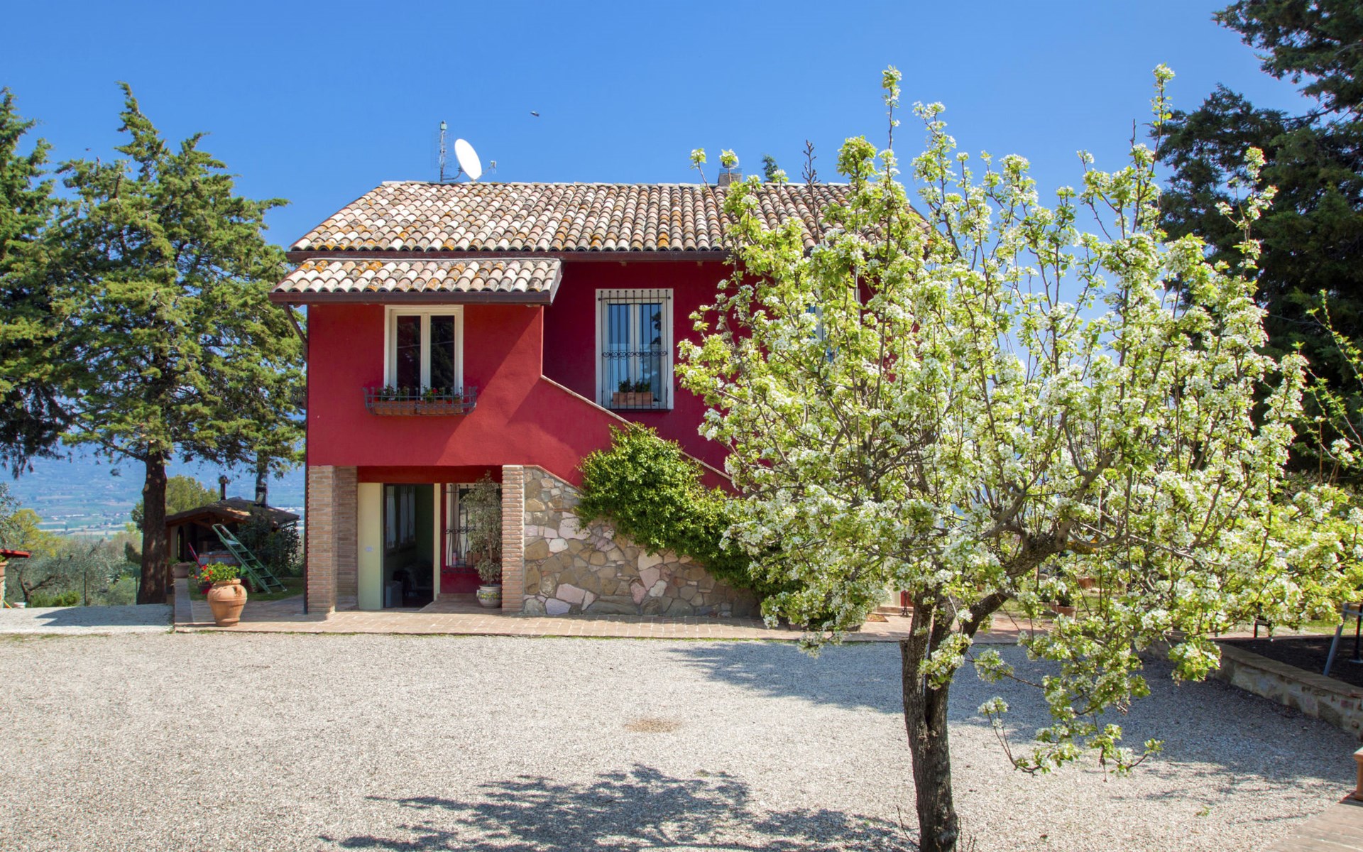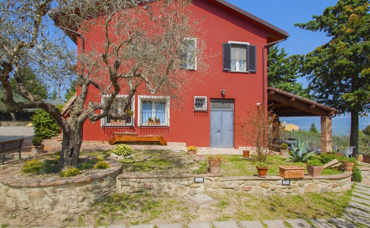 Mooi landhuis "Agriturismo la Casetta di Chiara", 500 m boven zeeniveau, gerenoveerd. 13 km van het centrum van Bevagna, 20 km van het centrum van Assisi, rustige, zonnige ligging, te midden van groen. Voor alleengebruik: groot tuin 1 ha (omheind), openluchtzwembad (4 x 9 m, 140 cm diepte, seizoensgebonden beschikbaarheid: 15.Mei. - 15.Okt.). Buitendouche, patio, tuinmeubelen, grill, kinderspeelplaats. In het huis: wasmachine. Op verzoek. Toegangsweg (1 km onverharde weg). Parkeerplaats op het terrein. Levensmiddelenwinkel 8 km, supermarkt 8 km, restaurant 1 km, bushalte 6.7 km, meer (zwemmen) "Trasimeno" 50 km. Attracties in de buurt: Spello 18 km, Perugia 30 km, Todi 35 km. Auto noodzakelijk. Geschikt voor families, baby uitrusting op aanvraag. Omgeven door een heuvelachtig landschap met uitzicht op Assisi, 'La Letizia' is een mooi huis gebouwd in perfecte harmonie met de omringende natuur. Het huis is gebouwd op twee niveaus: de 2 verdiepingen zijn alleen met elkaar verbonden via een trap aan de buitenkant.