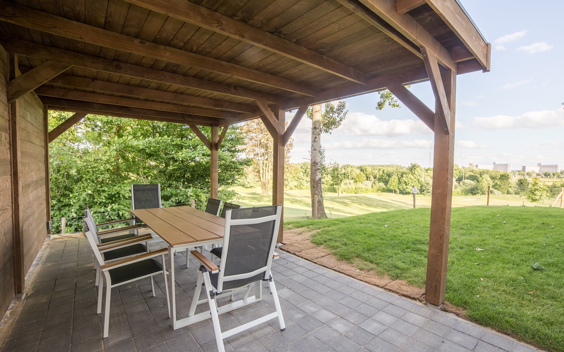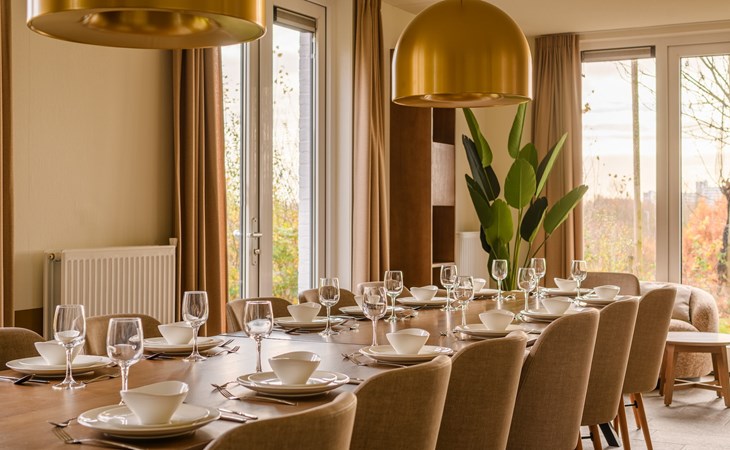 Overnacht in deze comfortabele groepsaccommodatie met vrij uitzicht over de golfbaan! De Hofstede Comfort biedt ruimte aan 14 personen, de woning heeft 7 slaapkamers, 4 badkamers en een gebruiksoppervlakte van circa 210 m2.