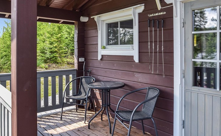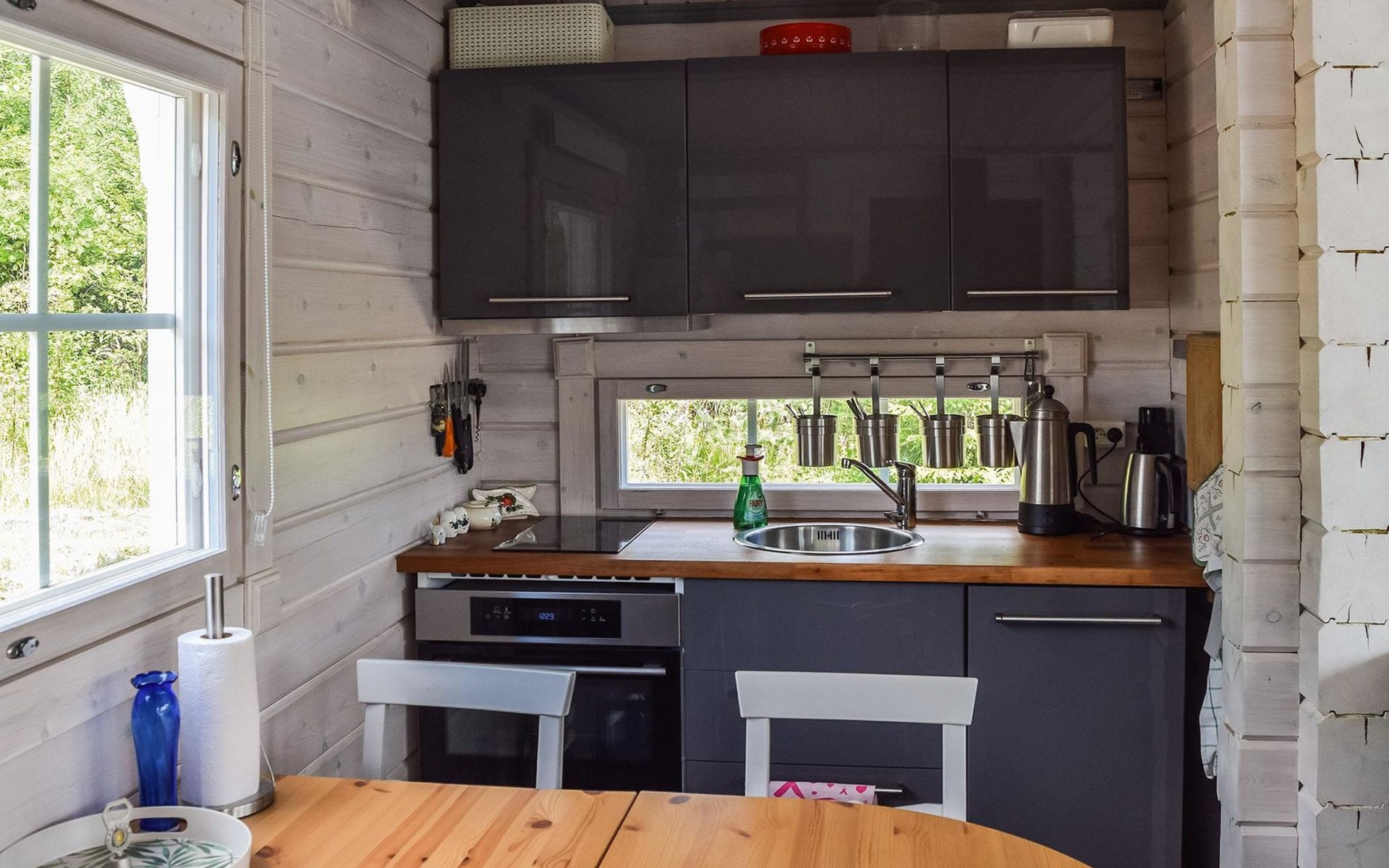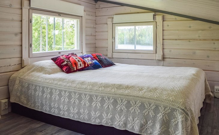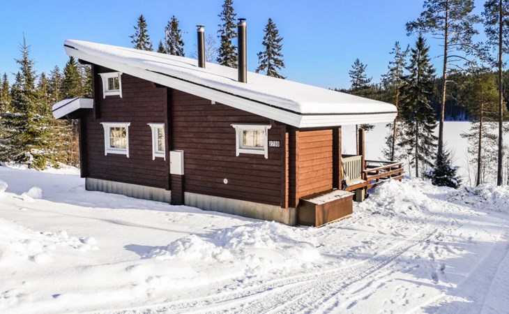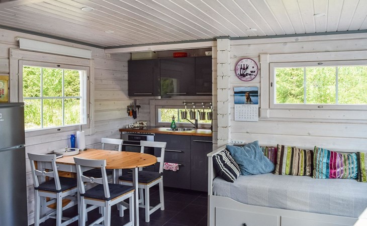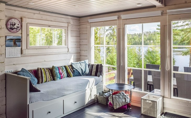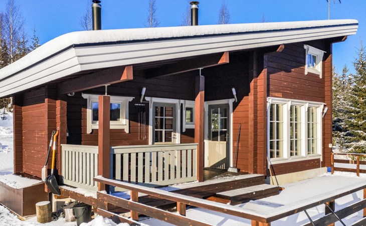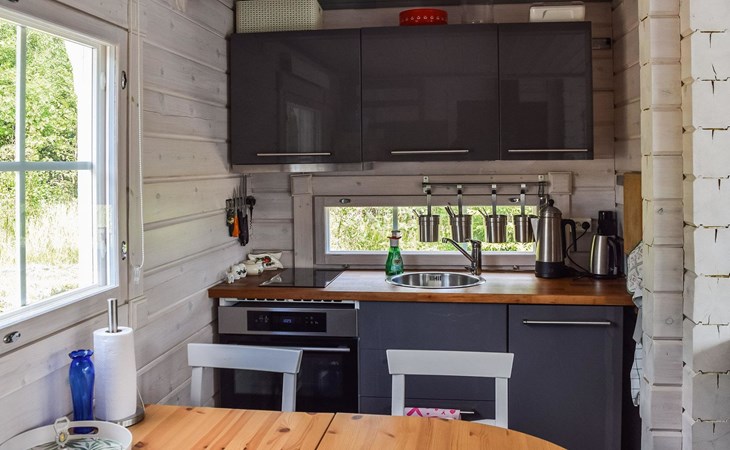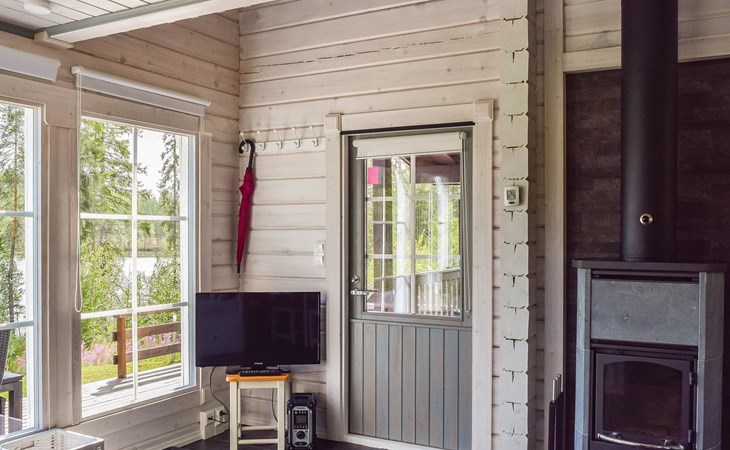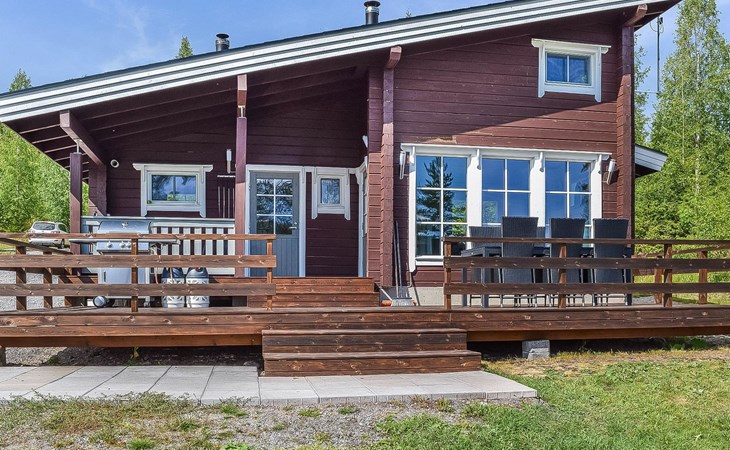 Log cottage 2016, kitchen-living room with sofa bed (160 x 200 cm wide), washroom with shower, sauna (wood stove), terraces on two levels 30 m².