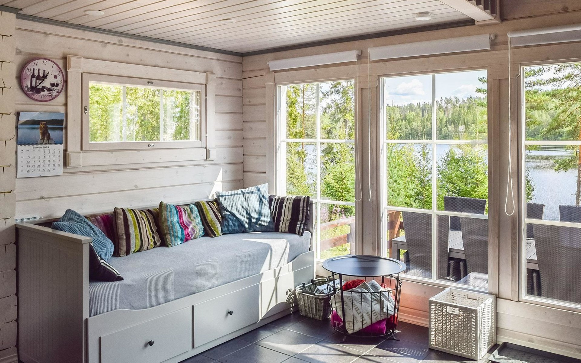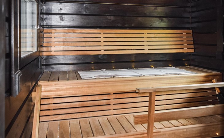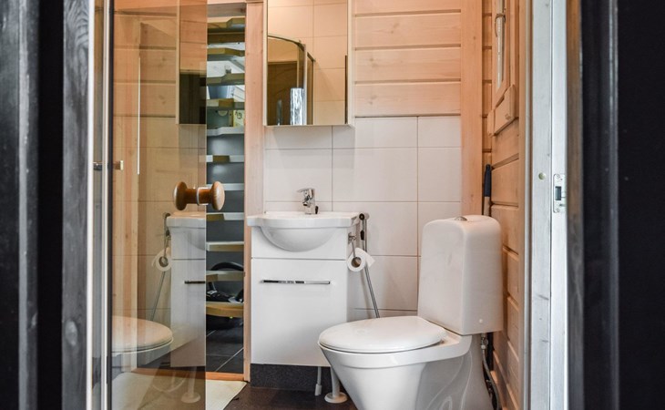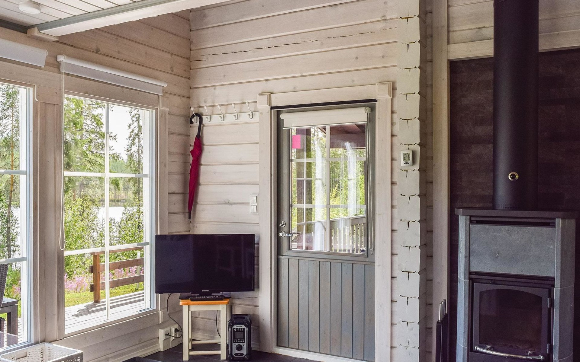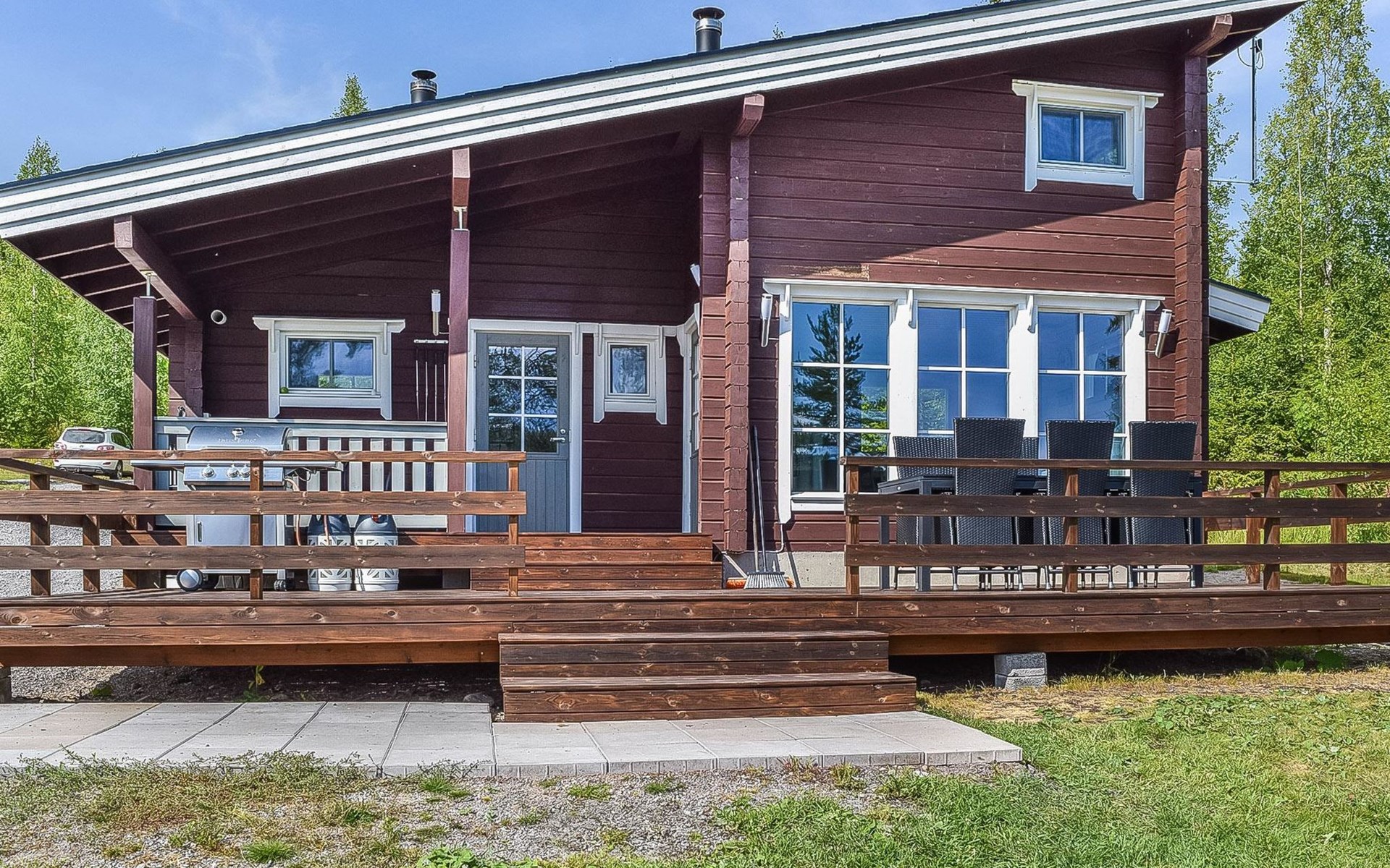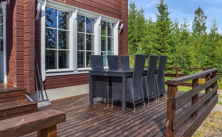 Log cottage 2016, kitchen-living room with sofa bed (160 x 200 cm wide), washroom with shower, sauna (wood stove), terraces on two levels 30 m².