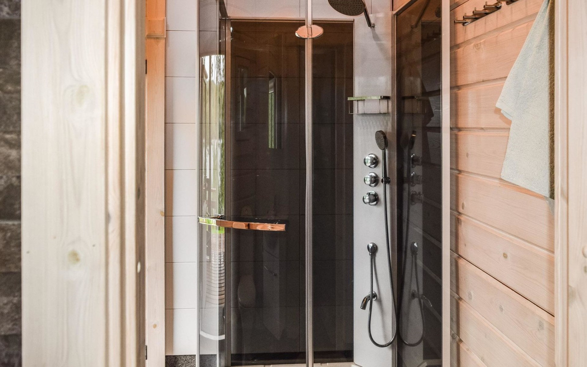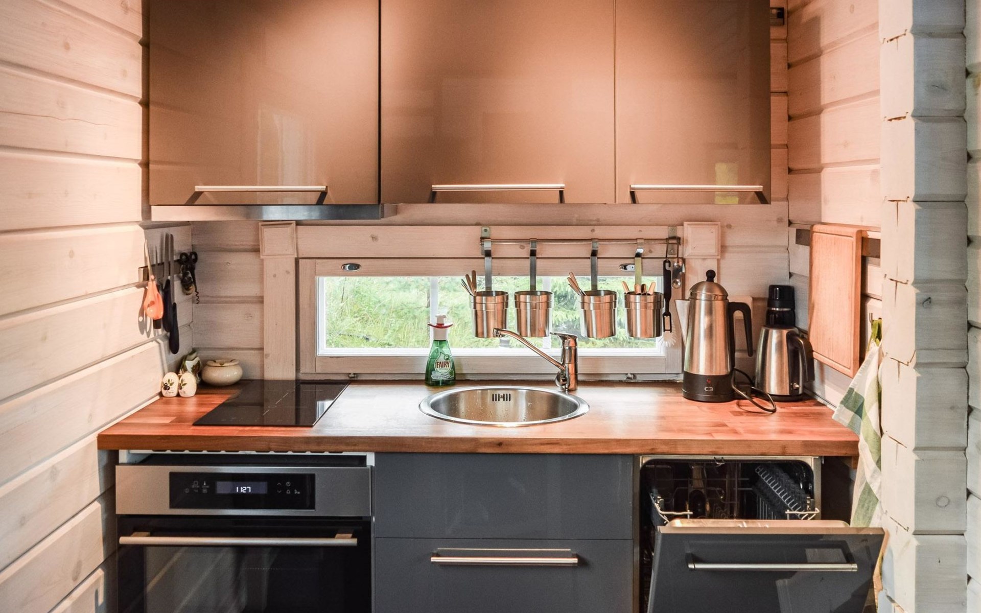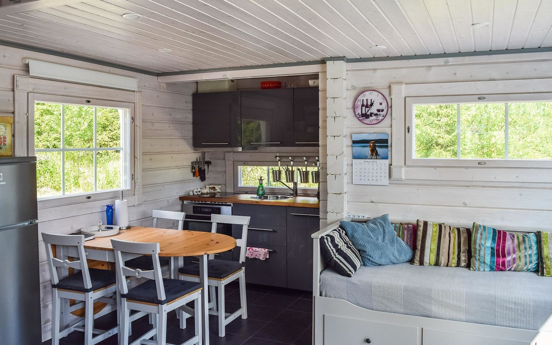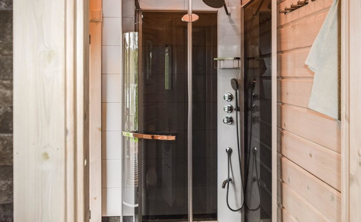 Log cottage 2016, kitchen-living room with sofa bed (160 x 200 cm wide), washroom with shower, sauna (wood stove), terraces on two levels 30 m².