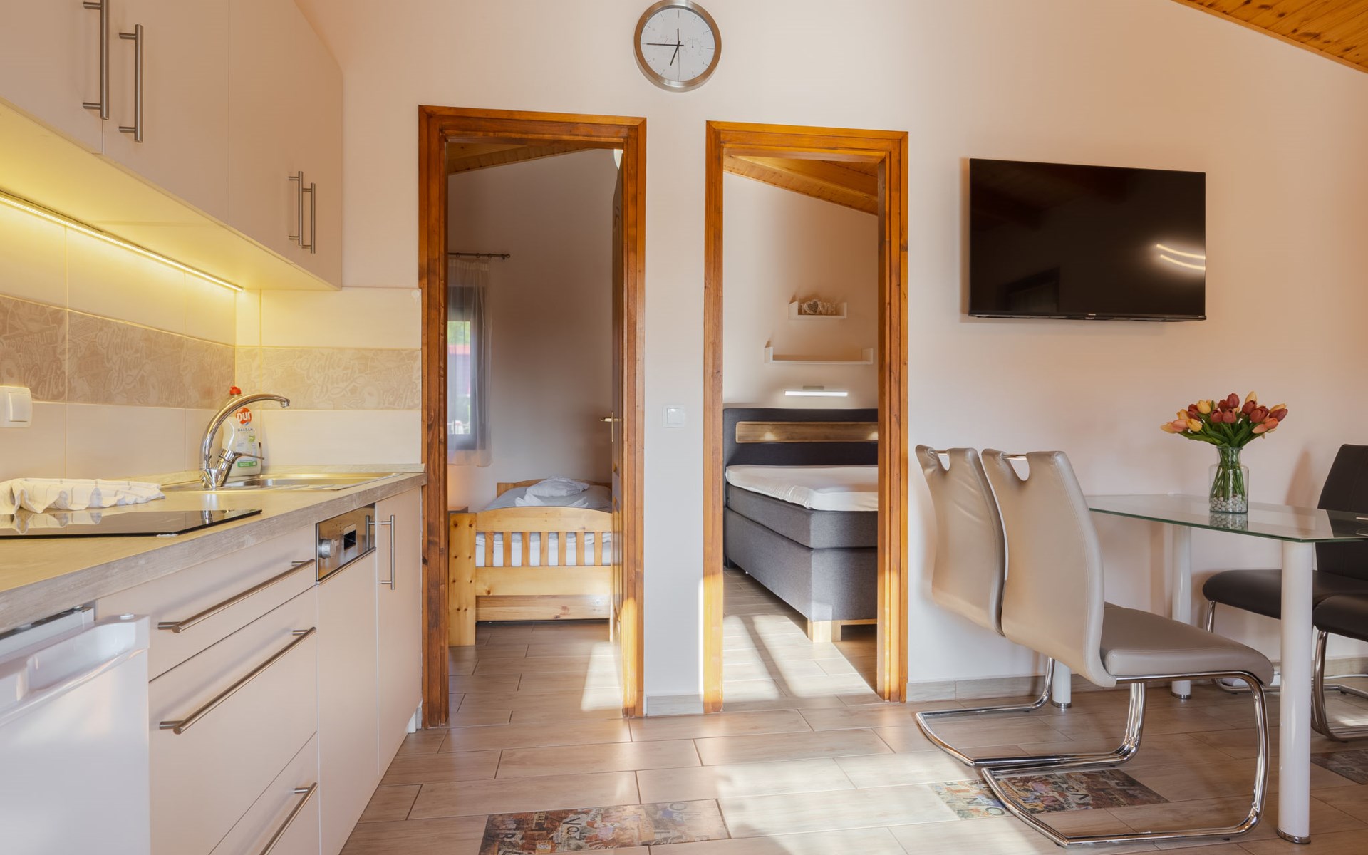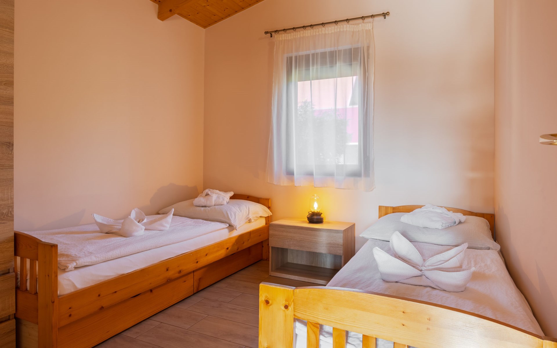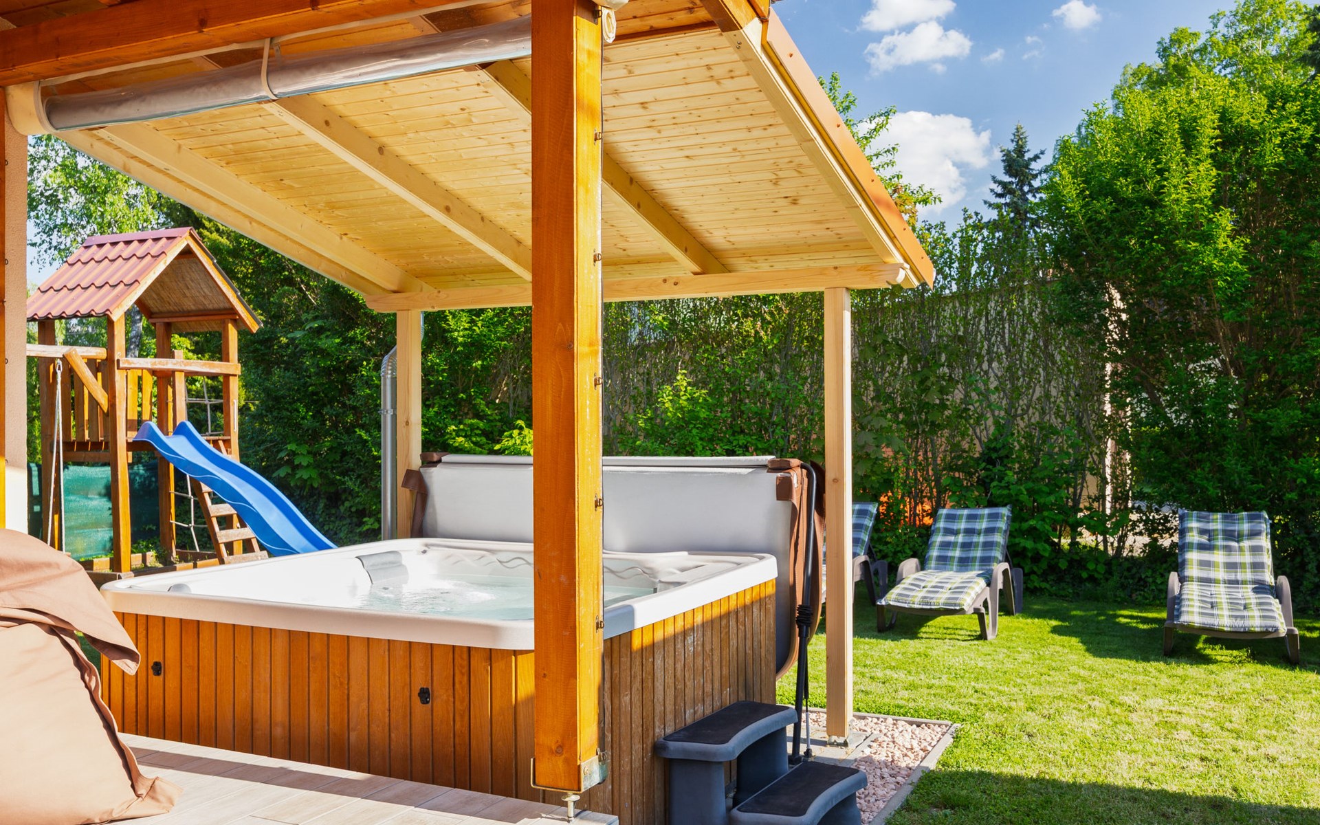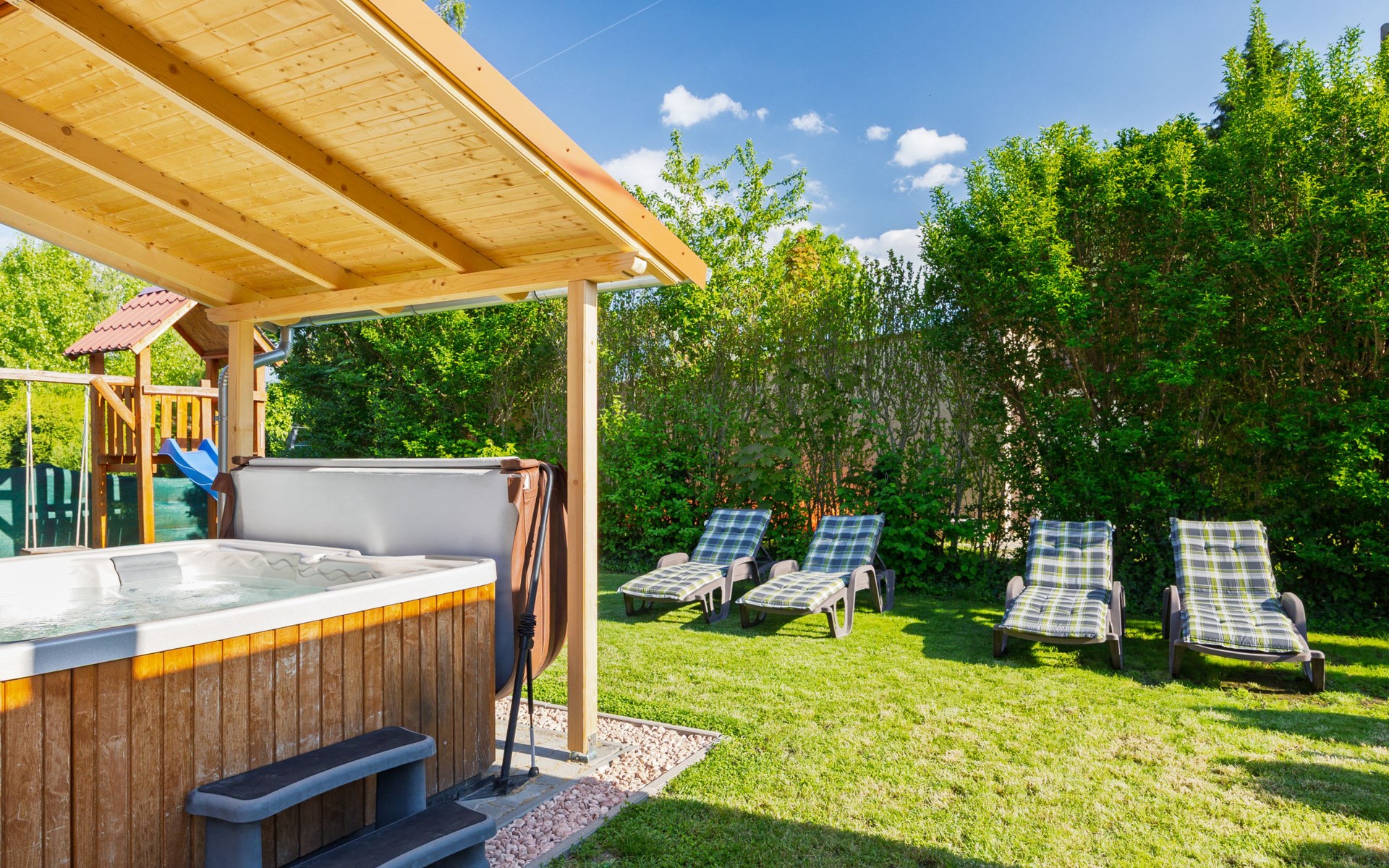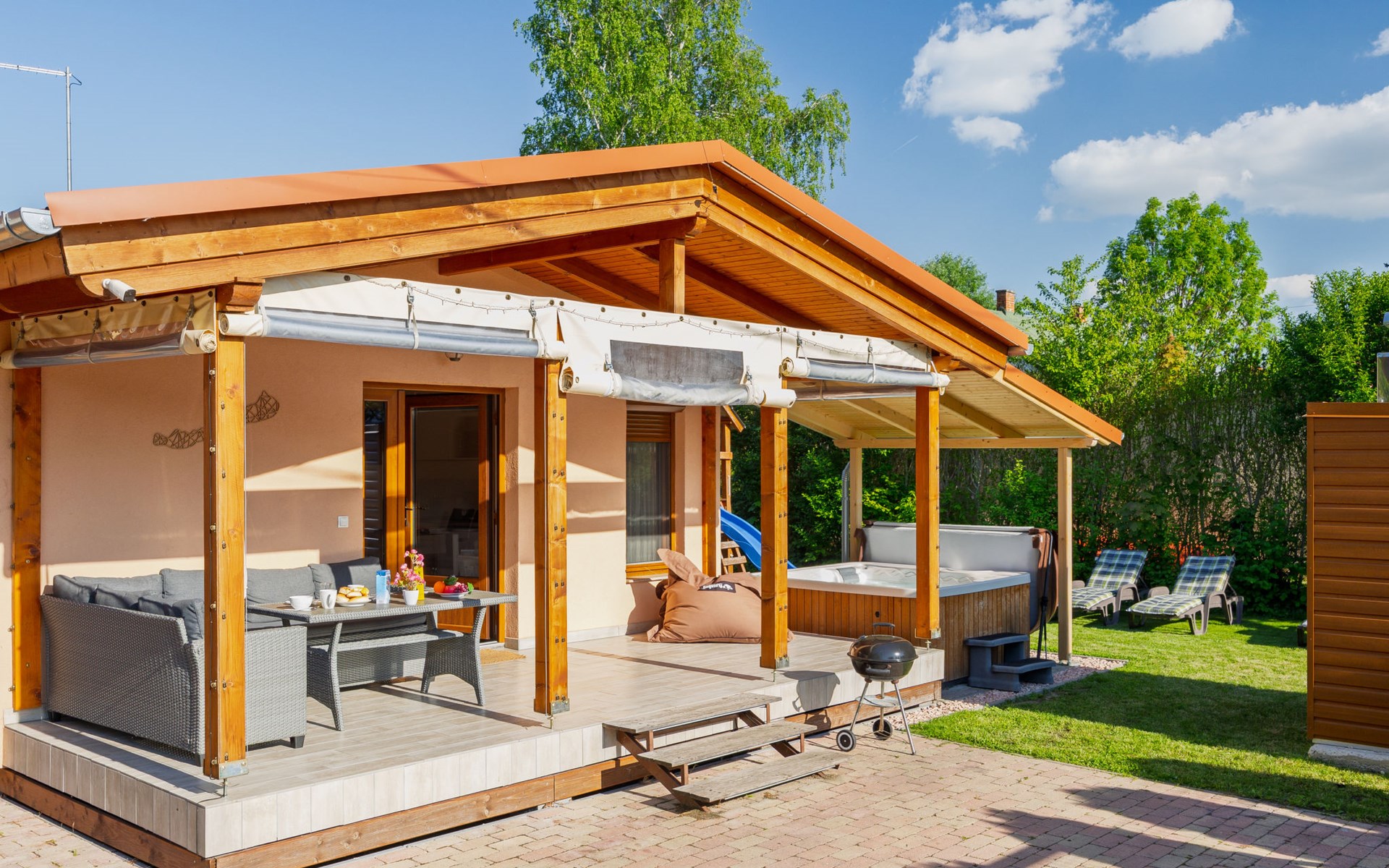 Balatonmáriafürdő 20 km van Balatonboglár: Klein, gezellig huis "Hullám". Rustige, zonnige ligging, 350 m van het meer, 700 m van het strand, op het zuidwesten. Voor alleengebruik: terrein (omheind), ligweide. Hot tub, kinderspeelplaats (glijbaan, schommel). In het huis: Internet (WiFi), centrale verwarming, air-conditioning. Parkeerplaats (voor 2 auto's) op het terrein. Levensmiddelenwinkel 1.5 km, supermarkt 4 km, restaurant 550 m, fietsverhuur 4 km, treinstation 500 m, grasstrand 700 m, thermaalbad "Hévíz" 29 km. Tennis 4 km, fietspad 50 m, kinderspeelplaats 700 m. Attracties in de buurt: Balatonlelle Giant Wheel 28 km, Kis-Balaton Visitor Center 18 km, Kereki Dino Park 49 km, Festetics Castle 24 km, Kristinus Wine Estate 12 km, Bobo Fun Park 29 km. Spoorweg in de buurt 80 m van het huis.
