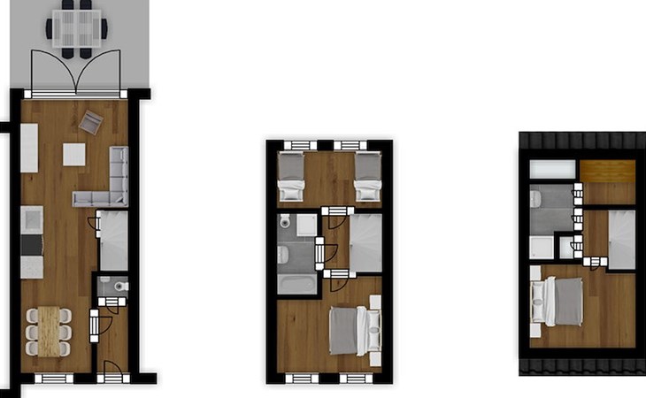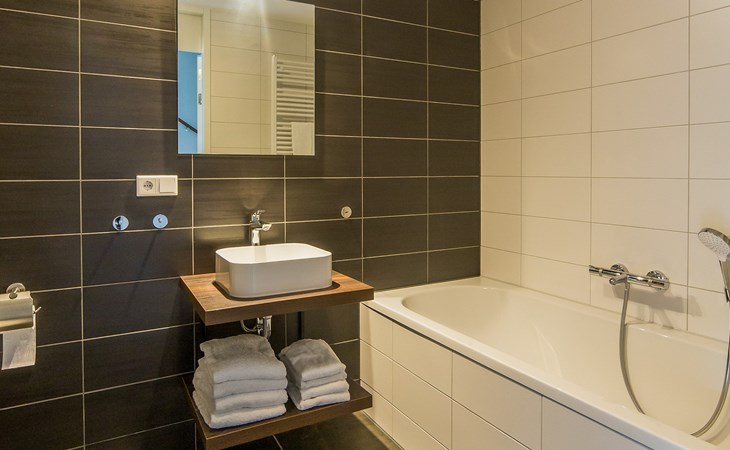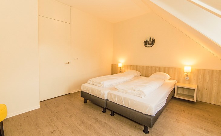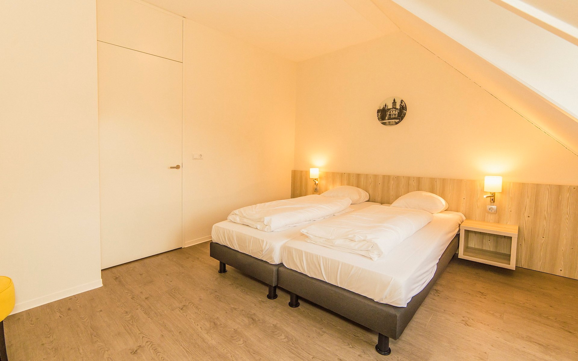 Op de eerste verdieping zijn er 2 slaapkamers met elk 2 éénpersoonsbedden en een badkamer met bad, douche, wastafel en toilet. Op de tweede verdieping heb je de beschikking over een slaapkamer met 2 éénpersoonsbedden en een tweede badkamer met douche, wastafel en een sauna waar je heerlijk kunt ontspannen.
