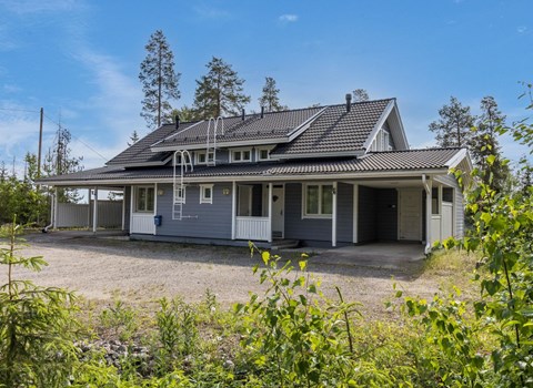 A semi-detached house built with love in 2002. Master bedroom with double bed downstairs. Bedrooms 2 and 3 upstairs. One bedroom has two beds and the other bedroom has a 120 cm wide bed. There is a bed in the upstairs hall and and sofabed/mattress. The room height upstairs is partly lower than normal. Open kitchen, living room, pantry, washroom, two toilets, electric sauna. Note: the refrigerator includes a freezer compartment.
