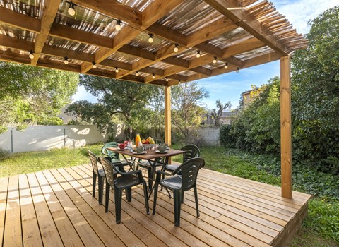 Huis op het wijngoed "Pontac-Gadet", omgeven door wijngaarden. 2 huizen in de woning. 800 m van het centrum van Jau-Dignac-Loirac, 6 km van het centrum van Saint-Vivien-de-Médoc, 15 km van het centrum van Lesparre-Médoc, 20 km van zee. Voor medegebruik: wild terrein 22 ha, tuin 5.000 m2 (omheind) met bomen. Voor alleengebruik: terrein 300 m2, parkeerplaats bij het huis op het terrein. Winkel 800 m, supermarkt 6 km, bushalte "Centre Jau Dignac et Loirac" 800 m, zandstrand "Soulac-sur-Mer, Montalivet" 20 km. Lokale verkoop van streekproducten. De eigenaar woont op hetzelfde terrein.
