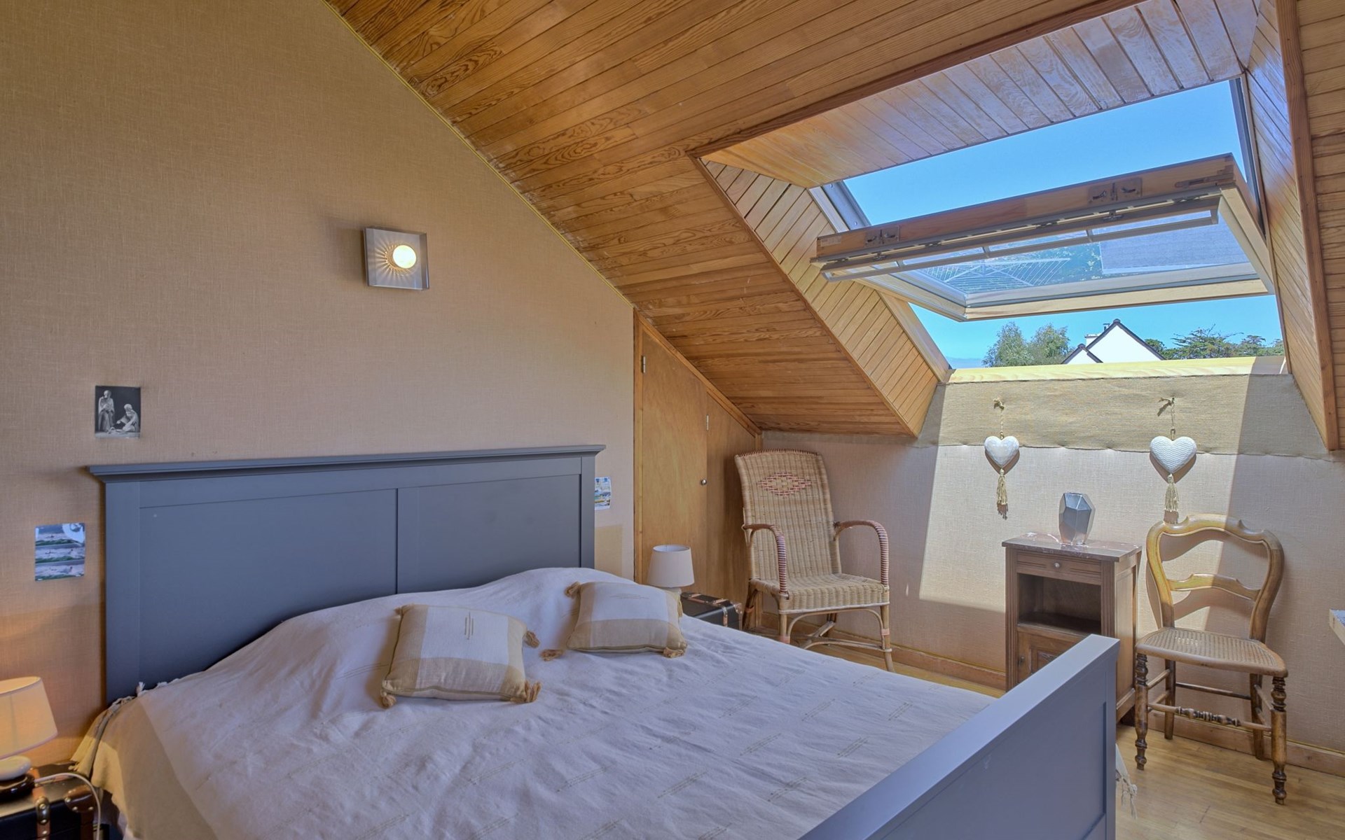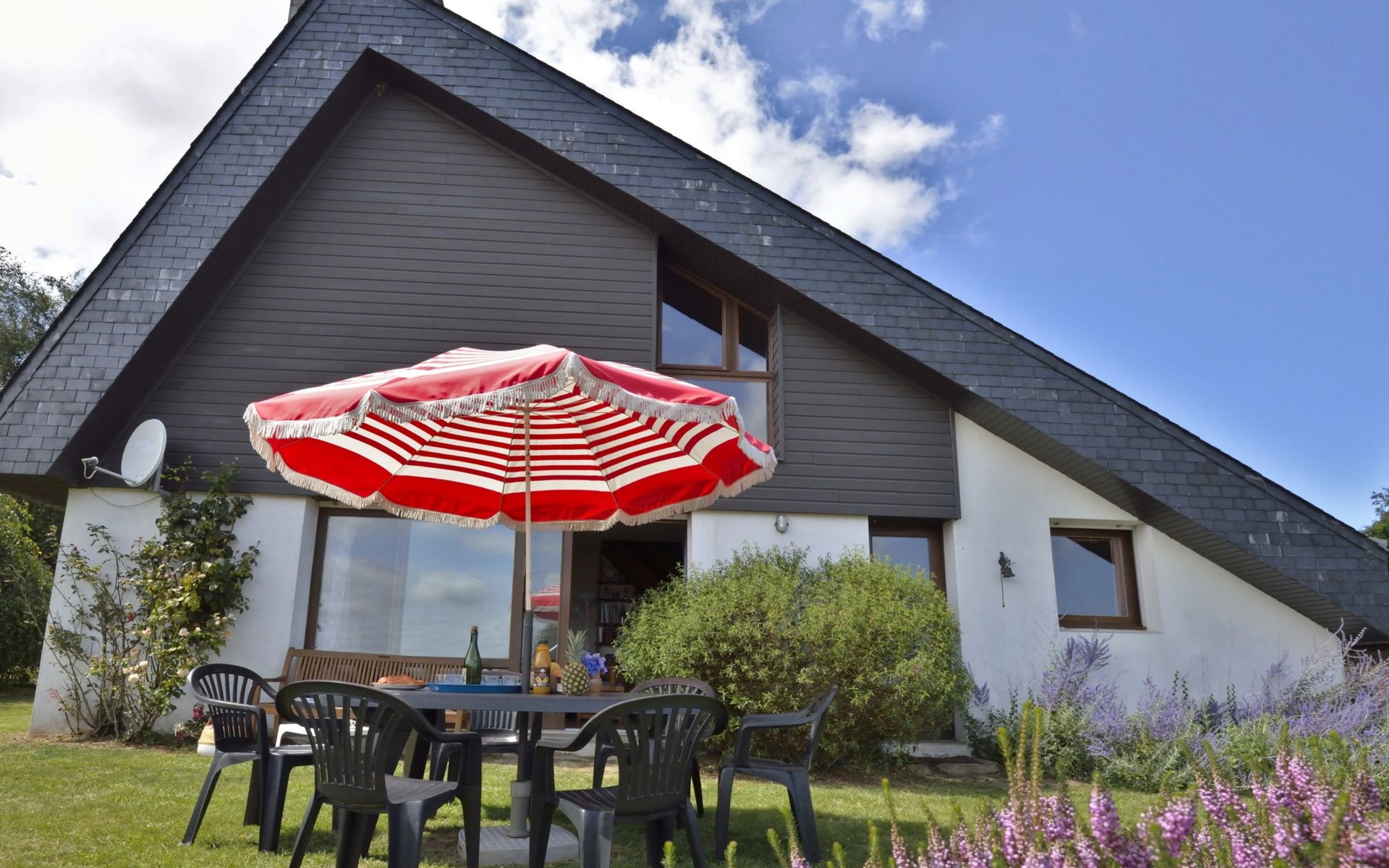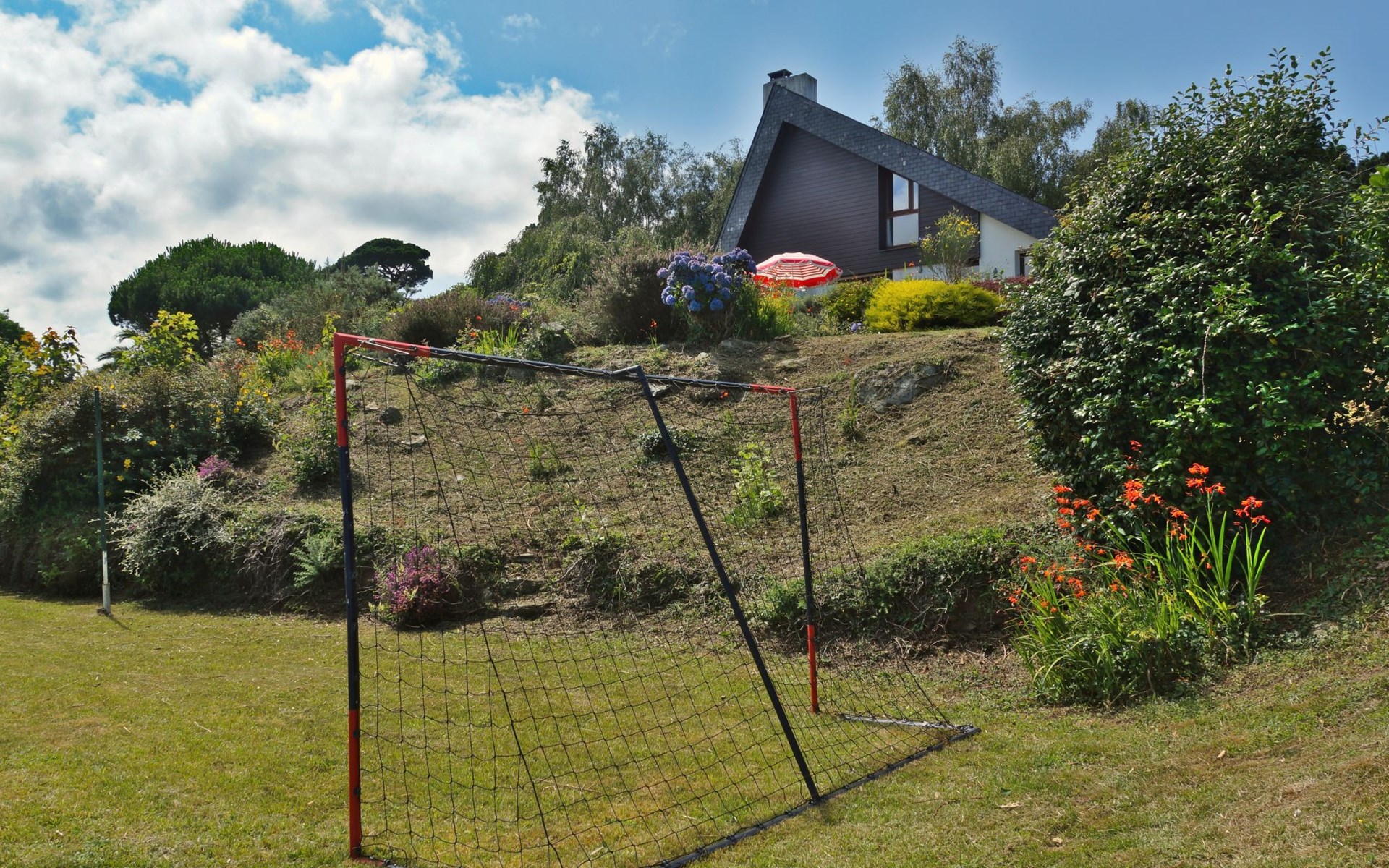 Eengezinswoning "Ker Norge", omgeven door bomen en weiden. 3 km van het centrum van Plestin-les-Grèves, 6 km van het centrum van Locquirec, 20 km van het centrum van Lannion, tegen een helling, in een woonwijk, 500 m van zee. Voor alleengebruik: tuin 3.400 m2 (niet omheind) met gazon en bomen, boomgaard. Basketbal, jeu de boules, volleybal, badminton, parkeerplaats (voor 4 auto's) op het terrein. Levensmiddelenwinkel 3 km, supermarkt 3.3 km, restaurant 3 km, bushalte 3 km, zandstrand "Plage de Beg Douar" 500 m. Golfterrein (18 holes) 37 km. Attracties in de buurt: Plage de Pors Mellec 750 m, Plage St. Efflam 1.5 km, Locquémeau 13 km, Trébeurden 25 km, Perros-Guirec 26 km. De eigenaar accepteert geen groepen.