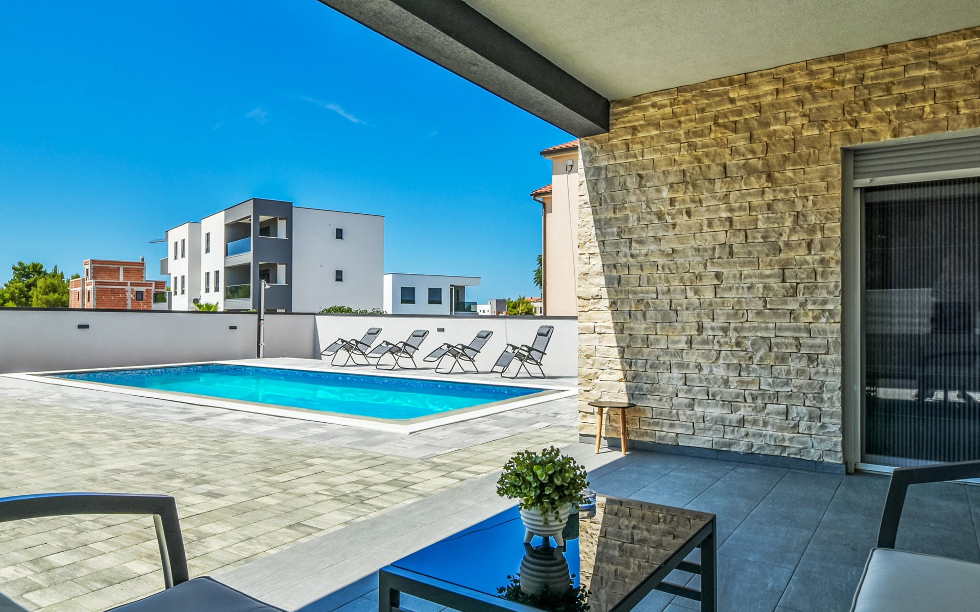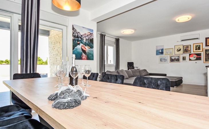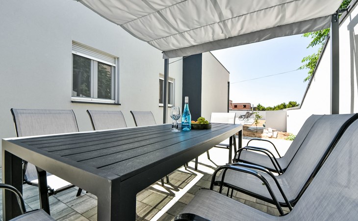Eengezinswoning "Jurica". 1.5 km van het centrum van Vrsi, rustige, zonnige ligging, 650 m van zee, 650 m van het strand. Voor alleengebruik: terrein 750 m2, tuin met gazon en planten, openluchtzwembad (8 x 4 m, 140 cm diepte, seizoensgebonden beschikbaarheid: 23.Mei. - 03.Okt.). Tafeltennis, tuinmeubelen, grill. In het huis: internetaansluiting, wasmachine. Parkeerplaats (voor 2 auto's) bij het huis op het terrein. Winkel, restaurant 450 m, bushalte 5.6 km, kiezelstrand, betonnen strand 650 m. Tennis 4.5 km.