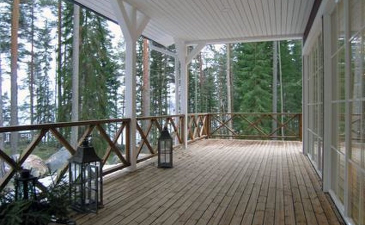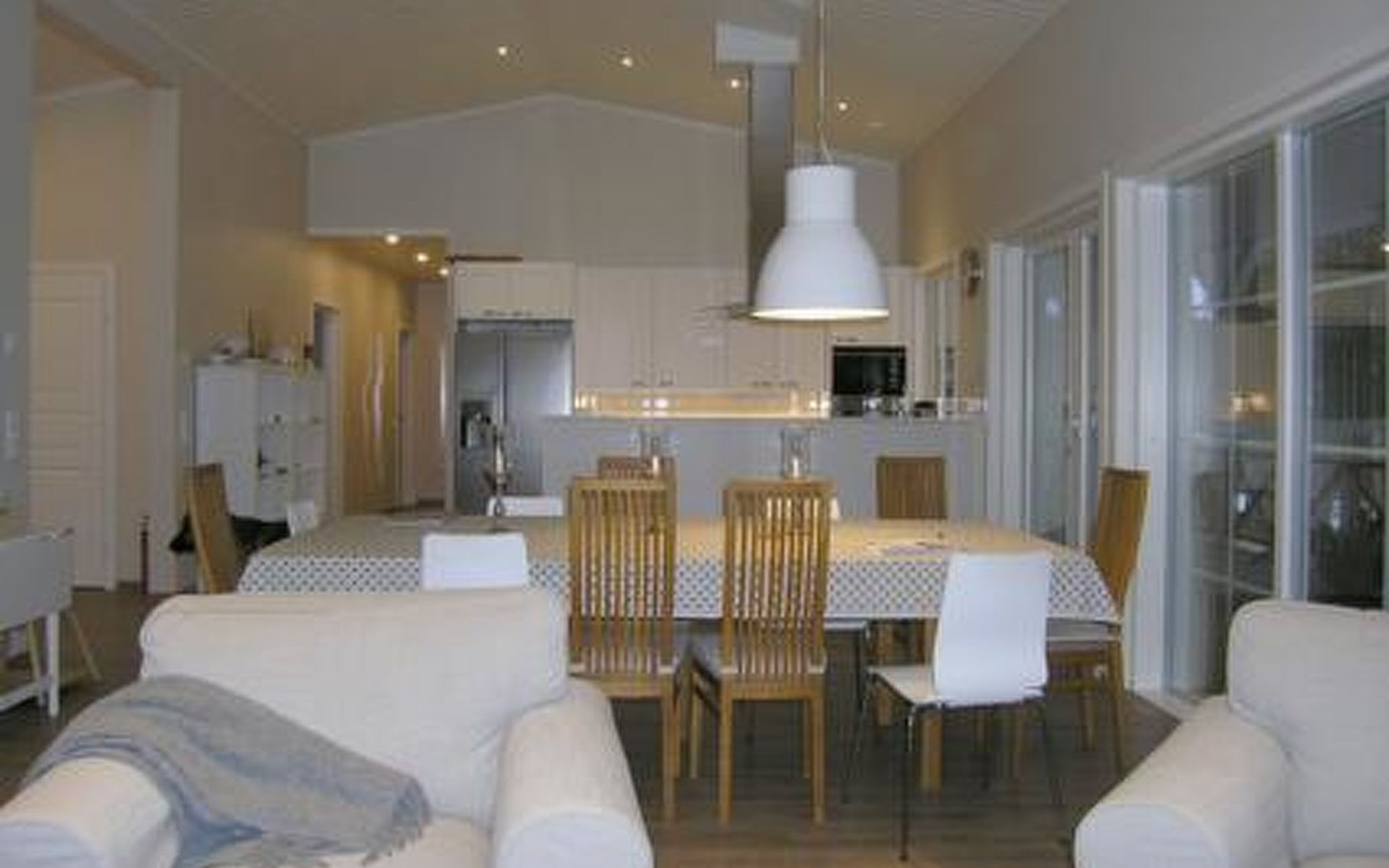 Wooden villa 2016, living room (60 m²), kitchen section, hall, 4 bedrooms 2 beds in each, toilet (suitable for disabled), utility room, dressing room, toilet, shower room with 2 showers, sauna (electric stove), covered terraces of 100 m².