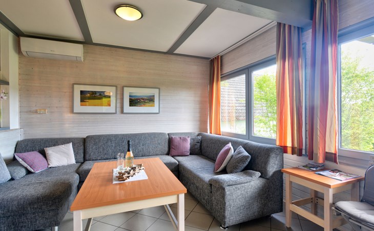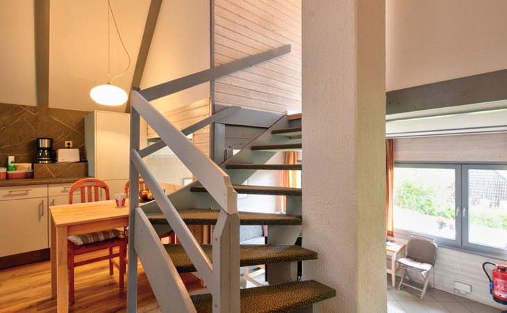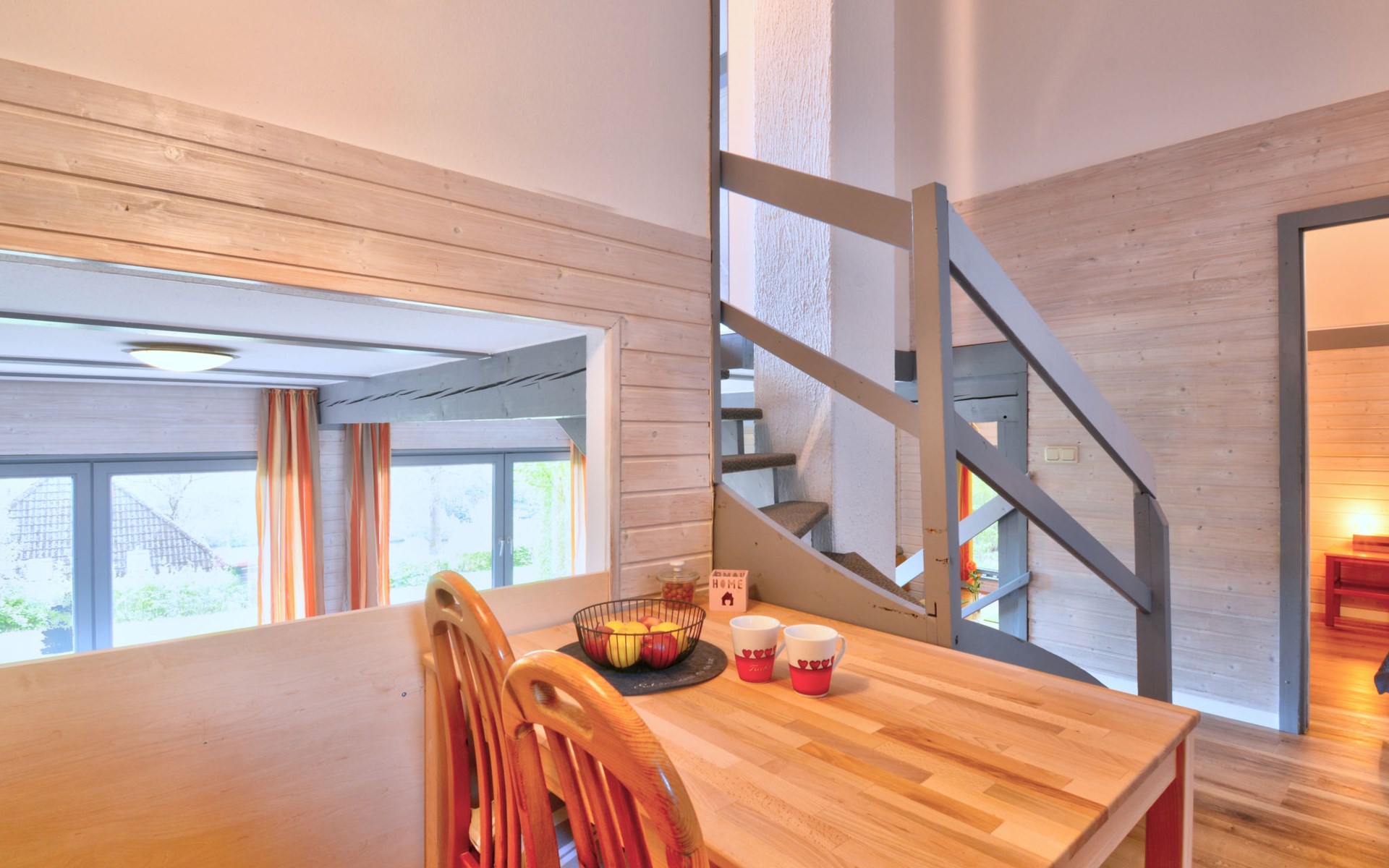 Vakantiedorp "Seepark Kirchheim". Buiten de plaats, 4 km van het centrum van Kirchheim, rustige, zonnige ligging tegen een helling, direct aan het meer, te midden van groen. Openbare parkeerplaatsen in de straat. Winkel 4 km, supermarkt 4 km, winkelcentrum 4 km, bakkerij 4 km, café 400 m, bushalte 400 m, treinstation "Bad Hersfeld" 15 km, openluchtzwembad 4 km, thermaalbad 15 km. Golfterrein (18 holes) 4 km, tennis 10 km, midgetgolf 15 km, wandelroutes 300 m vanaf het huis. Bekende meren kunnen gemakkelijk worden bereikt: Stausee 500 m. Auto noodzakelijk. De eigenaar accepteert geen jeugdgroepen. Het Seepark is opgedeeld in vier "dorpen" met in totaal 139 vakantiewoningen, die rond het meer zijn gegroepeerd (10 hectare water, zwemmen, waterskiën, zonneweide). De route rond het meer is ideaal om te wandelen en te joggen.