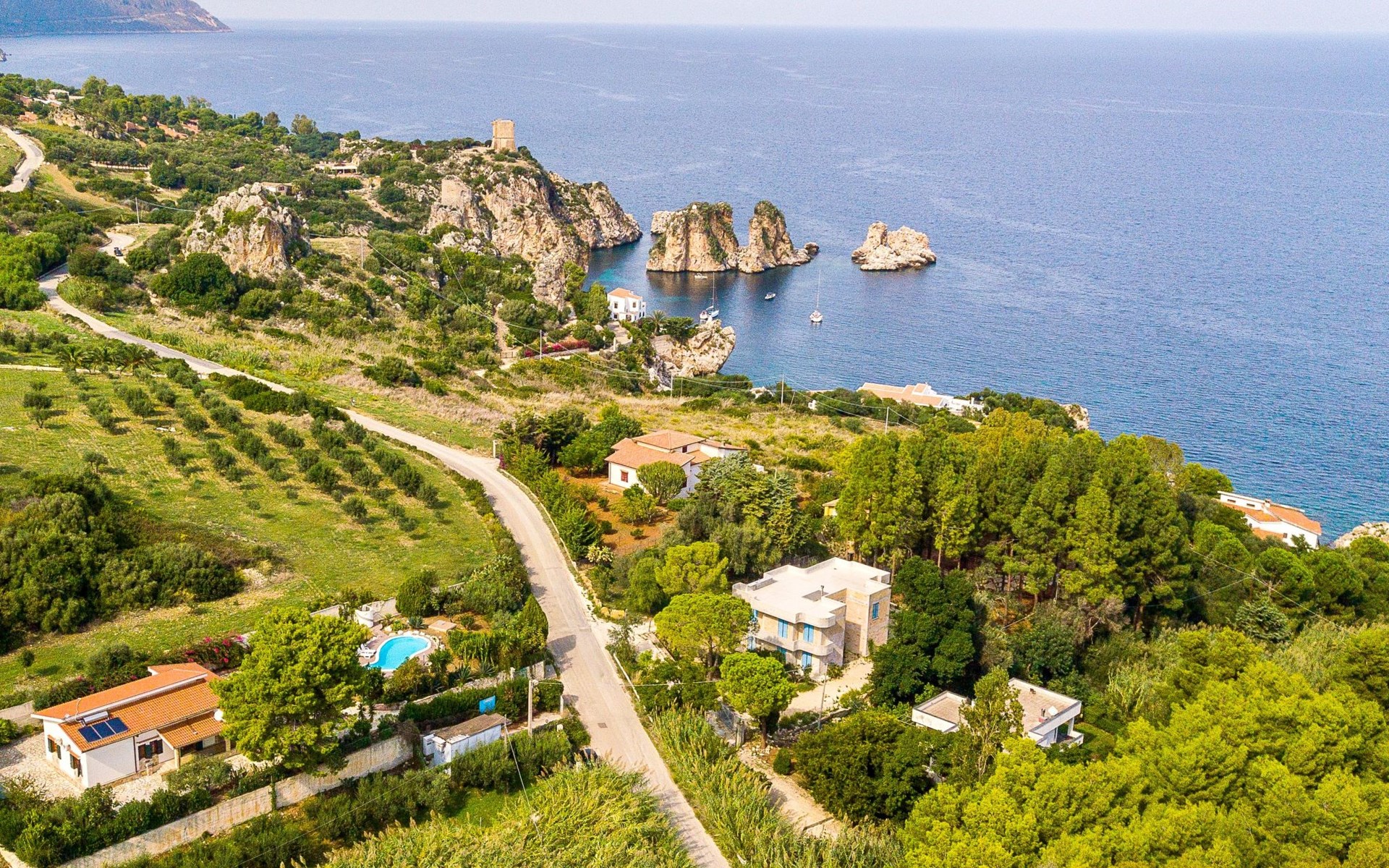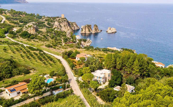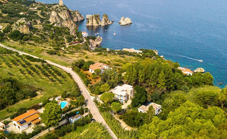 Villa "La Vela". Huurobject bestaande uit hoofd-/ bijgebouw, in het gehucht Scopello, 10 km van het centrum van Castellammare del Golfo, rustige, zonnige ligging villa wijk, 150 m van zee, 700 m van het strand. Voor alleengebruik: terrein 1.000 m2 (omheind), openluchtzwembad (8 x 4 m, 150 cm diepte, seizoensgebonden beschikbaarheid: 01.Apr. - 31.Okt.). Onregelmatig zwembad. Terras, tuinmeubelen, barbecue, onderhoud zwembad door de eigenaar/tuinman. Parkeerplaats op het terrein. Levensmiddelenwinkel 1 km, supermarkt 1 km, restaurant 1 km, bar 1 km, bushalte 10 km, zandstrand "Castellammare del Golfo", rotsstrand "Scopello" 700 m. Attracties in de buurt: Segesta Parco Archeologico 29 km, Trapani/Aliscafi per Isole Egadi 35 km, Erice 35 km, San Vito lo Capo 42 km, Marsala /Saline 58 km, Palermo 70 km. Auto noodzakelijk.