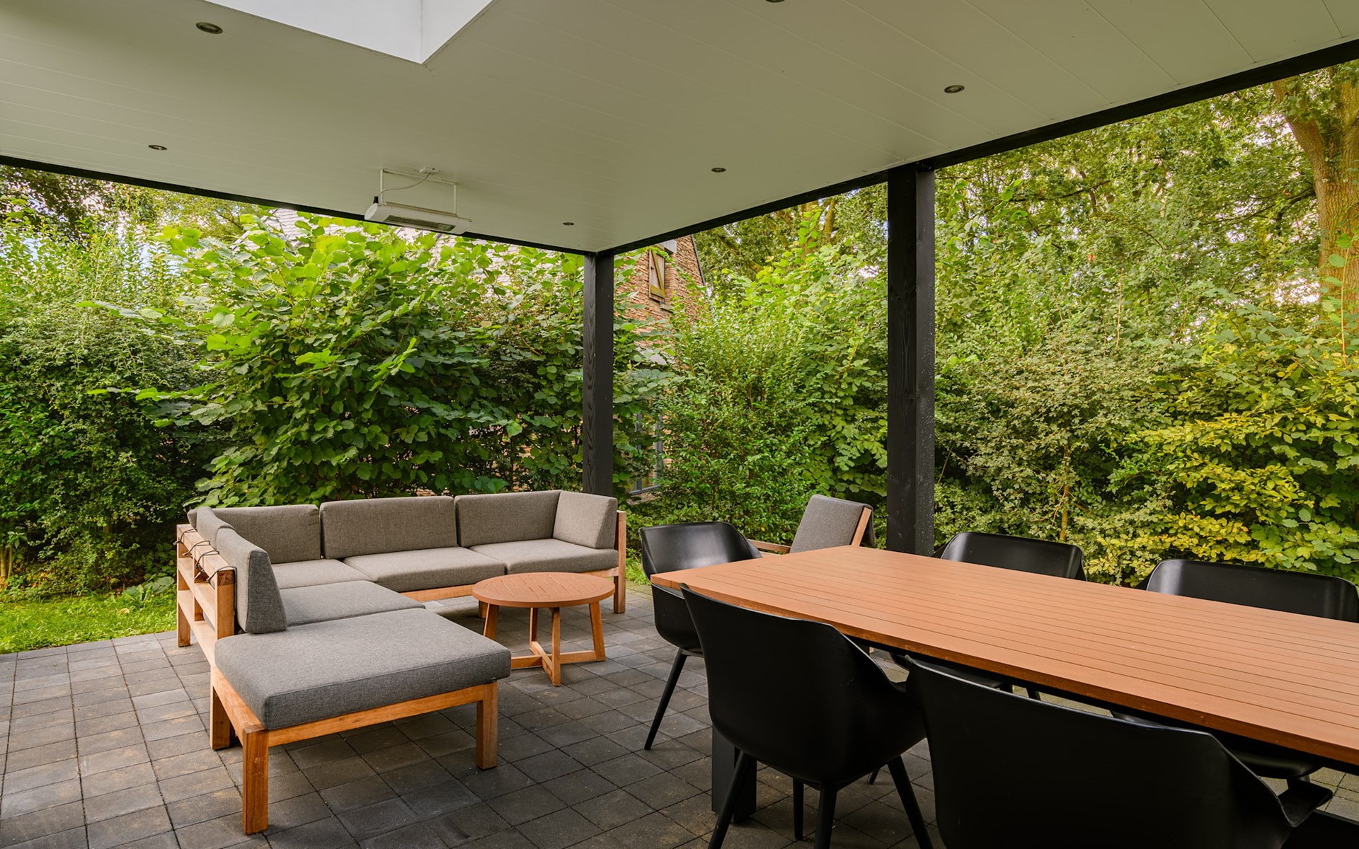 Vanuit de woonkamer hebben jullie toegang tot de royale veranda waar je het hele jaar door heerlijk buiten kunt zitten. De veranda is uitgerust met een tuinset, comfortabele loungeset en een barbecue.