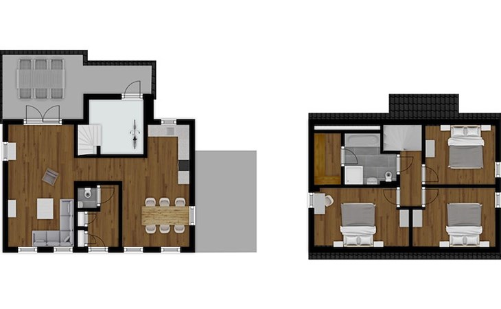 Er zijn 3 slaapkamers met 2 éénpersoonsbedden op de eerste verdieping. Ook is er een ruime badkamer aanwezig die voorzien is van een bubbelbad, douche, dubbele wastafel en toilet. Bovendien vind je hier een privé sauna. Er is een separaat toilet aanwezig.