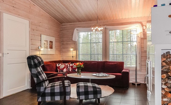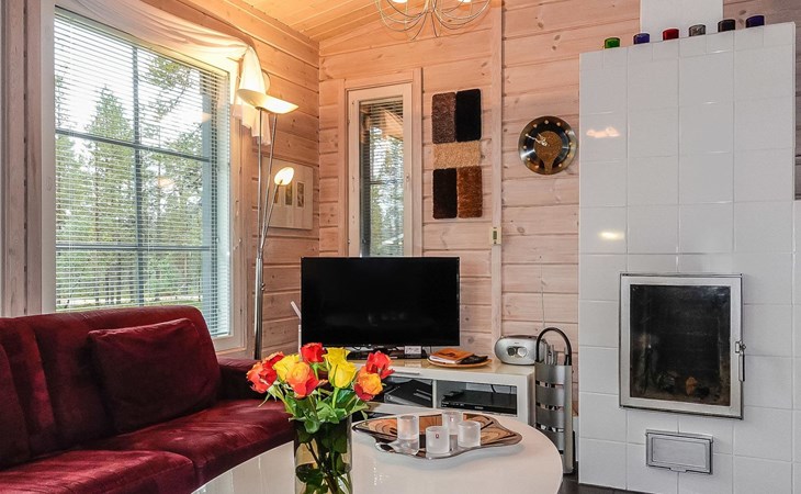 Log villa, built in 2009, living room-kitchen with sofa bed, 2 bedrooms, both with 2 beds, sauna, washroom, utility room, separate toilet and covered terrace. Garage. Internet (Wi-Fi, 4G). Aarrekammi is a tastefully furnished and elegantly furnished villa, dishes for 12 people, air source heat pump etc.