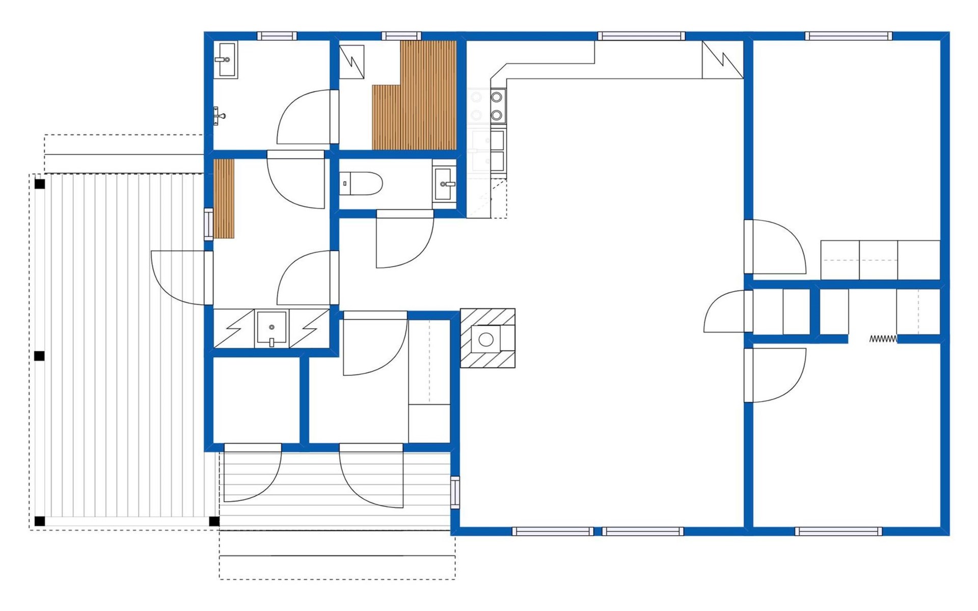 Good storage in bedrooms and modern sauna department. Terrace on the south side. The villa is also suitable for small events.