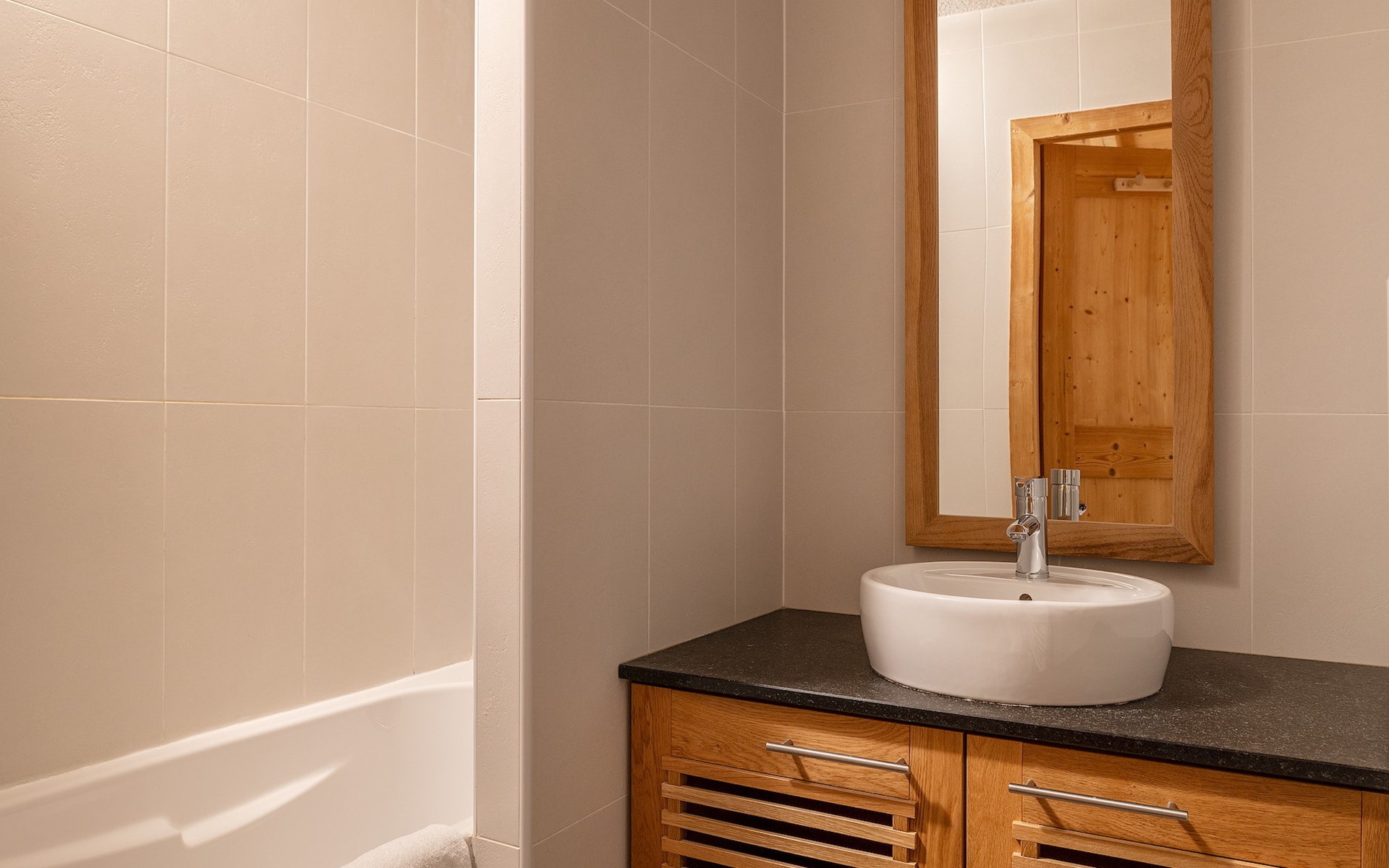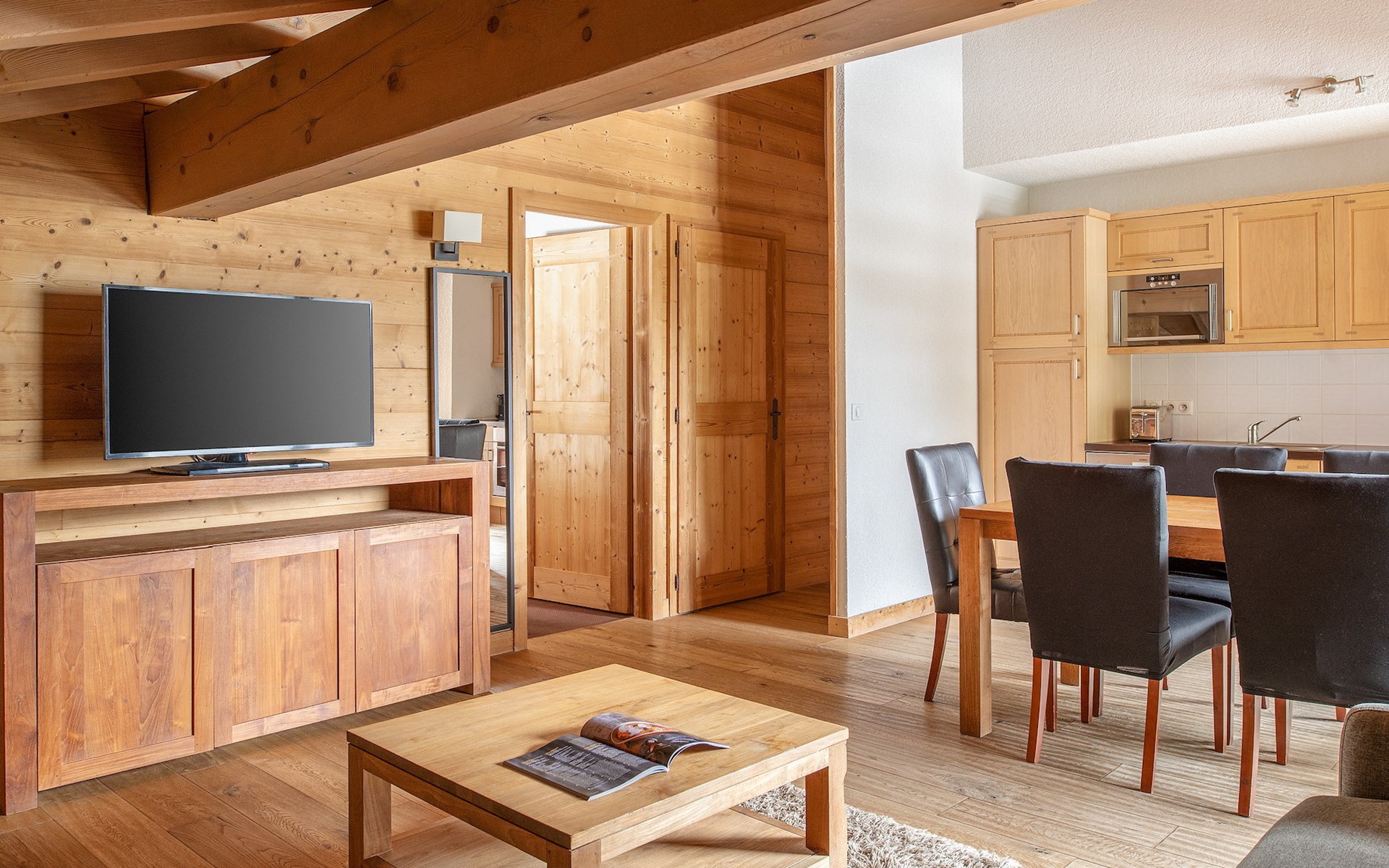 De sfeervolle woonkamer is voorzien van een zithoek met slaapbank voor 2 personen, televisie met streaming mogelijkheid en een eethoek. De keuken beschikt over een koelkast, keramische kookplaat, vaatwasser, oven, magnetron/grill, broodrooster, koffieapparaat en waterkoker.