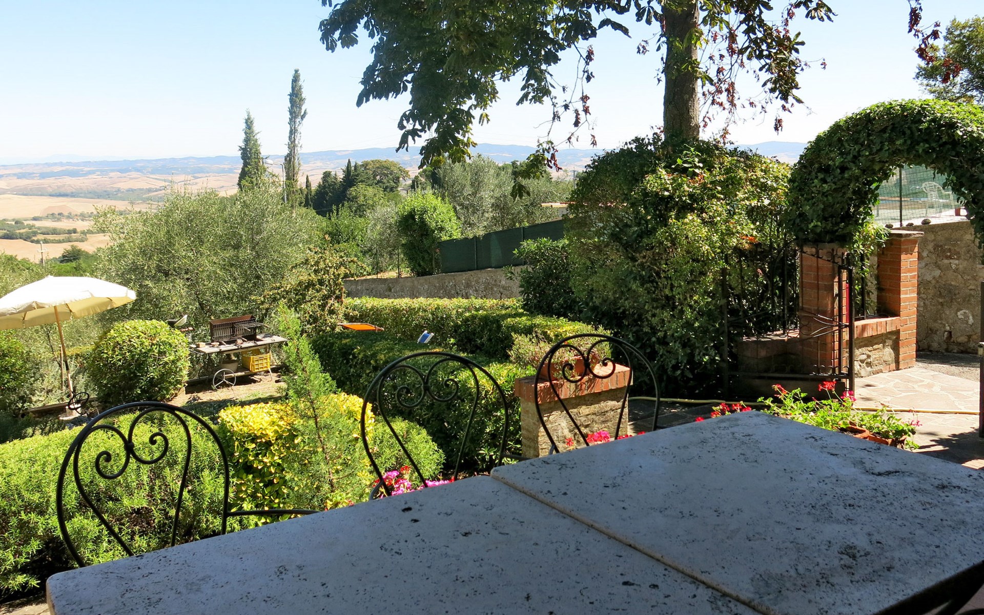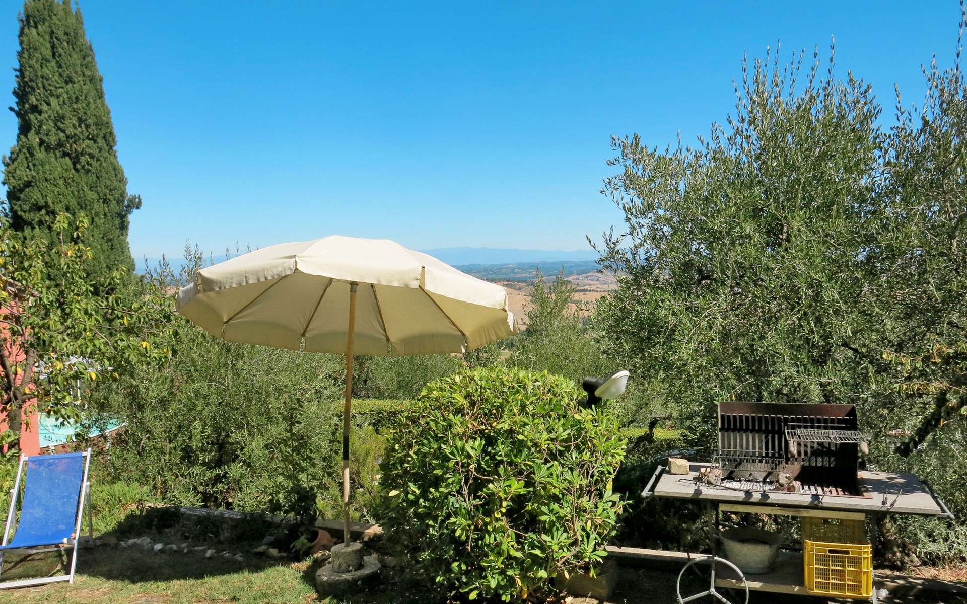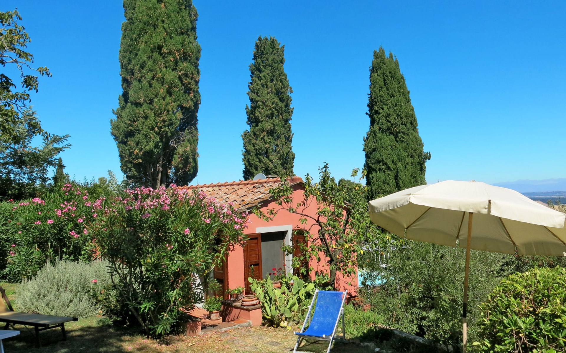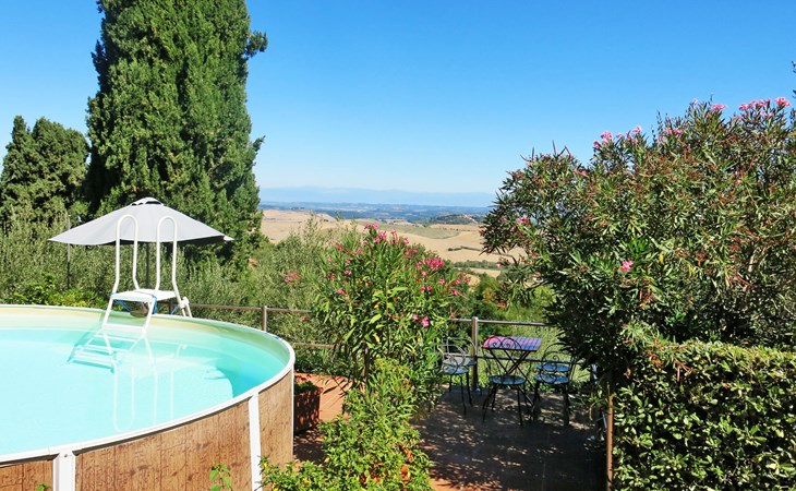 Landhuis "Castagni", 313 m boven zeeniveau, omgeven door bomen en velden. 2 huizen in de woning. 2 appartementen in de woning. Huurobject bestaande uit hoofd-/ bijgebouw, 20 m van het centrum van Orciatico, aan de rand van de plaats, 17 km van het centrum van Volterra, 60 km van het centrum van Pisa. Voor medegebruik: tuin op verschillende niveaus met bomen, wilde tuin, boomgaard, openluchtzwembad (verhoogd) (6 x 5 m, seizoensgebonden beschikbaarheid: 02.Mei. - 03.Okt.). Barbecue. In het huis: wasmachine (voor medegebruik). Levensmiddelenwinkel 20 m, supermarkt 15 km, restaurant 4.5 km, bushalte 50 m, zandstrand "Cecina Mare" 45 km.