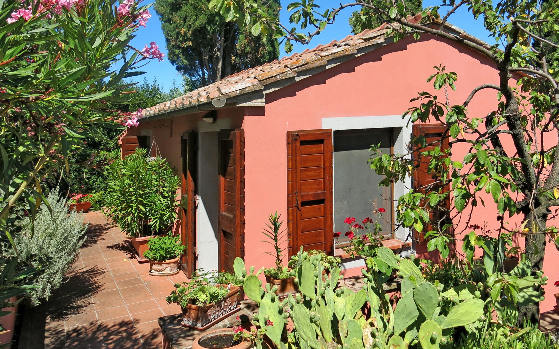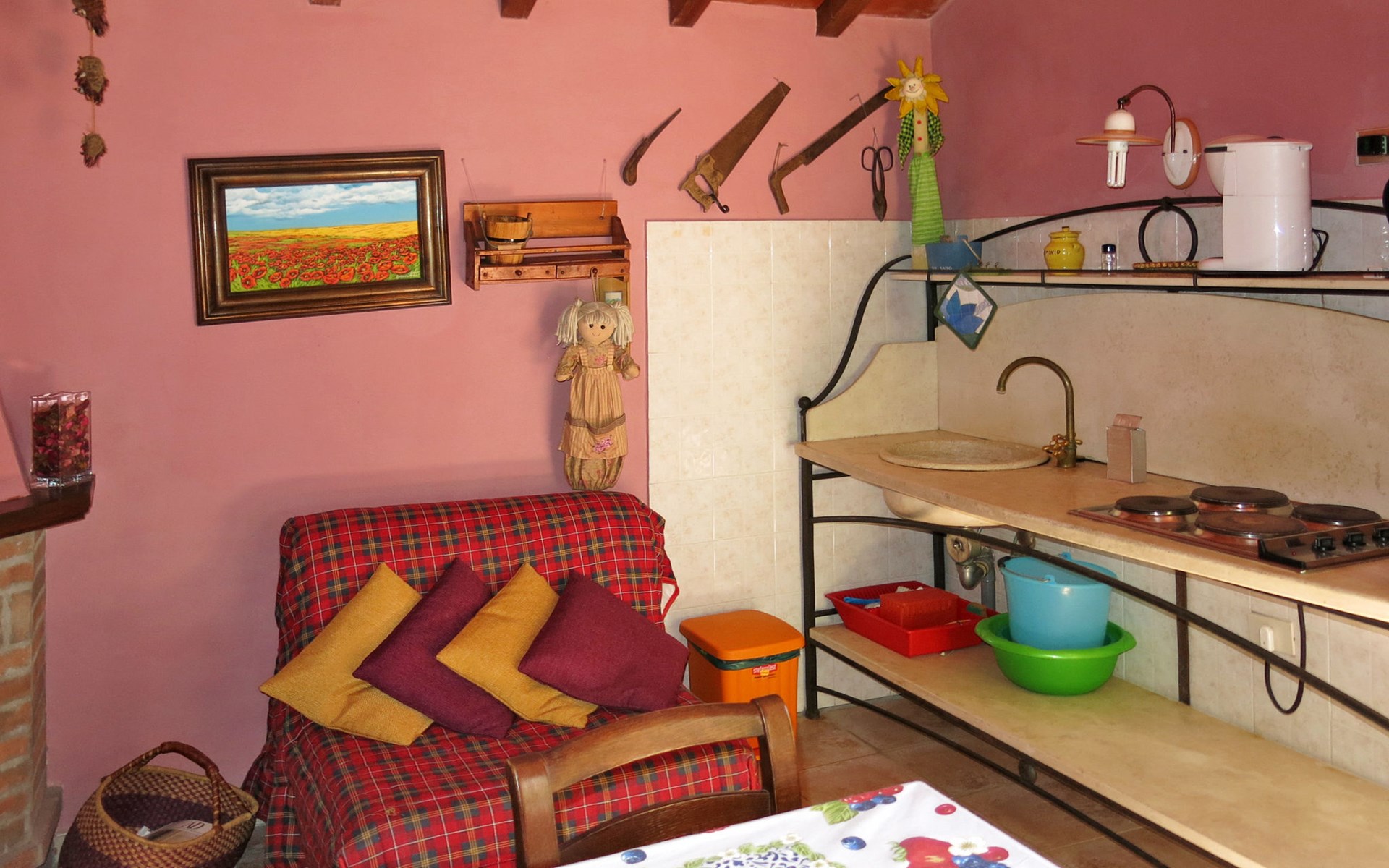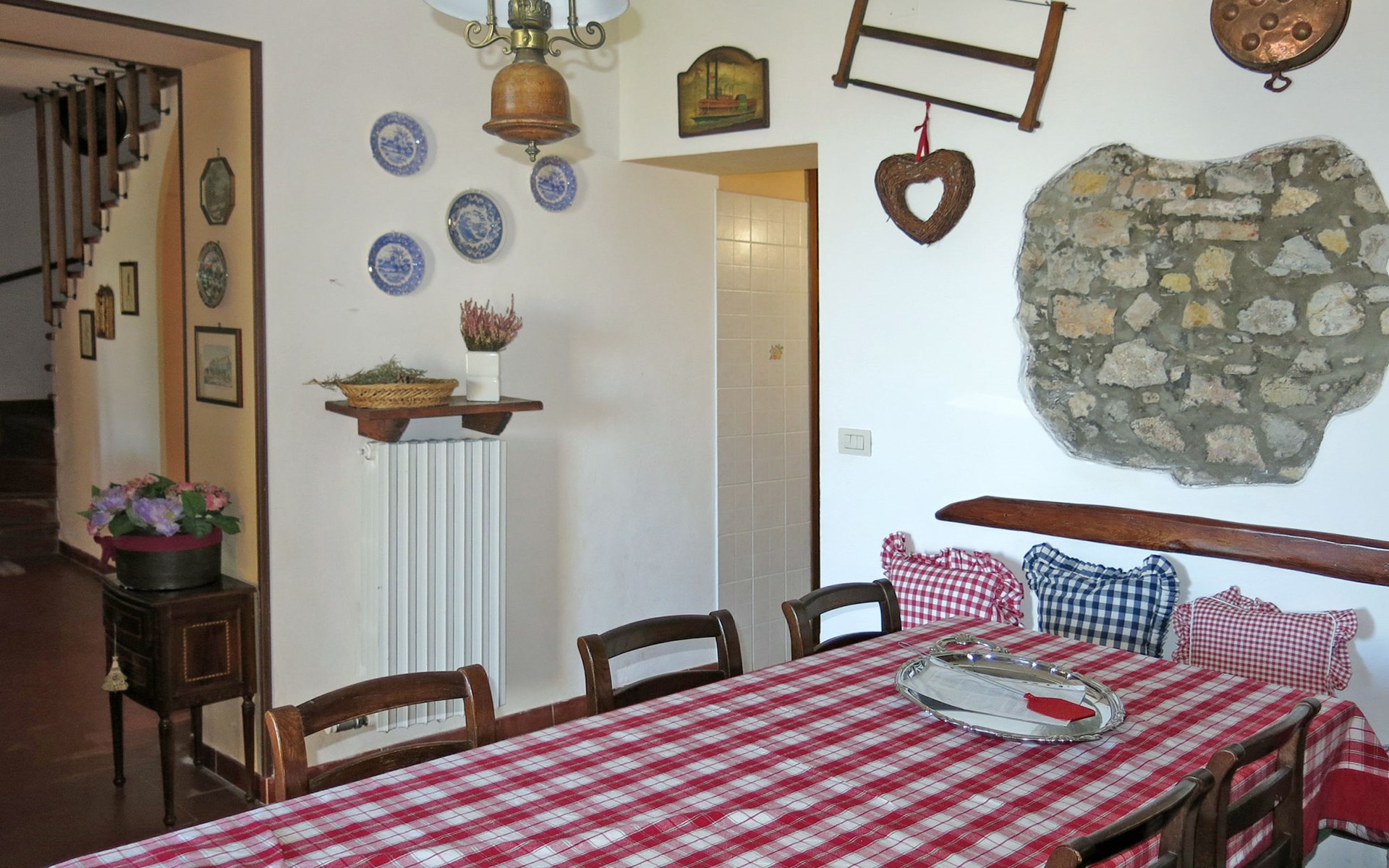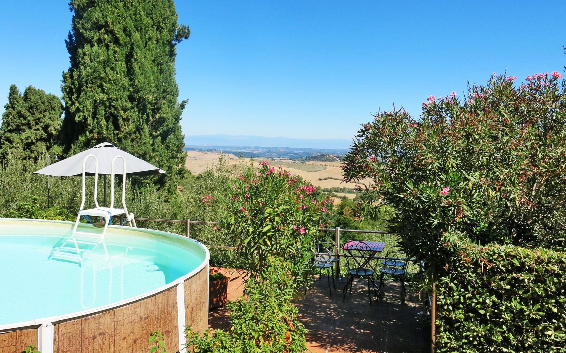 Landhuis "Castagni", 313 m boven zeeniveau, omgeven door bomen en velden. 2 huizen in de woning. 2 appartementen in de woning. Huurobject bestaande uit hoofd-/ bijgebouw, 20 m van het centrum van Orciatico, aan de rand van de plaats, 17 km van het centrum van Volterra, 60 km van het centrum van Pisa. Voor medegebruik: tuin op verschillende niveaus met bomen, wilde tuin, boomgaard, openluchtzwembad (verhoogd) (6 x 5 m, seizoensgebonden beschikbaarheid: 02.Mei. - 03.Okt.). Barbecue. In het huis: wasmachine (voor medegebruik). Levensmiddelenwinkel 20 m, supermarkt 15 km, restaurant 4.5 km, bushalte 50 m, zandstrand "Cecina Mare" 45 km.