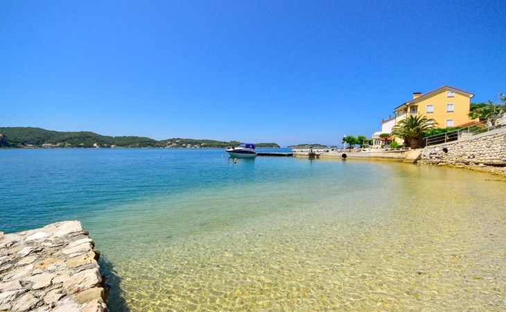 Supetarska Draga 7 km van Rab: Appartementencomplex "Čipčić". Zonnige, verhoogde ligging, 100 m van zee, 100 m van het strand. In het huis: internetaansluiting. Parkeerplaats bij het huis op het terrein. Winkel 700 m, restaurant 400 m, bushalte 4.5 km, zandstrand 5 km kiezelstrand 100 m (klein). Jachthaven 700 m. Privé aanlegsteiger voor een boot (extra) op aanvraag.