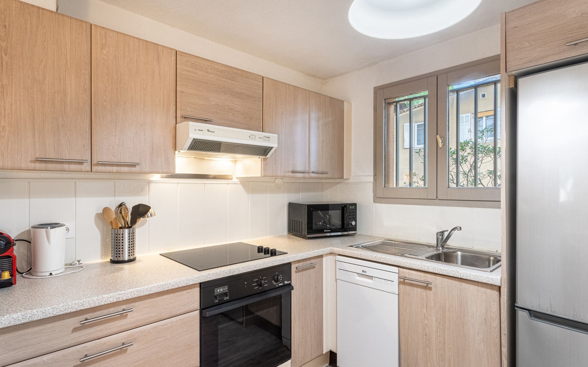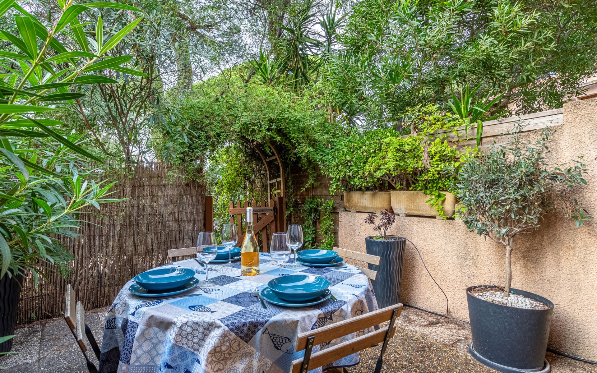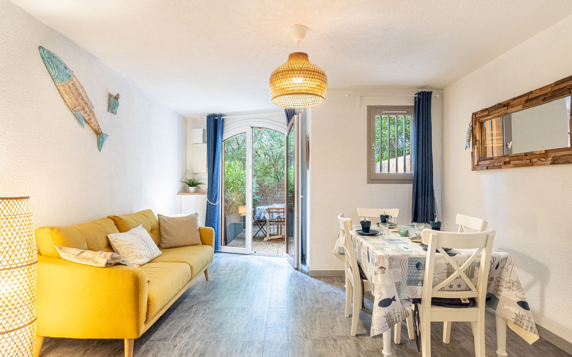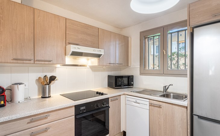 Flatgebouw "Jean d'Agreve", omgeven door bomen. In de wijk Port de Hyères, villa wijk, 650 m van zee, 800 m van het strand. Voor medegebruik: terrein (omheind), openbare parkeerplaatsen 59 m. Winkel 550 m, levensmiddelenwinkel 500 m, winkelcentrum 5.3 km, restaurant 500 m, bakkerij 550 m, café 500 m, fietsverhuur 260 m, bushalte "Hyères Centre" 20 m, zandstrand "Bona" 800 m. Jachthaven 750 m, jachthaven 650 m, golfterrein (18 holes) 21 km, surfschool 2.6 km, zeilschool 550 m, midgetgolf 1.2 km. Attracties in de buurt: Magic world 1.4 km, speedkart 1.1 km, Jardin Olbius Riquier 3.9 km, Chateau de Hyères 7 km. Bekende meren kunnen gemakkelijk worden bereikt: Etang des Pesquiers 6.3 km. Wandelgebied Reserve Les Salins -d'Hyeres 6 km. De sleuteloverdracht vindt plaats bij het agentschap Interhome in Hyères le Port. Hoofdstraat in de buurt. Vliegveld 1.6 km van het huis.