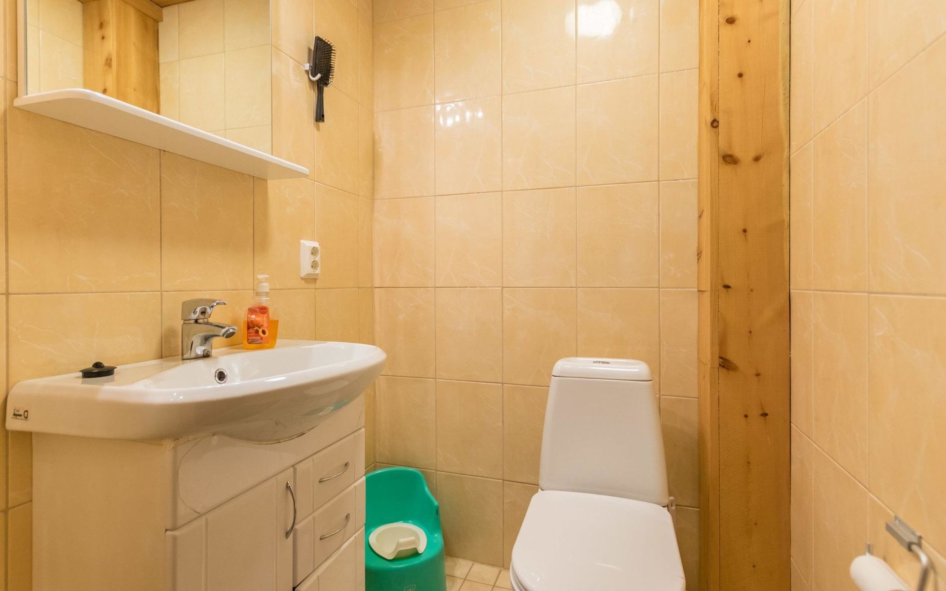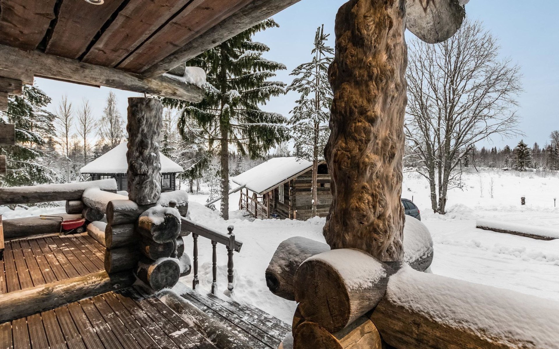 Yard sauna (wood-burning sauna stove) for year-round use; dressing room and terrace. The yard sauna has electricity, the water comes through a hose.