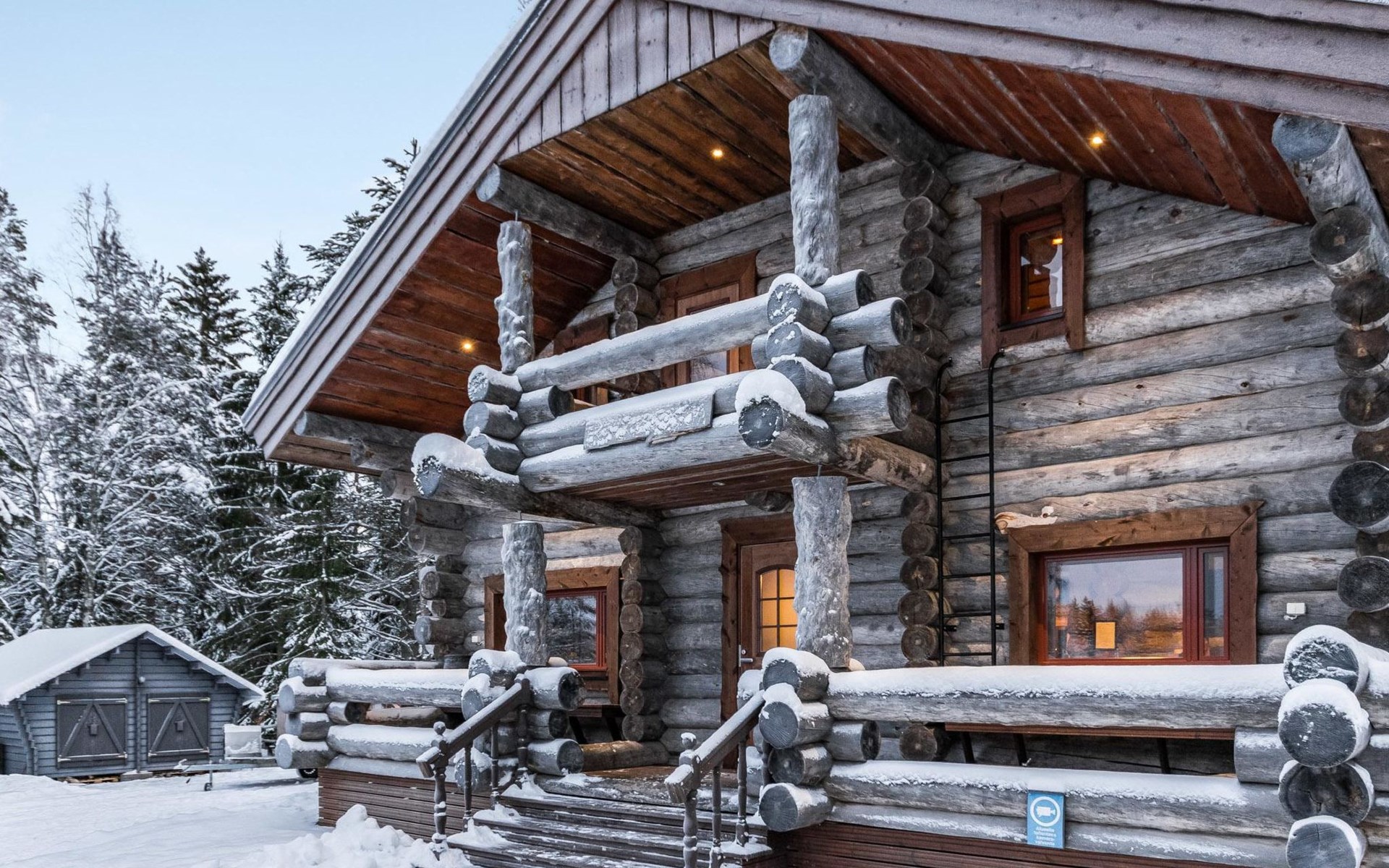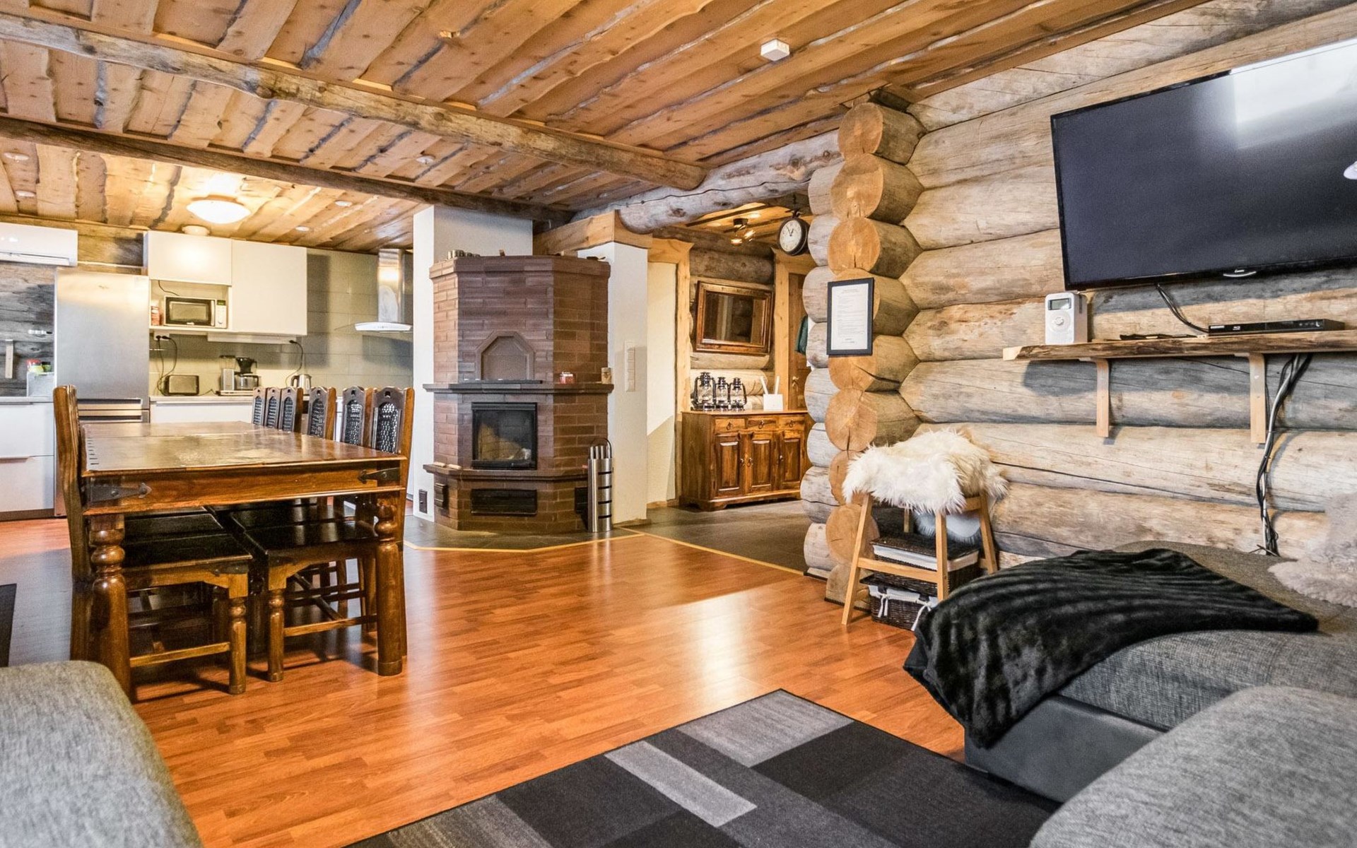 Spacious 2-story log house built in 2016, on the ground floor kitchen-living room (40 m²), hall, vestibule, washroom, sauna (electric), separate toilet, bedroom with double bed, bedroom with 2 beds, 3 terraces.