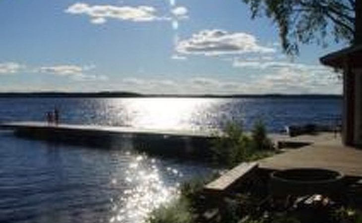 Additionally, there are two storage sheds in the yard, one of which contains firewood for the fireplaces and the lakeside sauna.