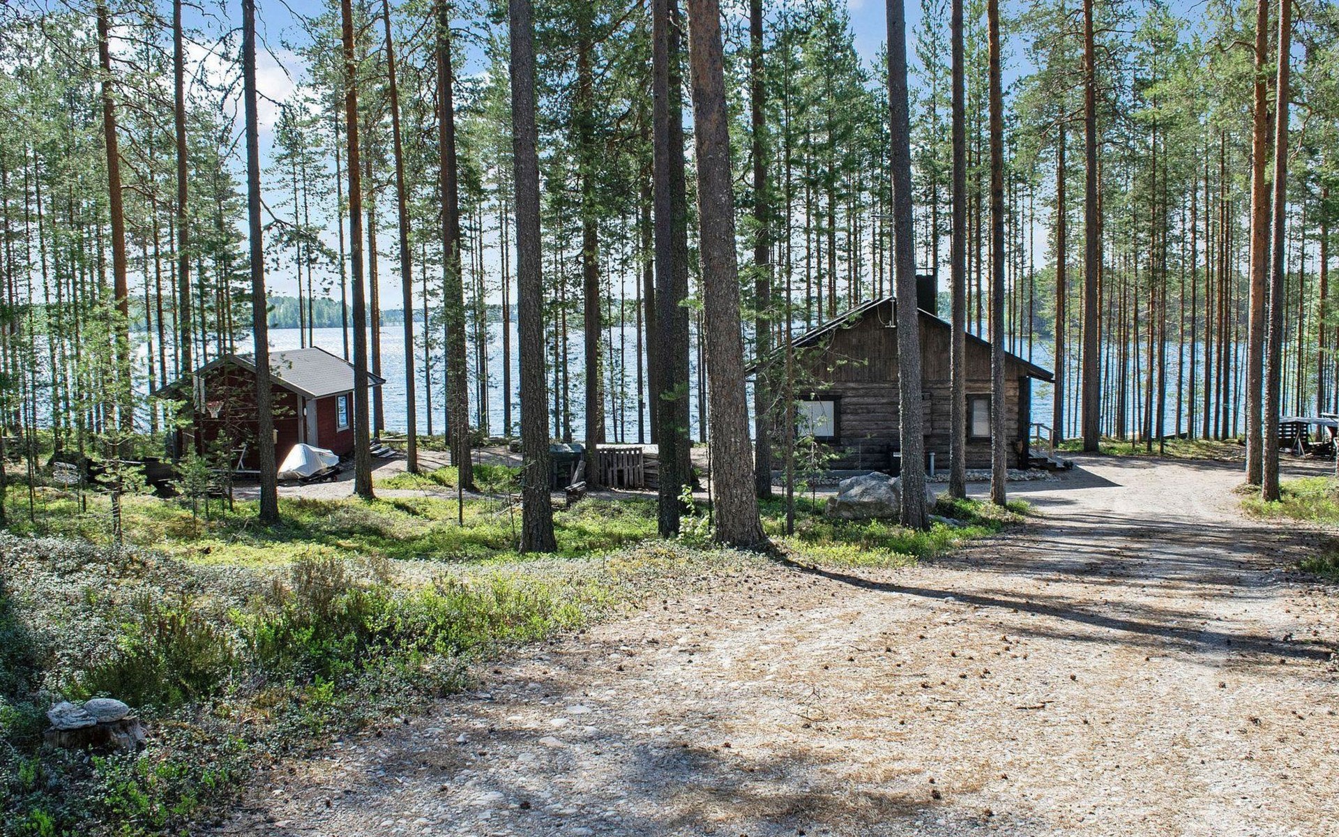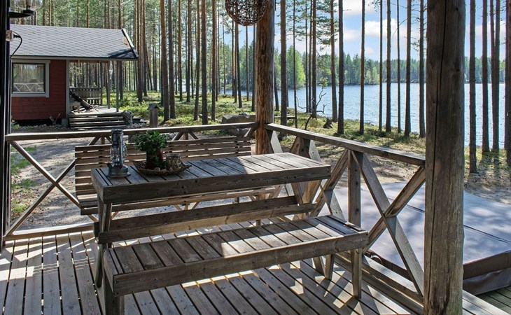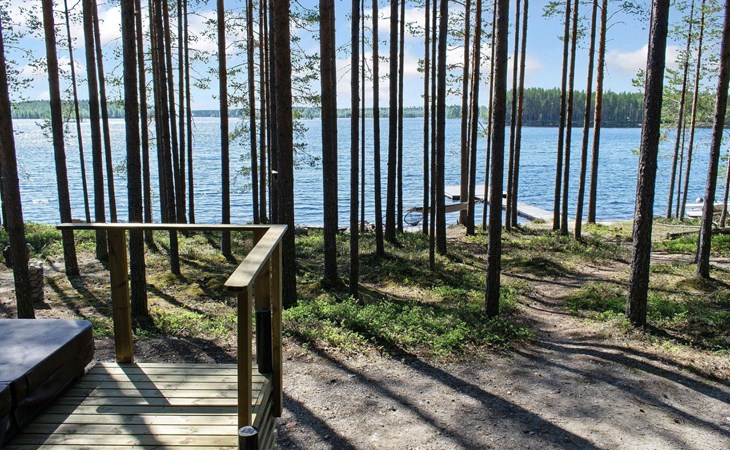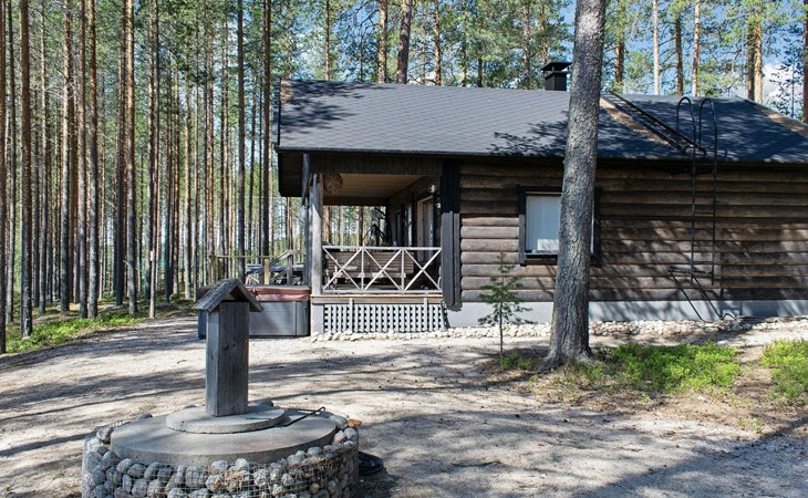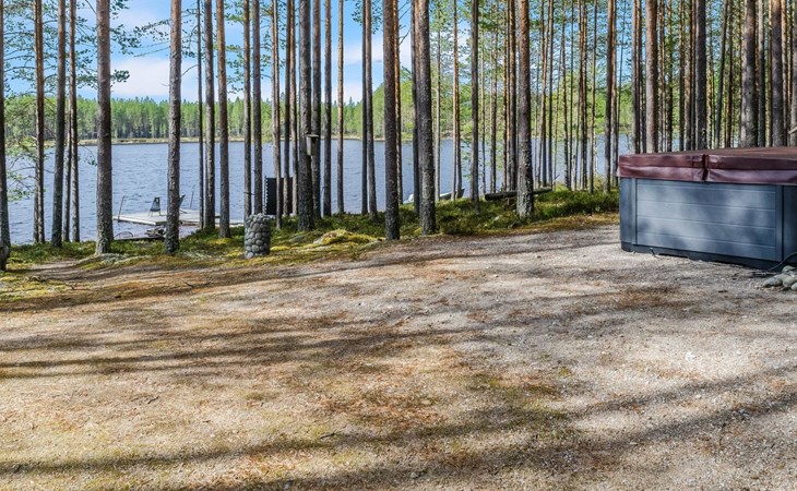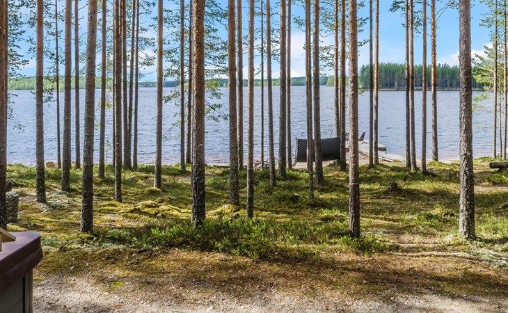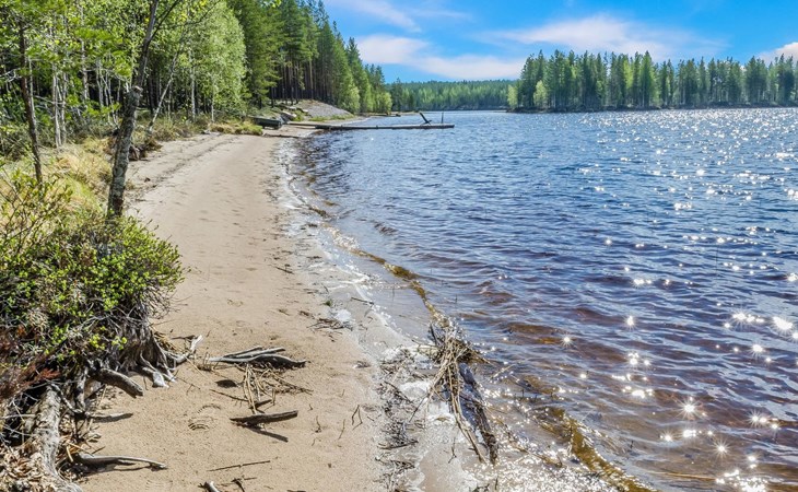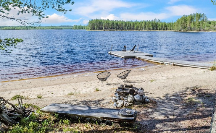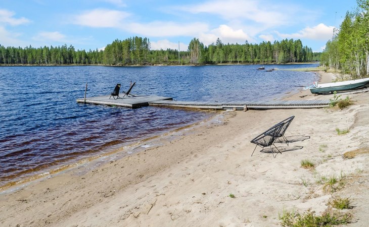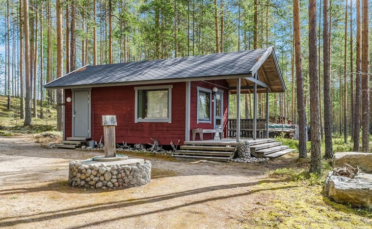 76 km to the northeast from Joensuu, lake Koitere 25 m (163,667 km²), shallow natural sand beach, own beach, pier and boat. Own coastline 80 m. Wooden holiday cabin 2012. Living room-kitchen with spreadable divan-sofa, bedroom with double bed, wood-heated sauna, terrace.