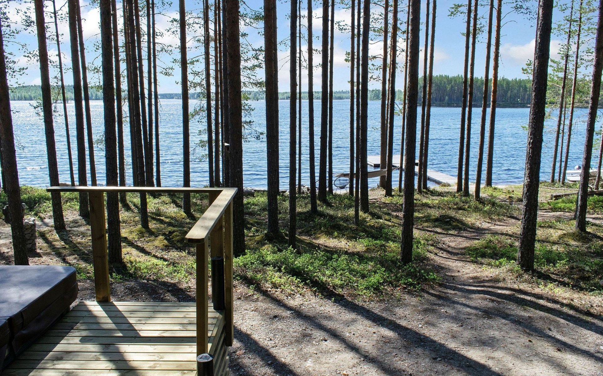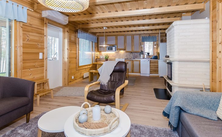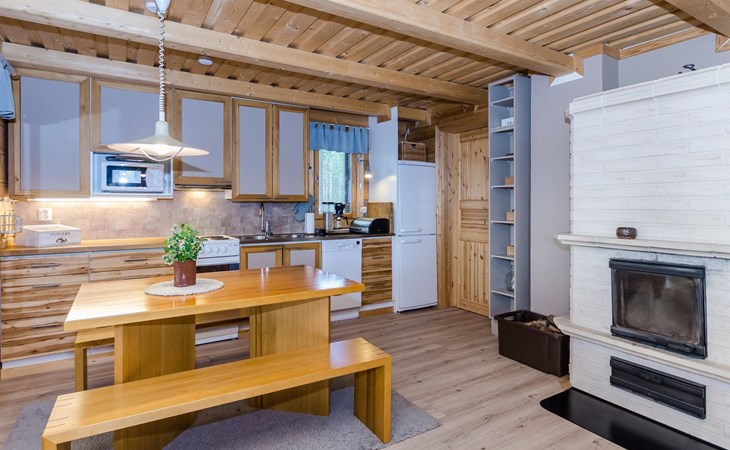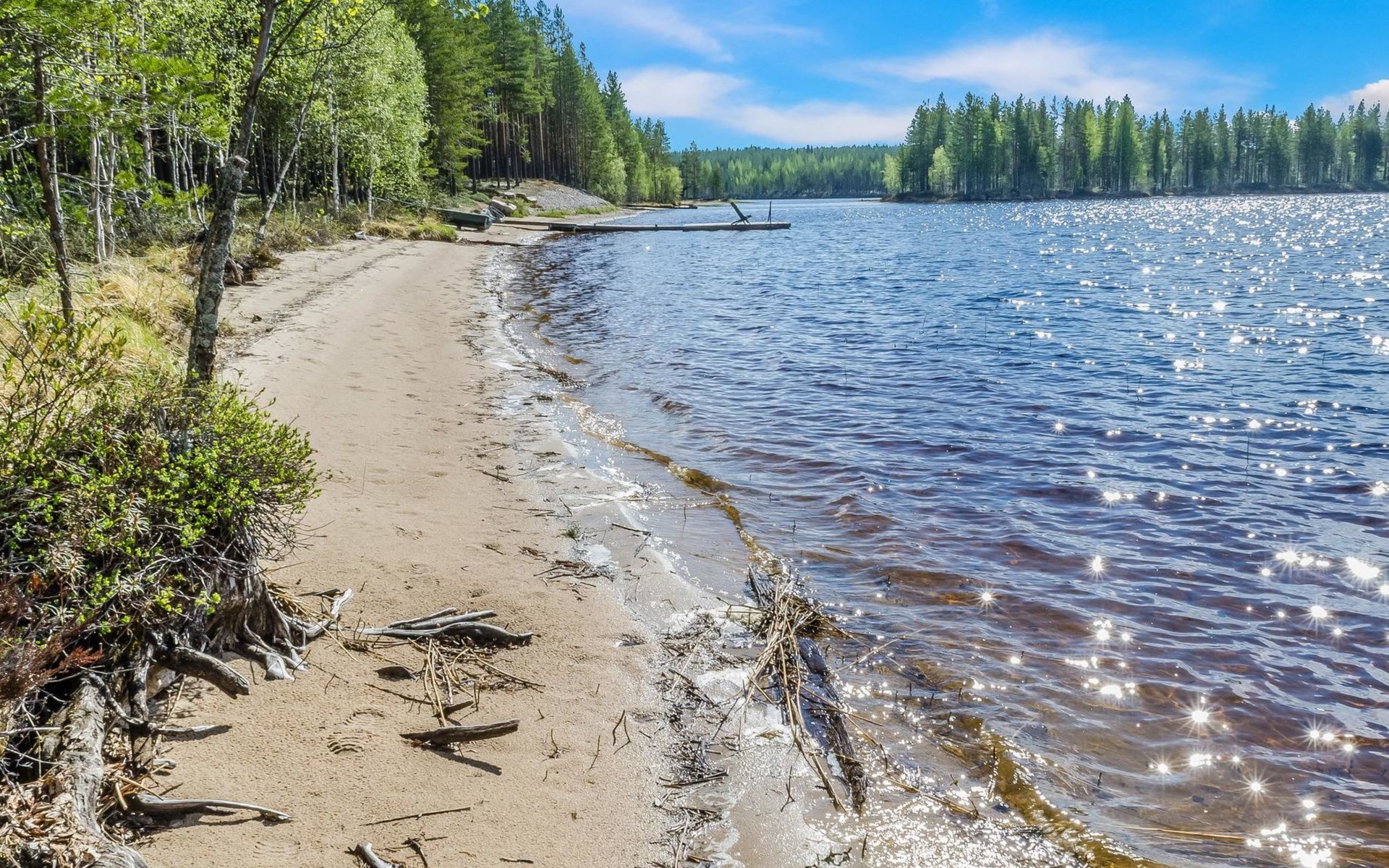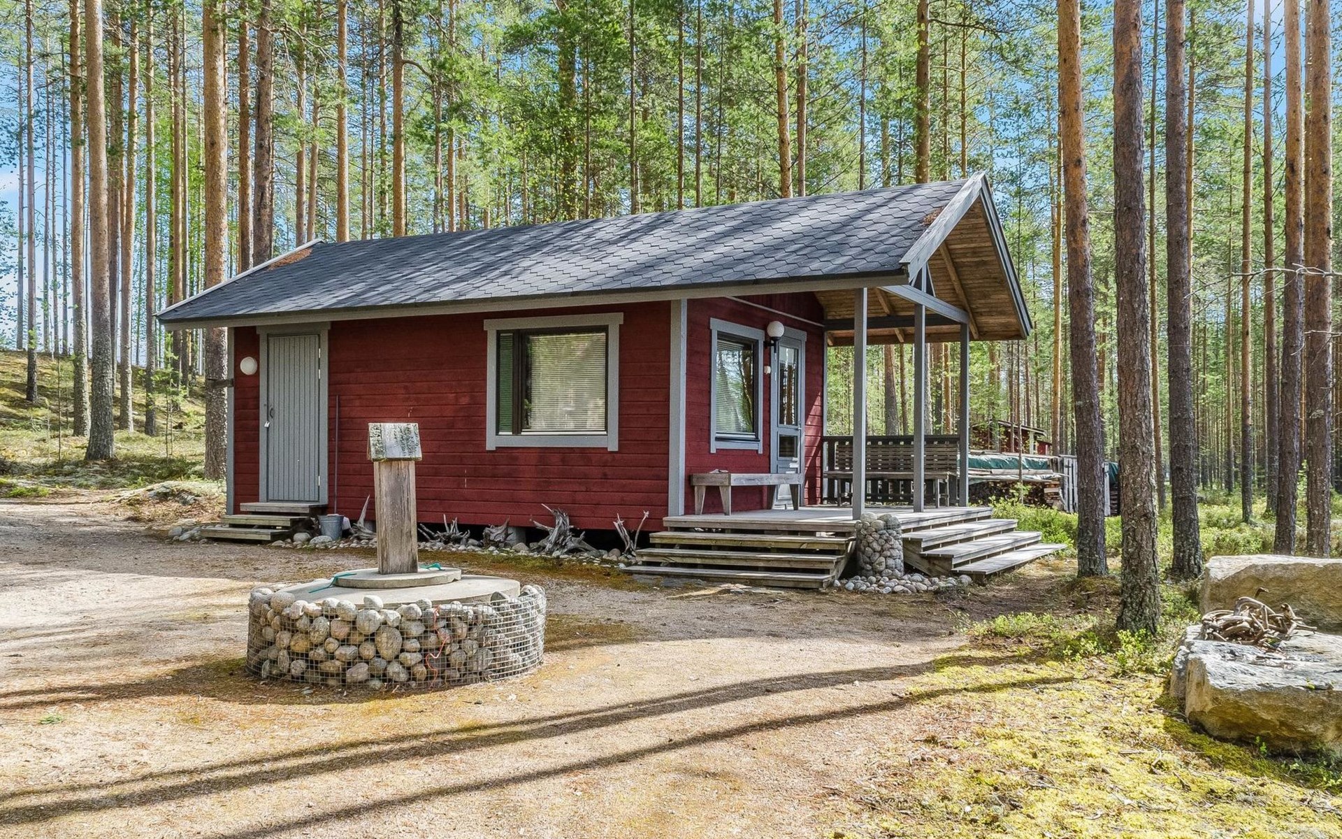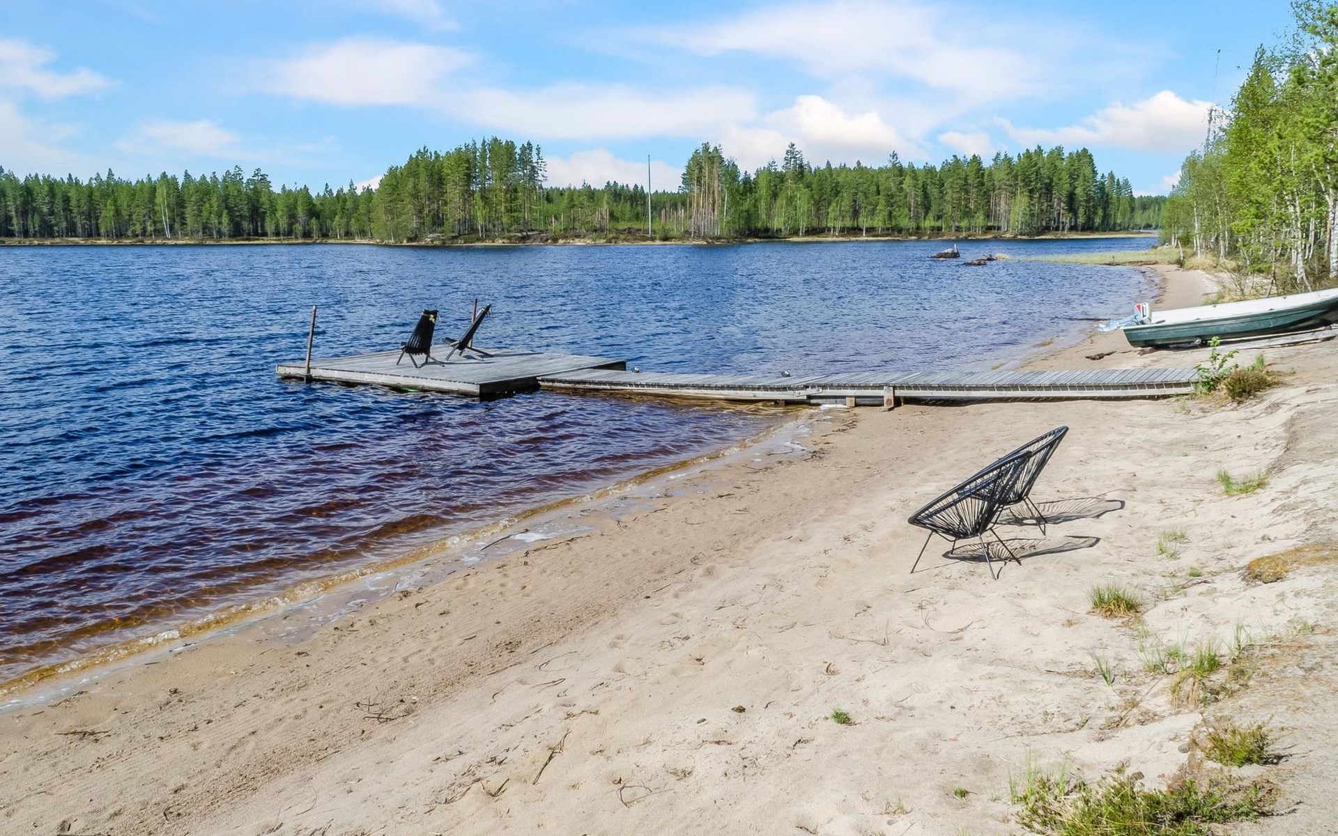 76 km to the northeast from Joensuu, lake Koitere 25 m (163,667 km²), shallow natural sand beach, own beach, pier and boat. Own coastline 80 m. Wooden holiday cabin 2012. Living room-kitchen with spreadable divan-sofa, bedroom with double bed, wood-heated sauna, terrace.