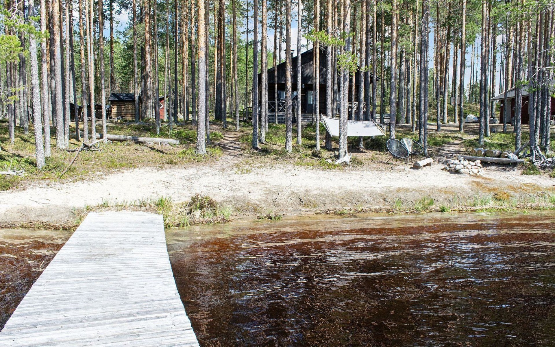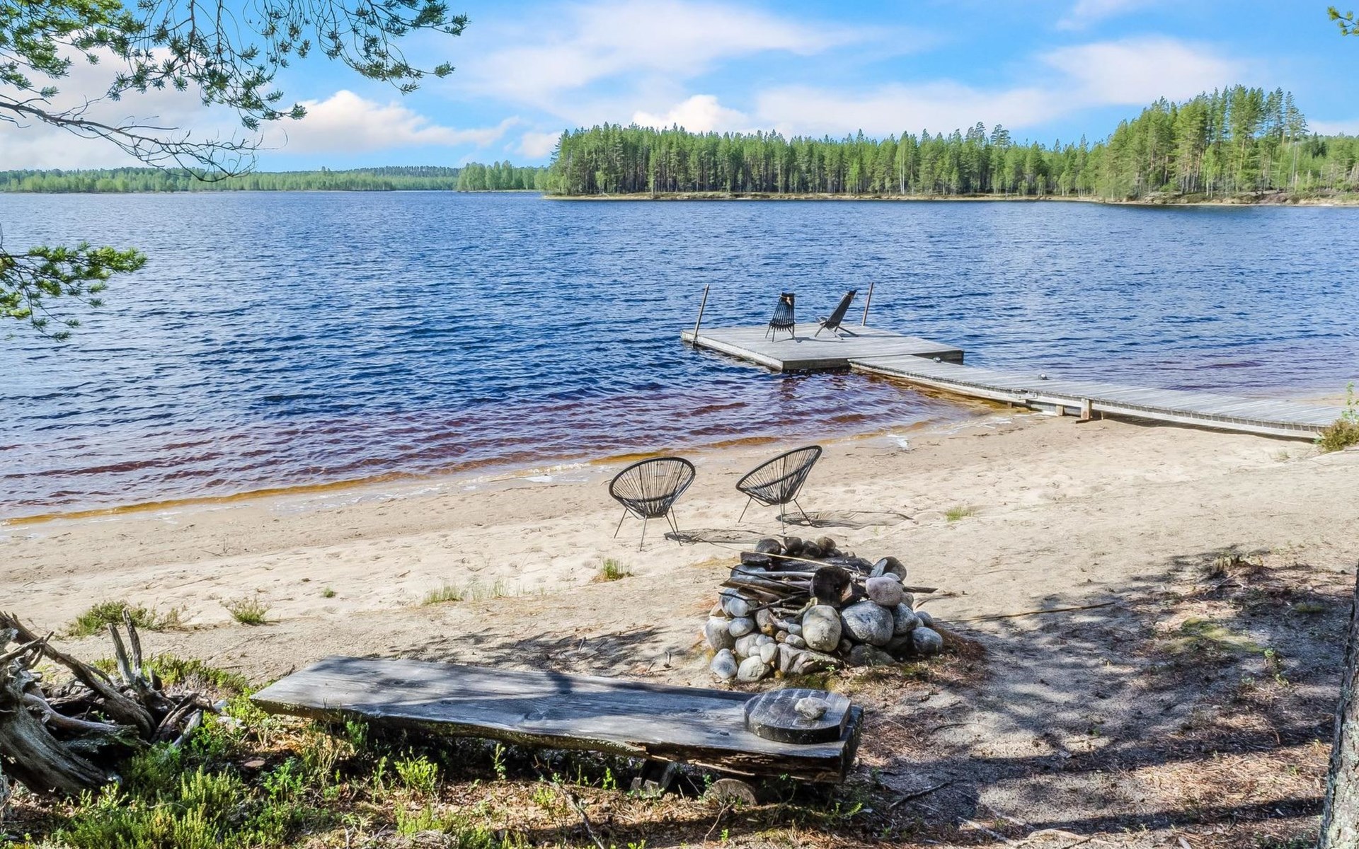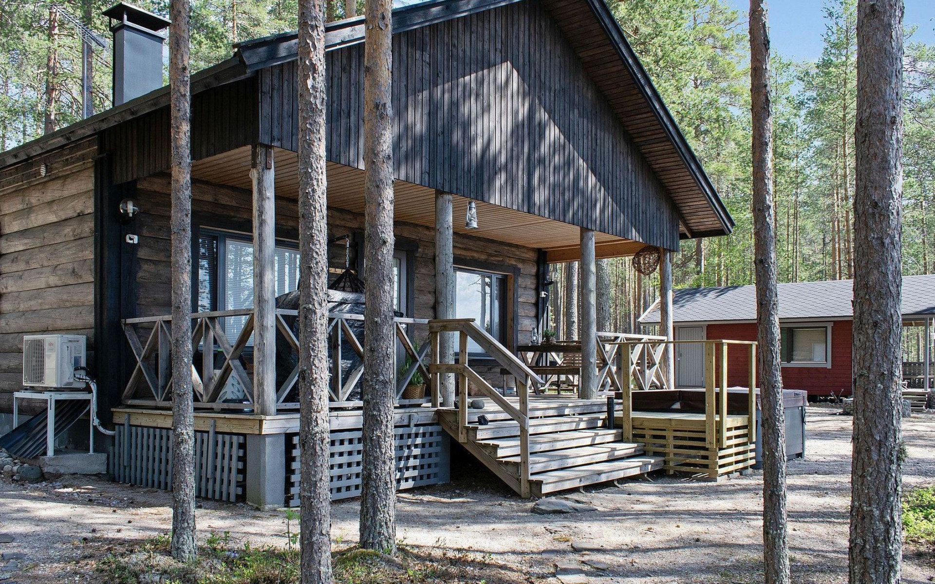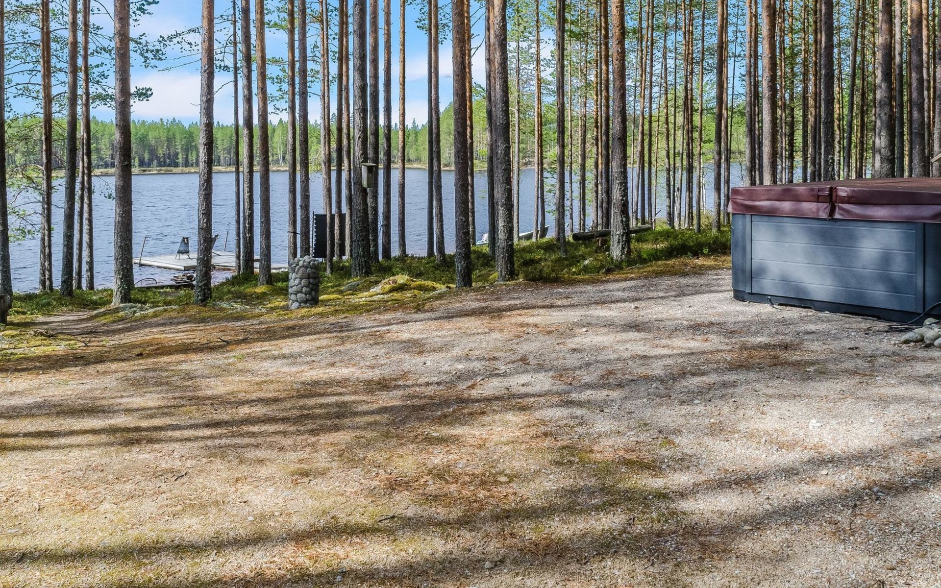 76 km to the northeast from Joensuu, lake Koitere 25 m (163,667 km²), shallow natural sand beach, own beach, pier and boat. Own coastline 80 m. Wooden holiday cabin 2012. Living room-kitchen with spreadable divan-sofa, bedroom with double bed, wood-heated sauna, terrace.