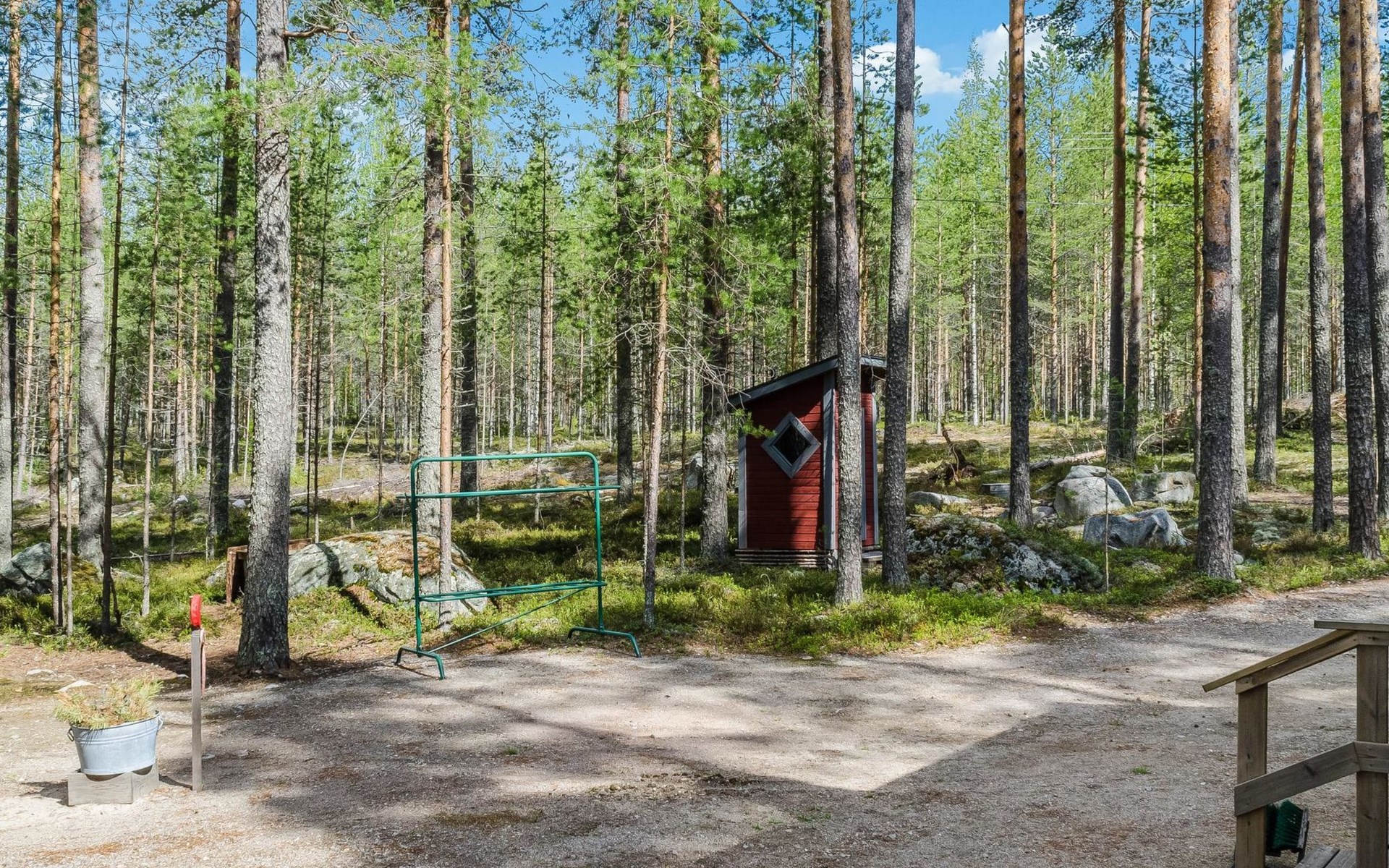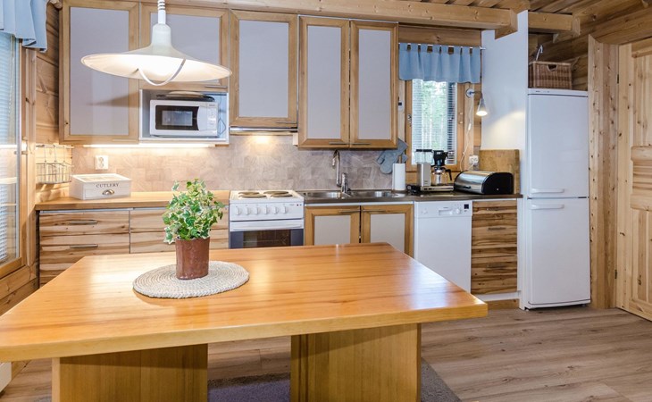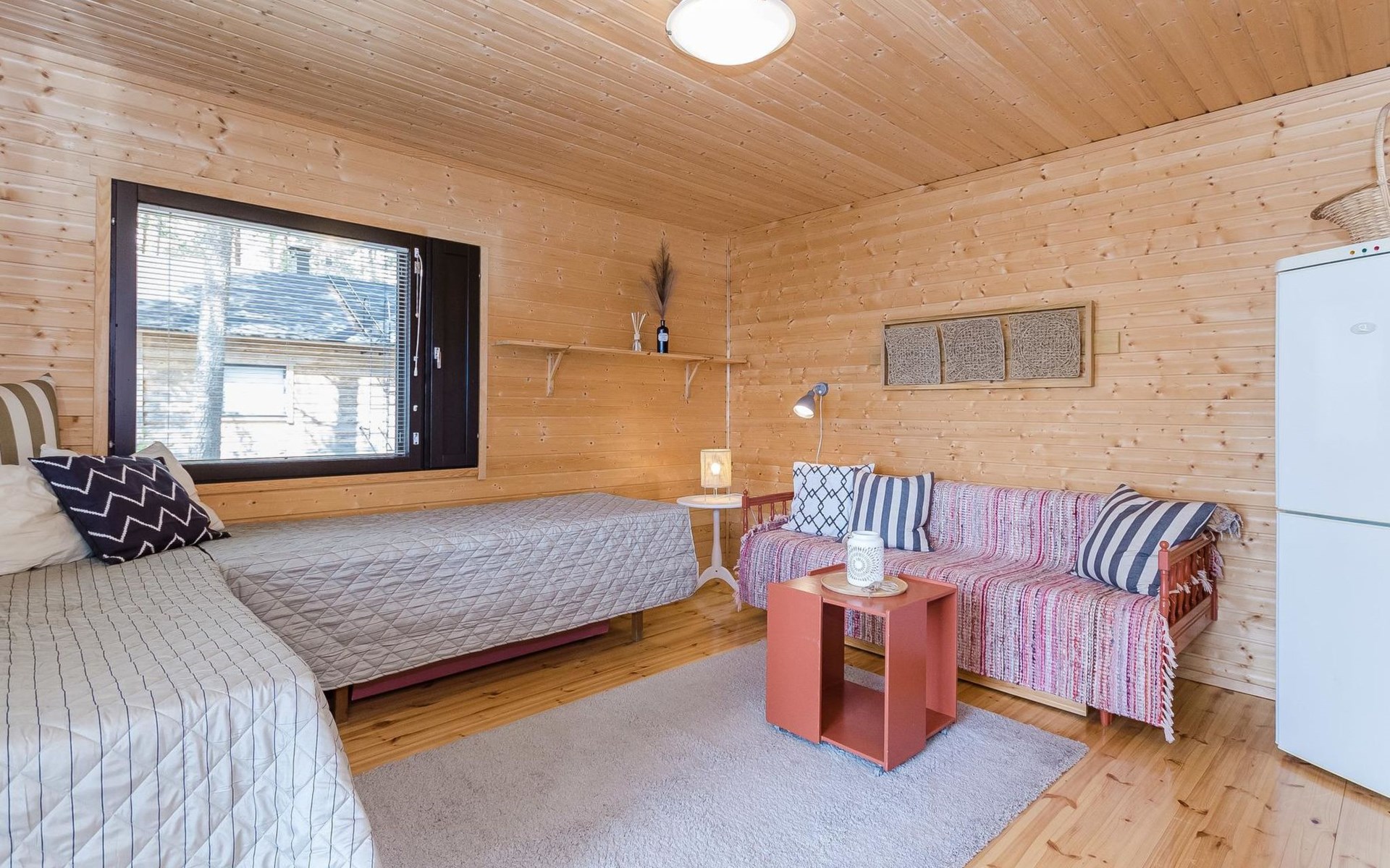 In the summer, a sleeping shed can be used, which means that the number of guests can exceed 3 people. There is a fridge-freezer in the shed.