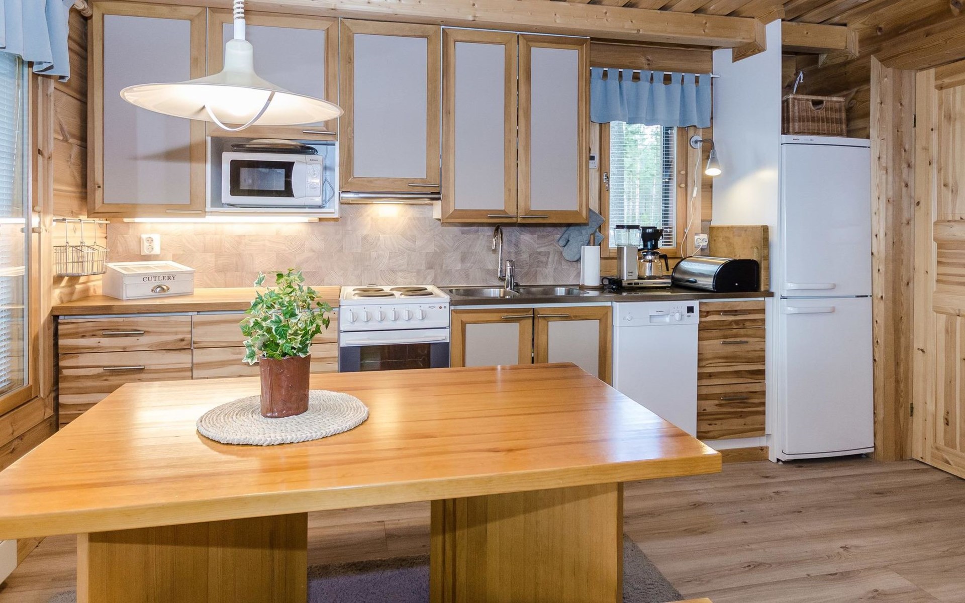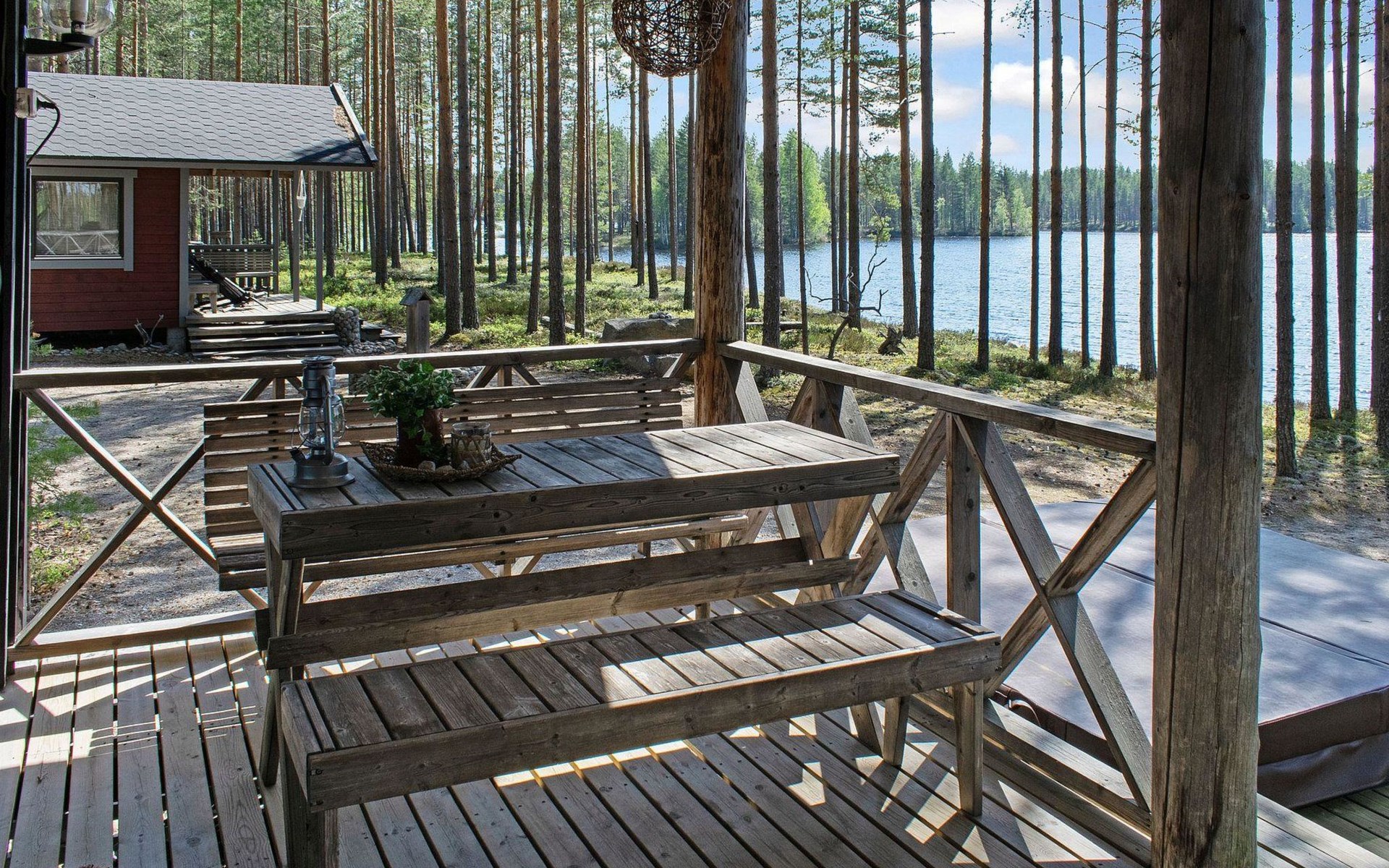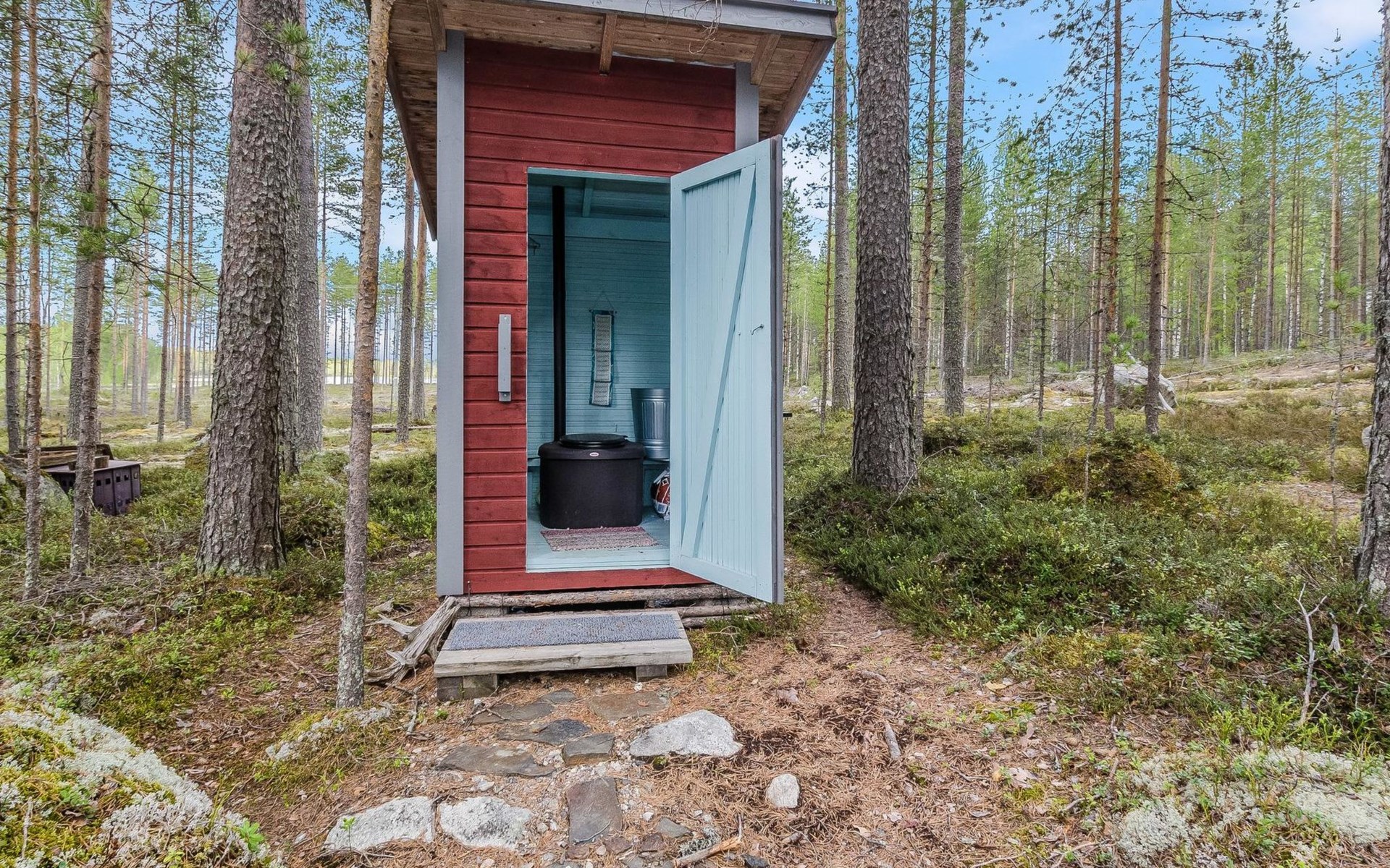 In the summer, a sleeping shed can be used, which means that the number of guests can exceed 3 people. There is a fridge-freezer in the shed.