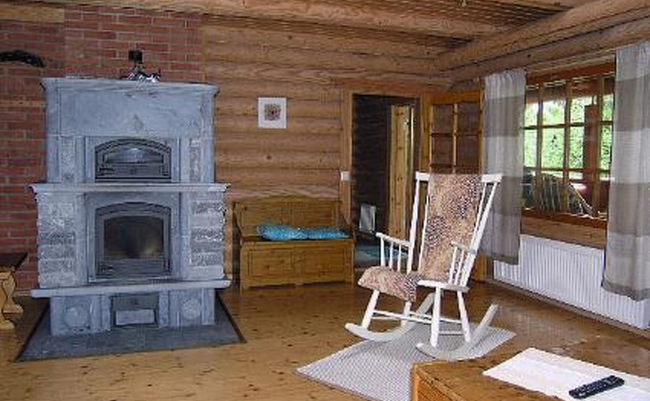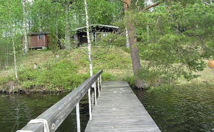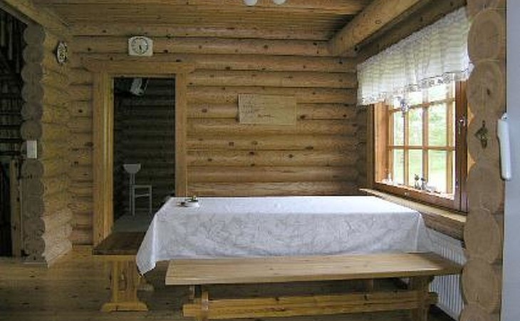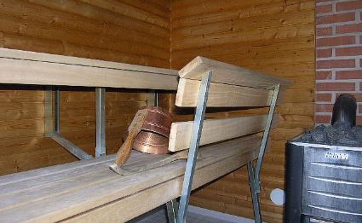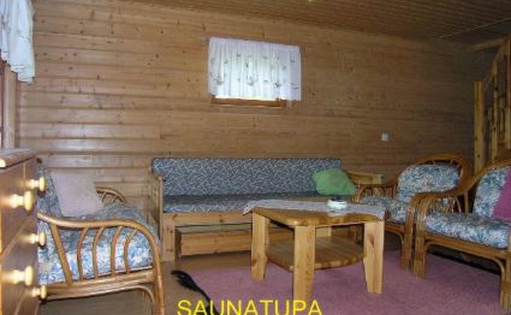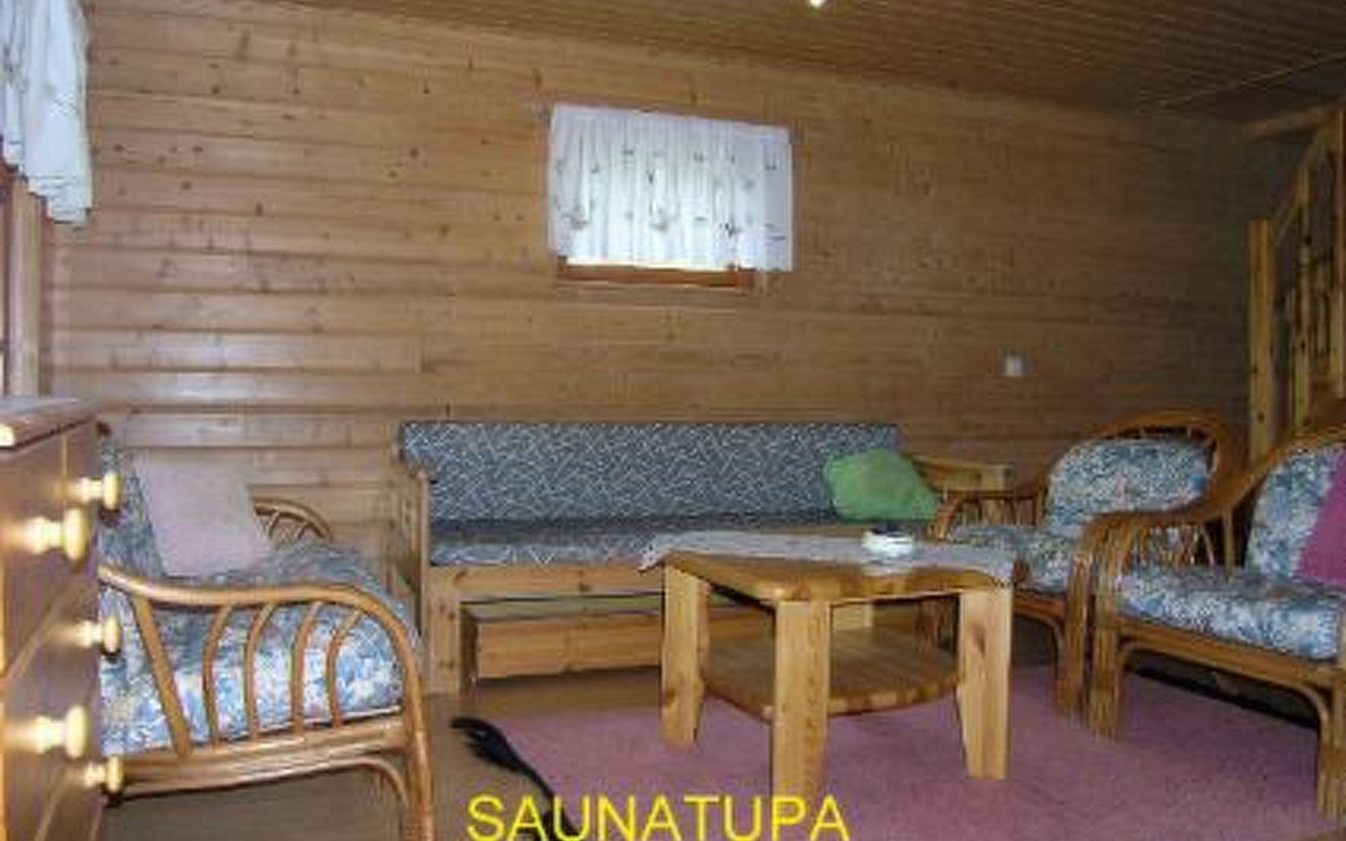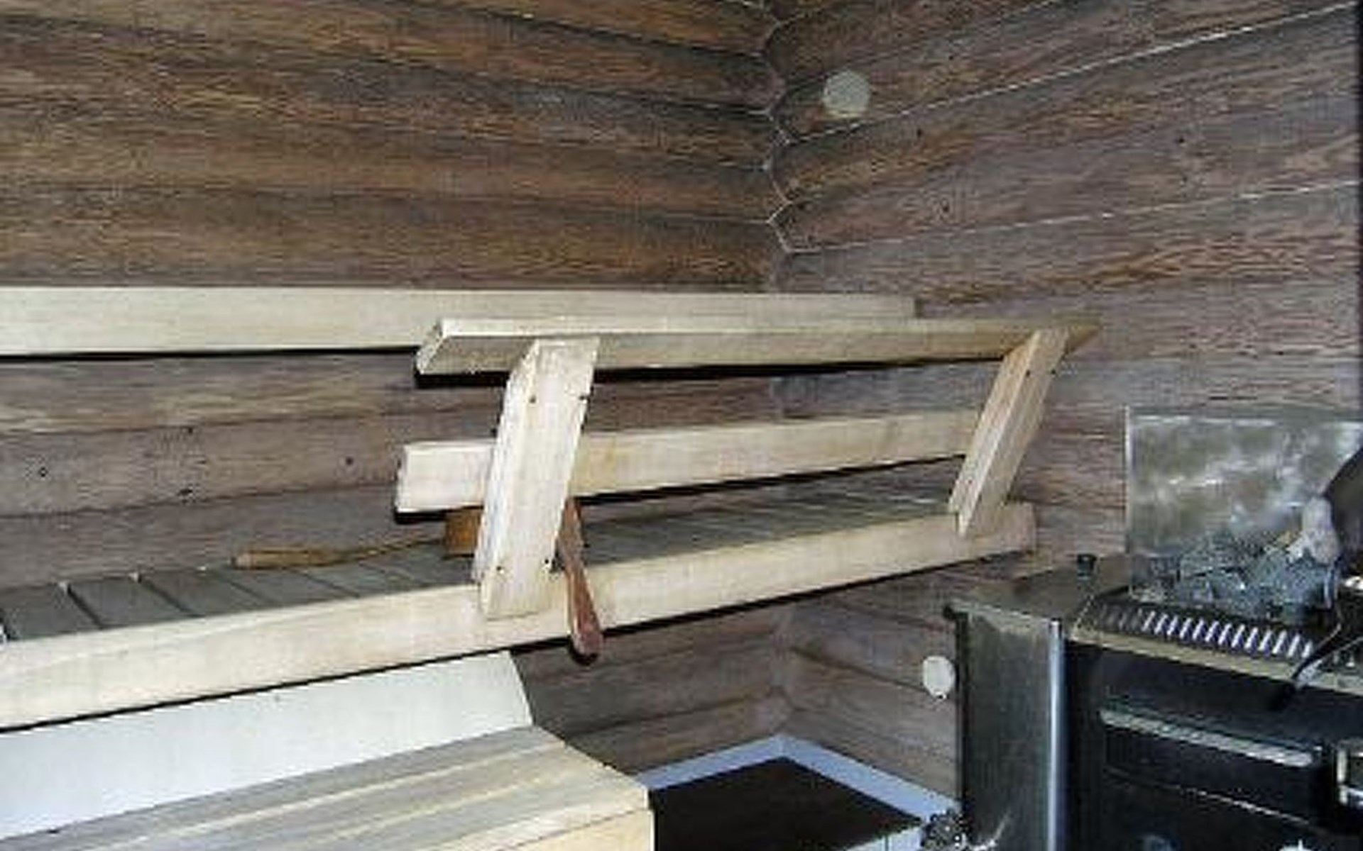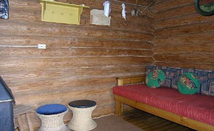 Lakeside sauna. Water to the sauna comes via pipe from lake, wood-burning stove, washroom with shower (lake water), living room area with sofa bed, stove, refrigerator and porch. In winter shower is not in use, the water is heated in the heater tank.