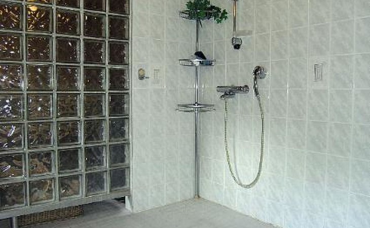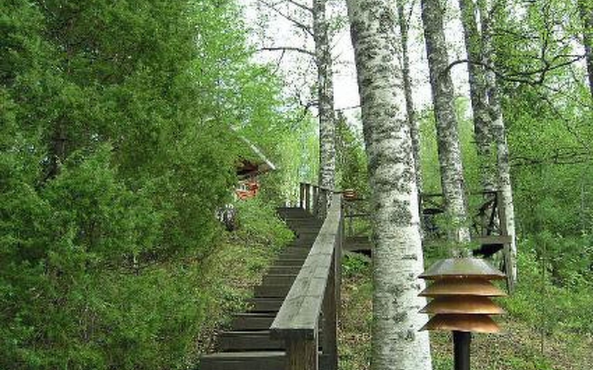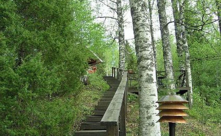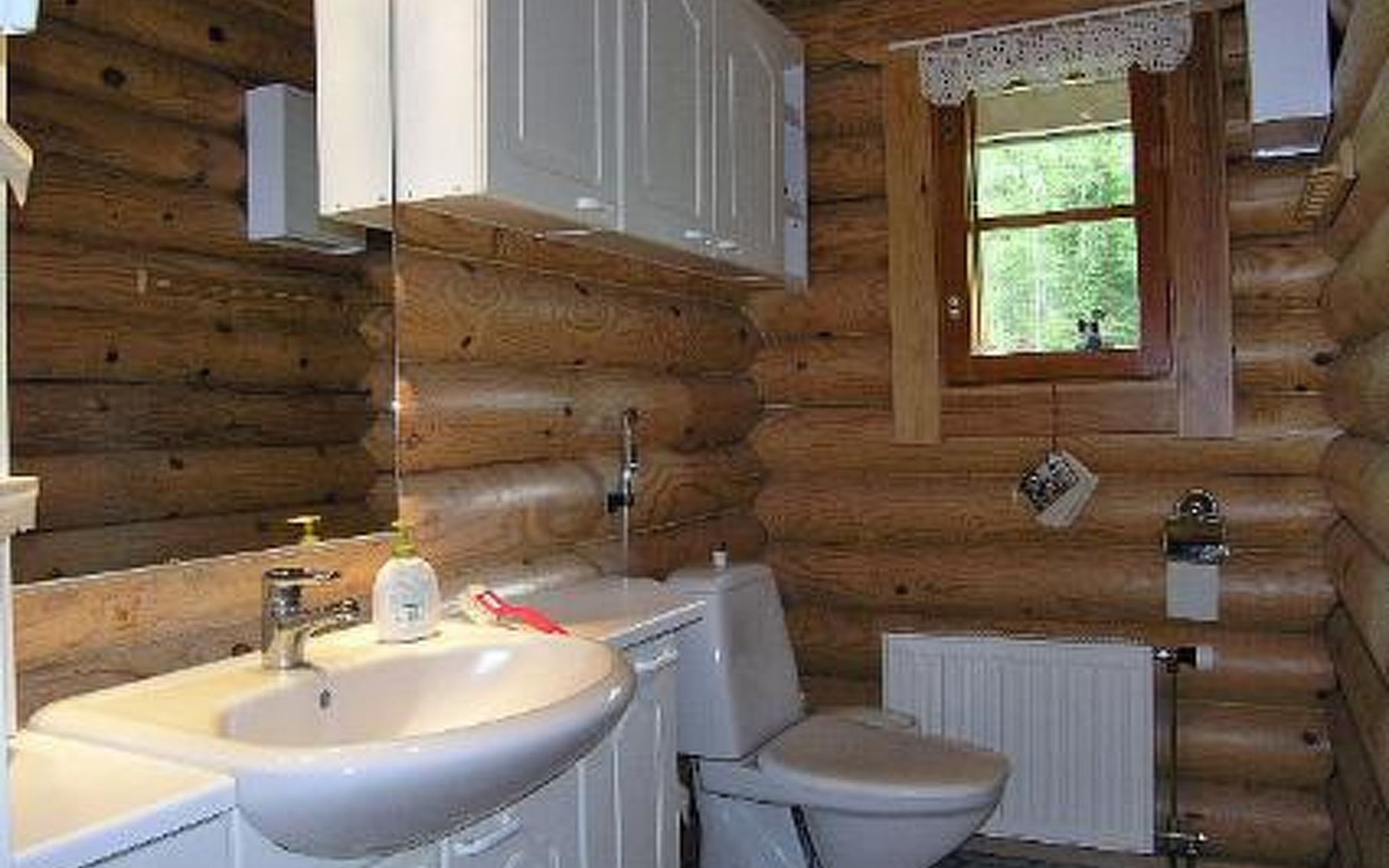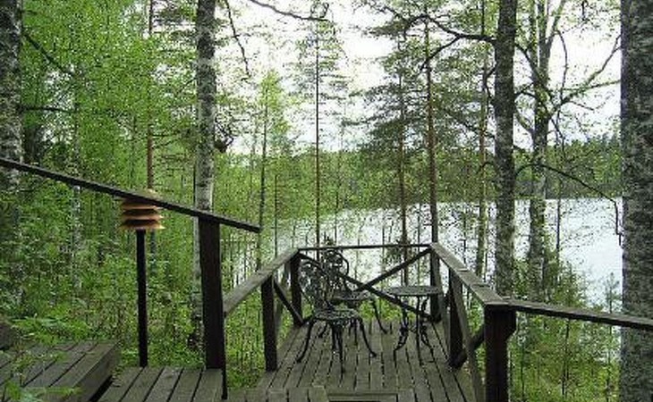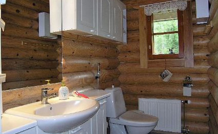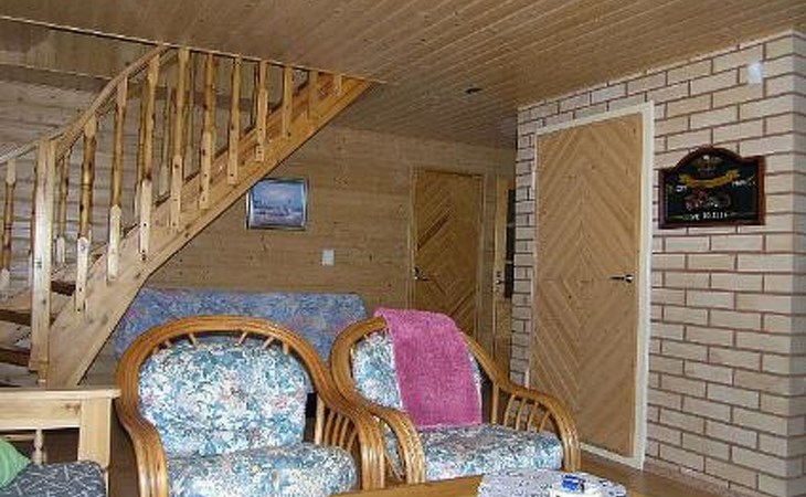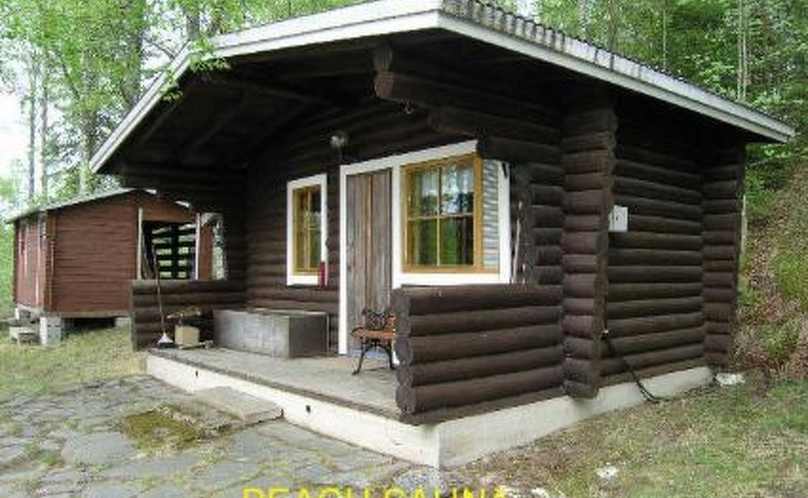 Lakeside sauna. Water to the sauna comes via pipe from lake, wood-burning stove, washroom with shower (lake water), living room area with sofa bed, stove, refrigerator and porch. In winter shower is not in use, the water is heated in the heater tank.
