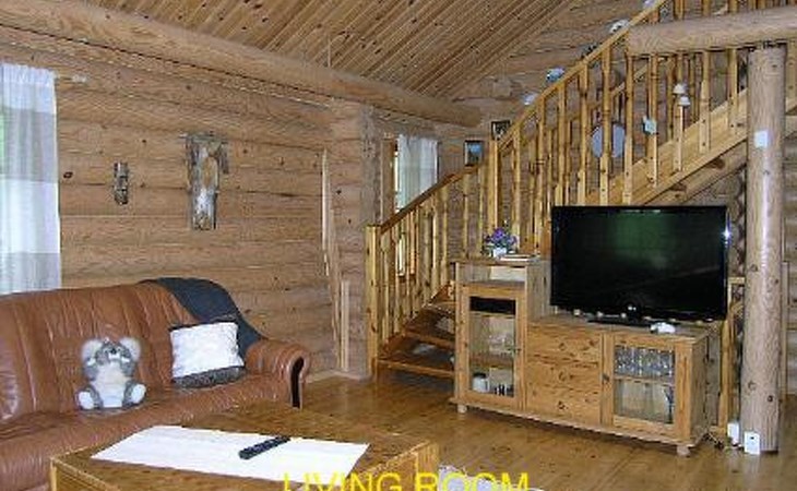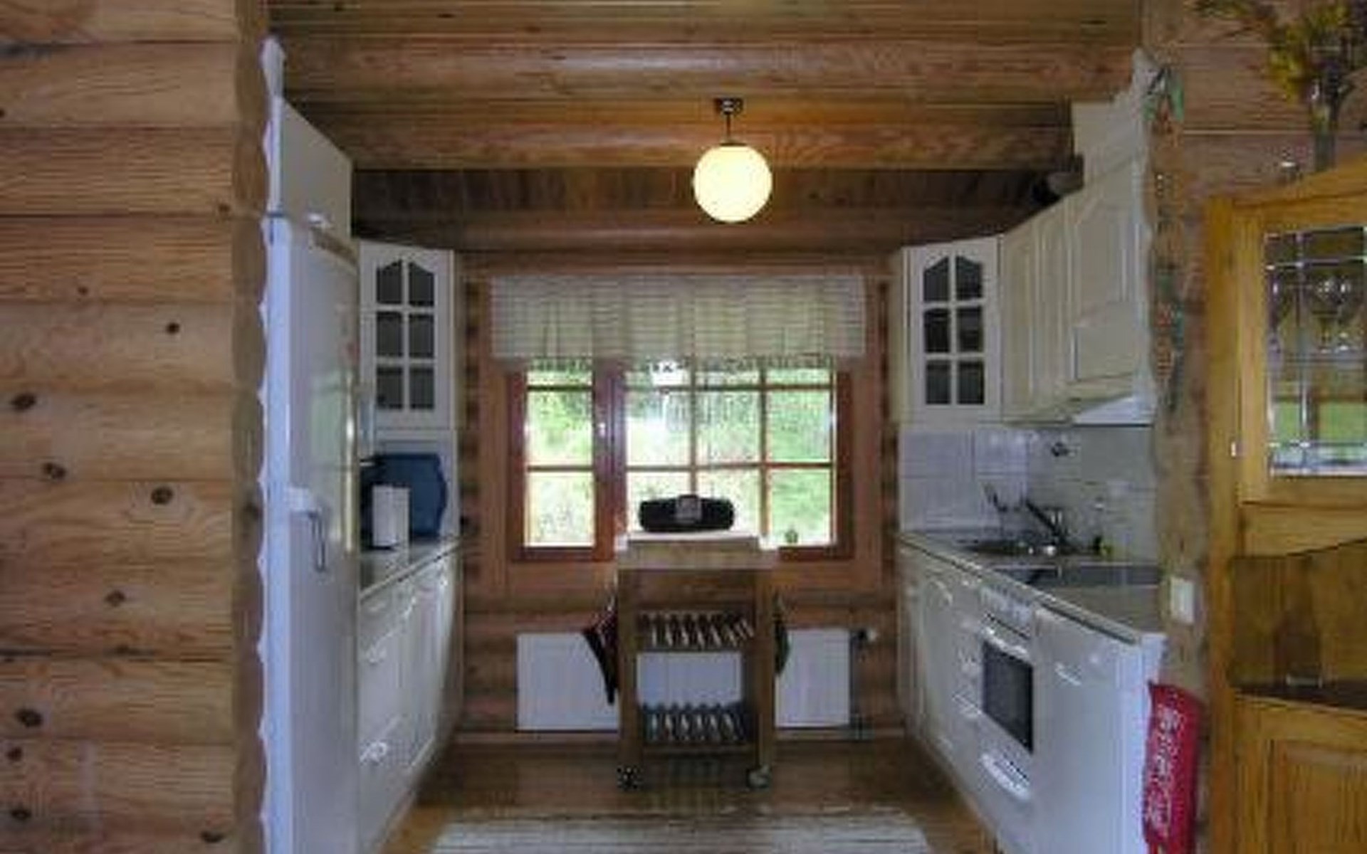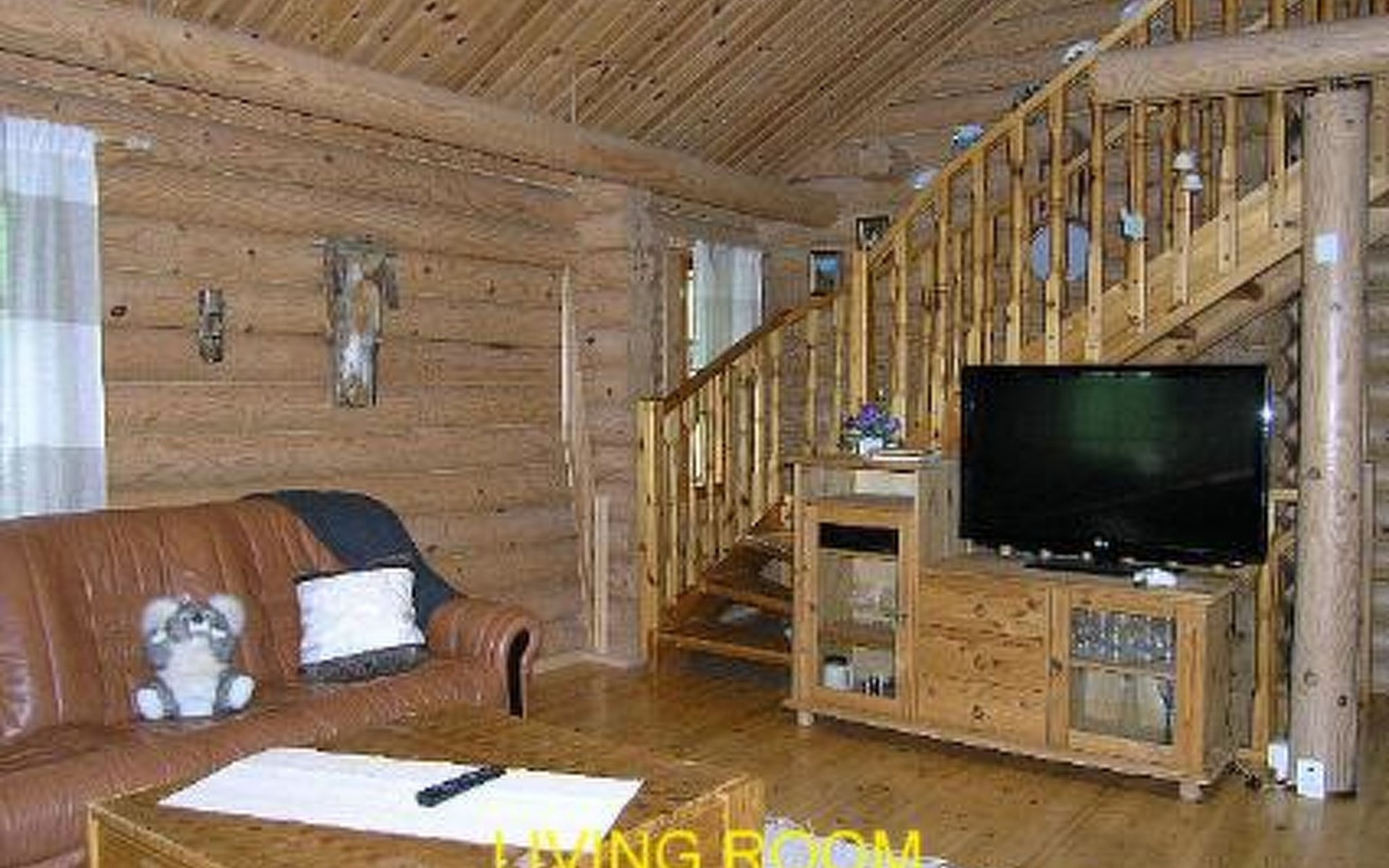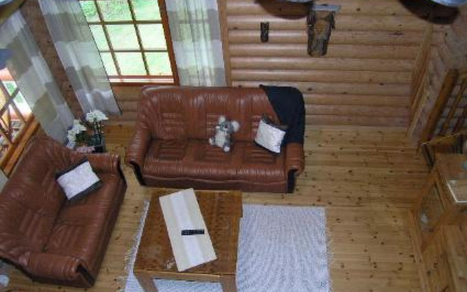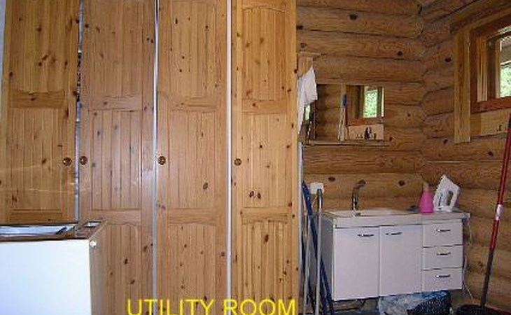 Log cottage on three floors, built in 1995, on the middle floor living room, kitchen and dining area, hallway, bedroom with double bed, utility room, covered terrace.