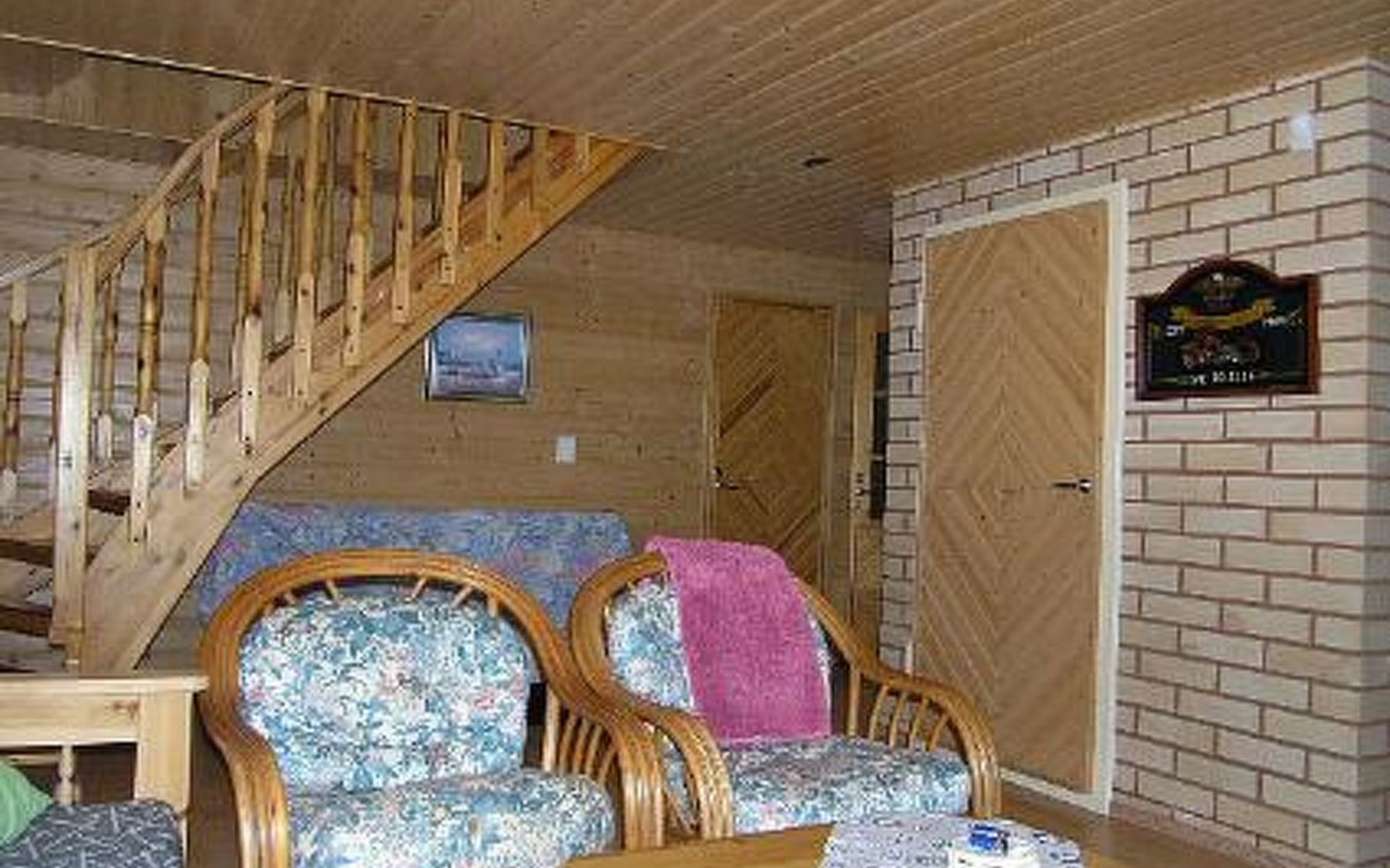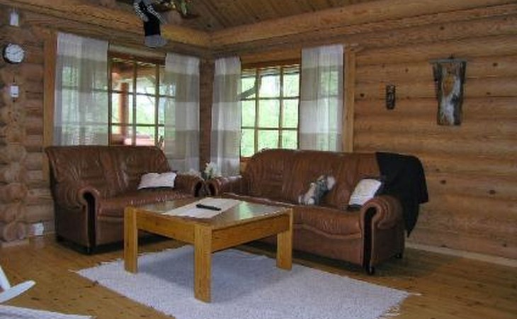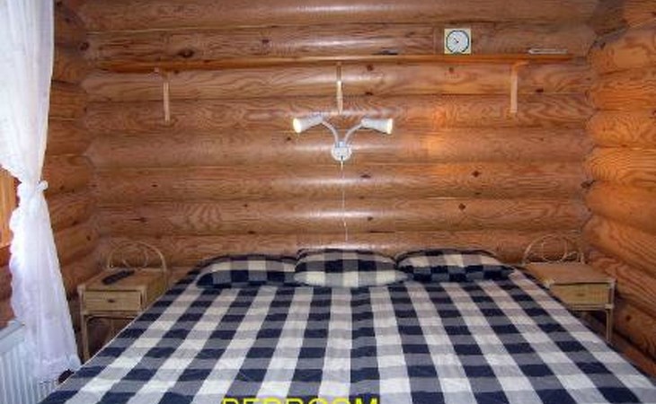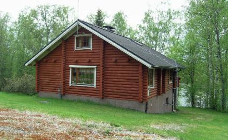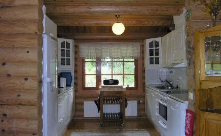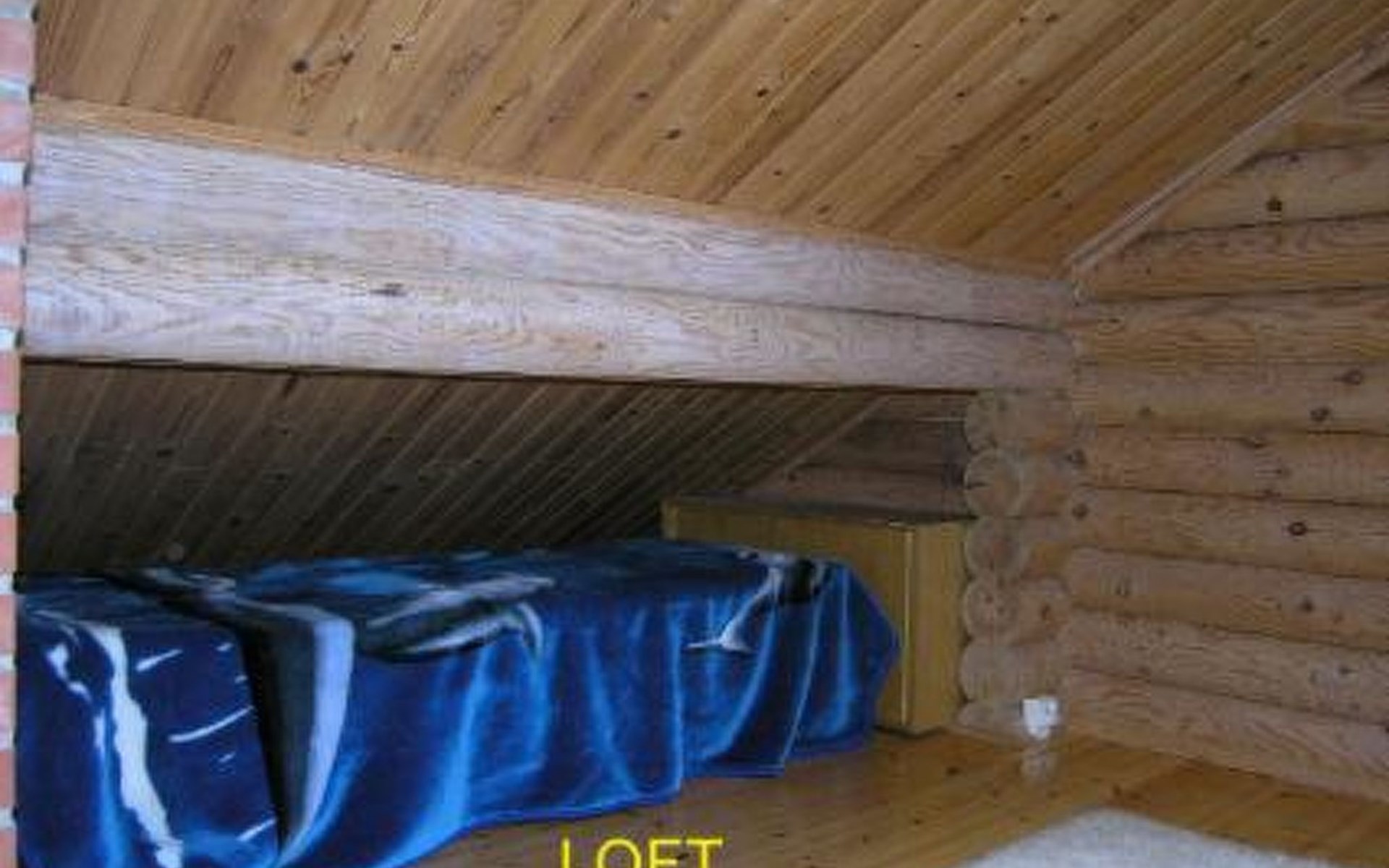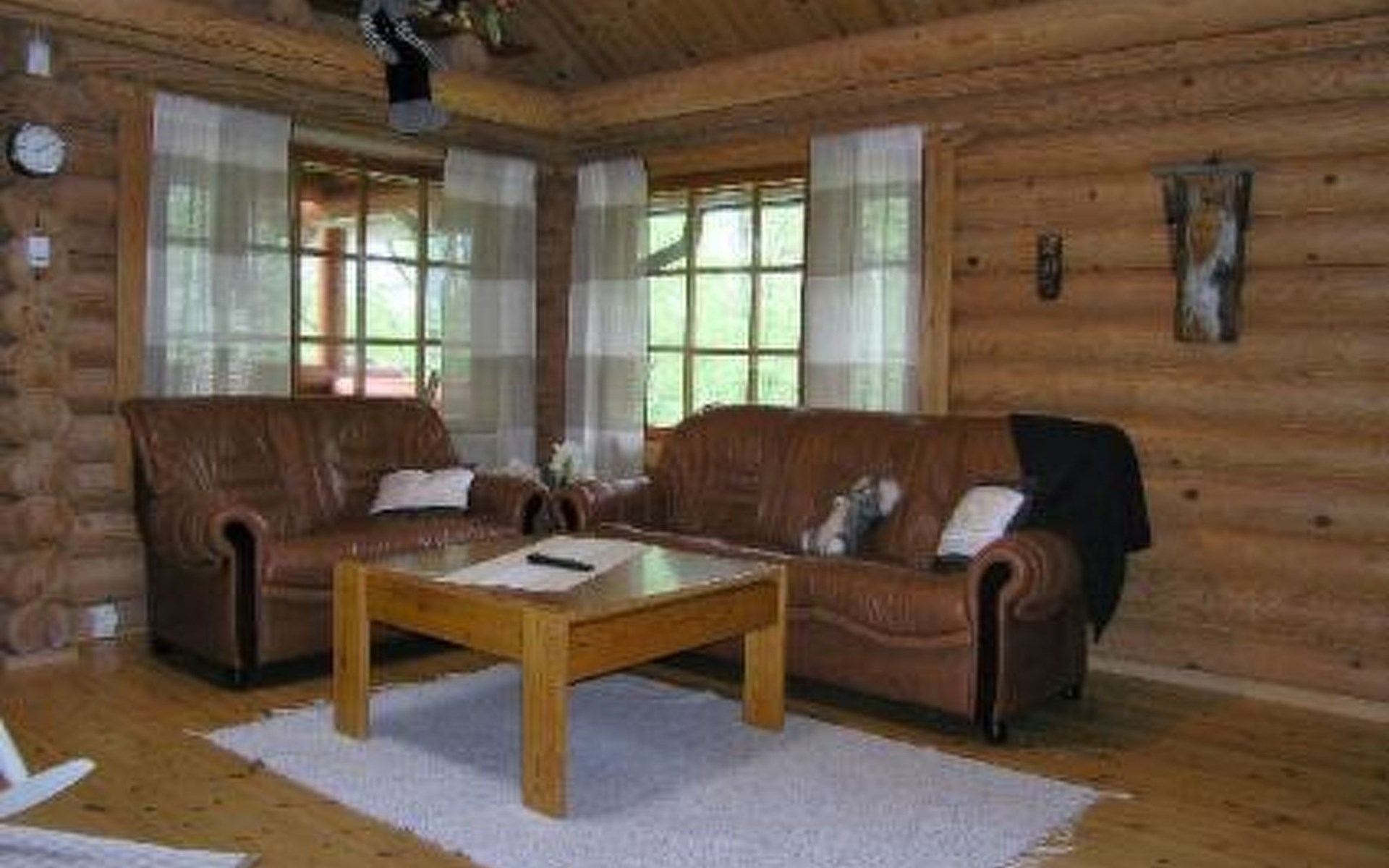 Log cottage on three floors, built in 1995, on the middle floor living room, kitchen and dining area, hallway, bedroom with double bed, utility room, covered terrace.