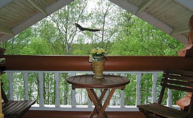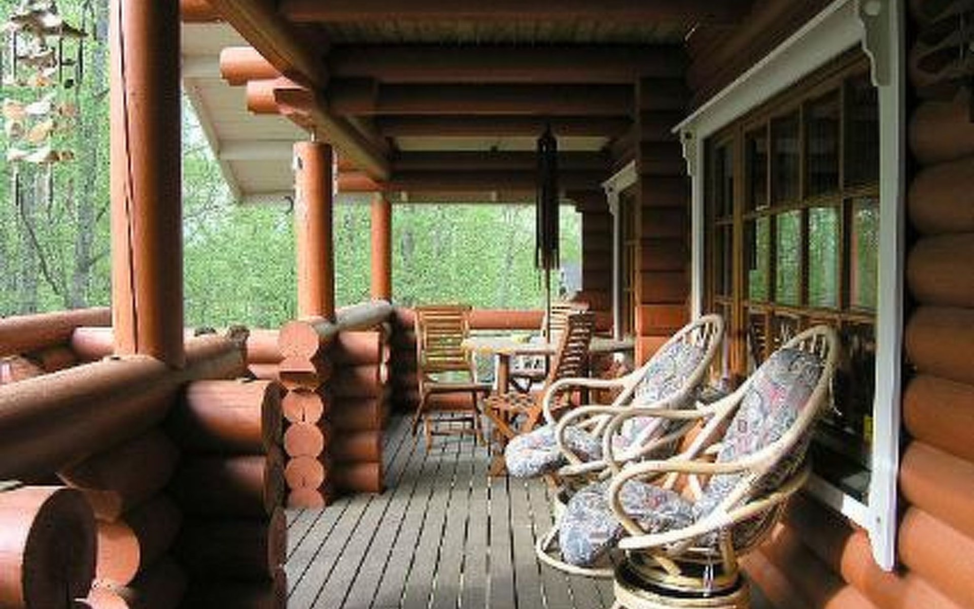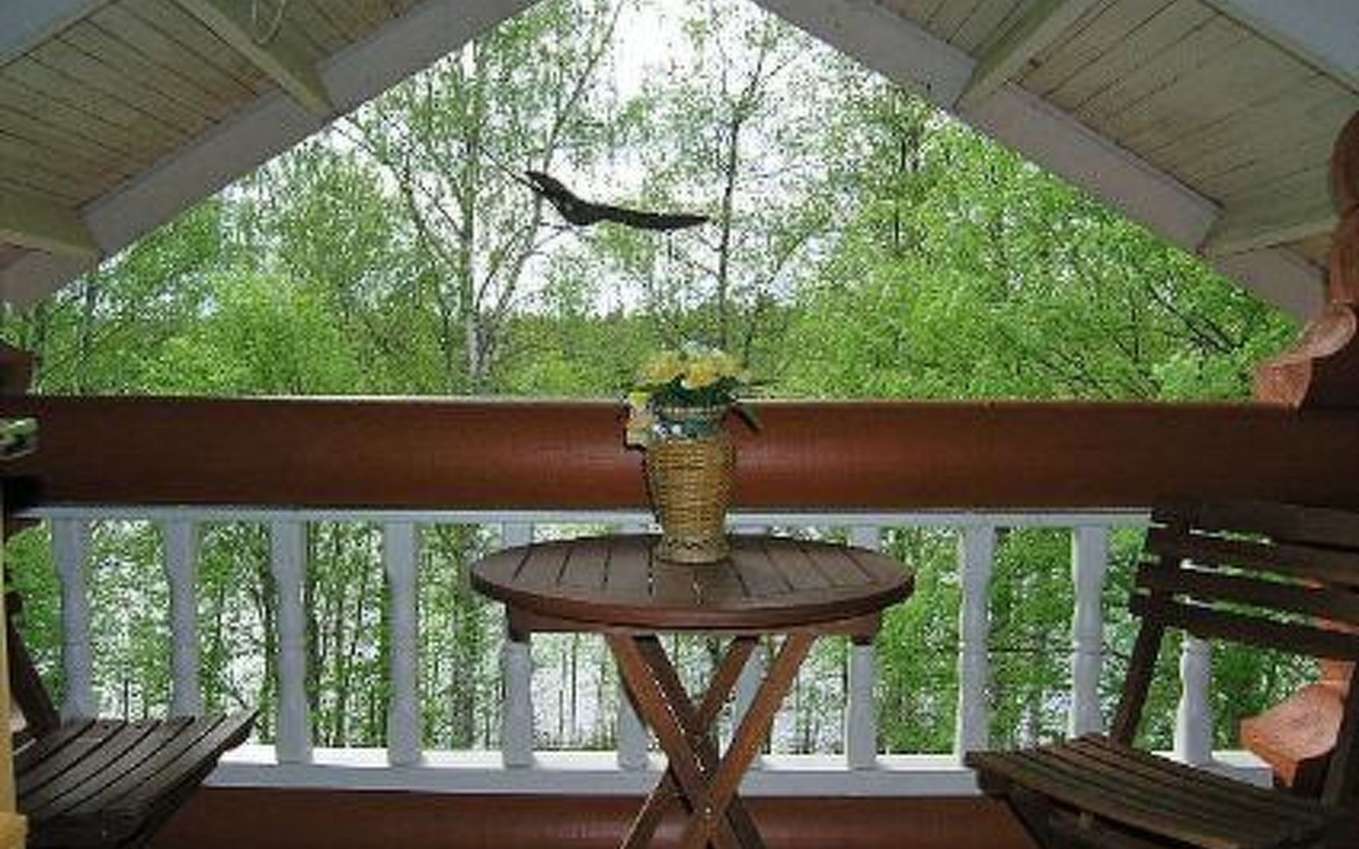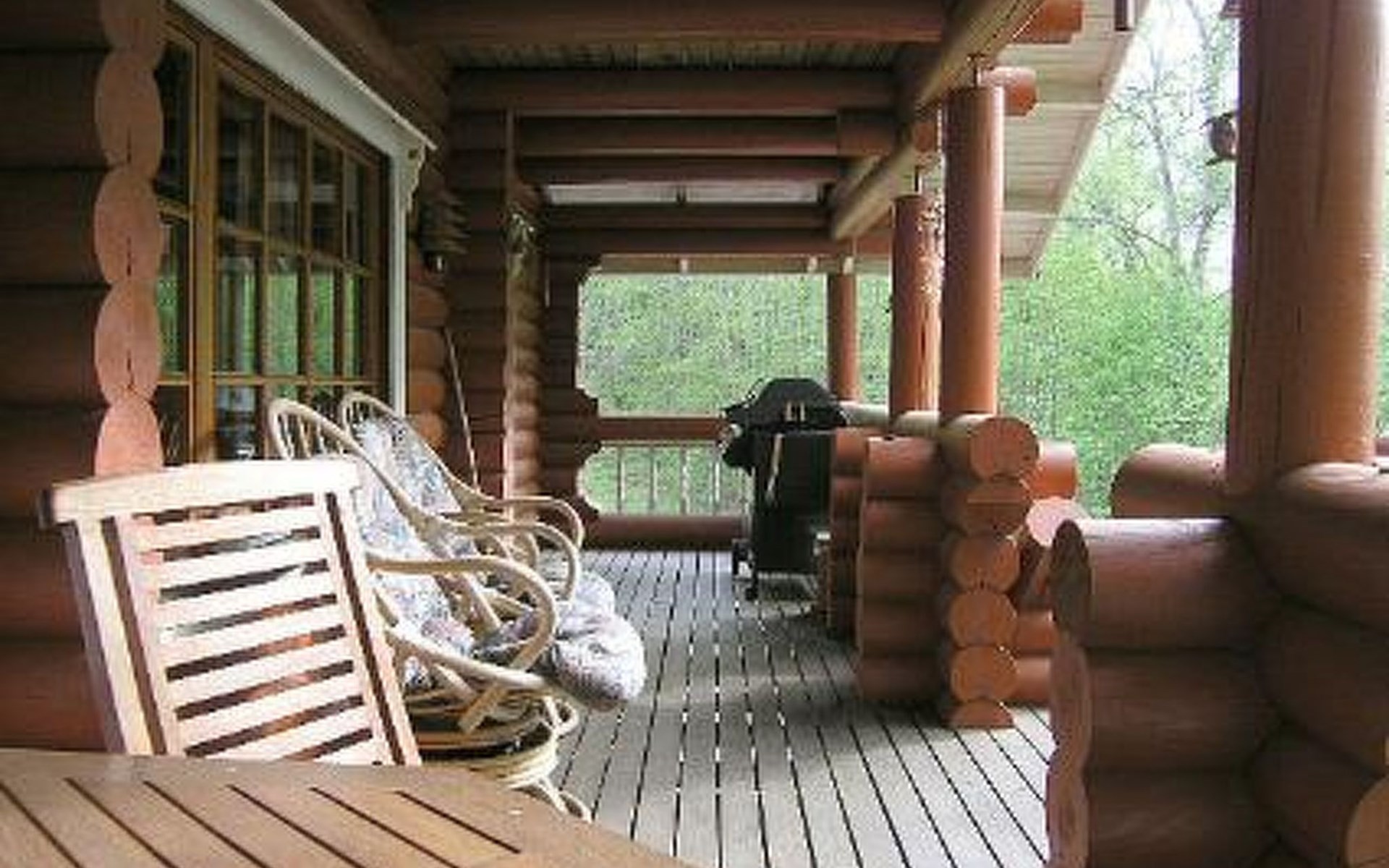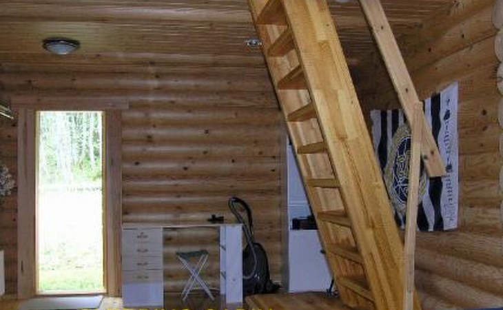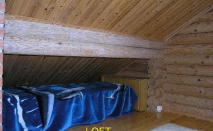 Log cottage on three floors, built in 1995, on the middle floor living room, kitchen and dining area, hallway, bedroom with double bed, utility room, covered terrace.