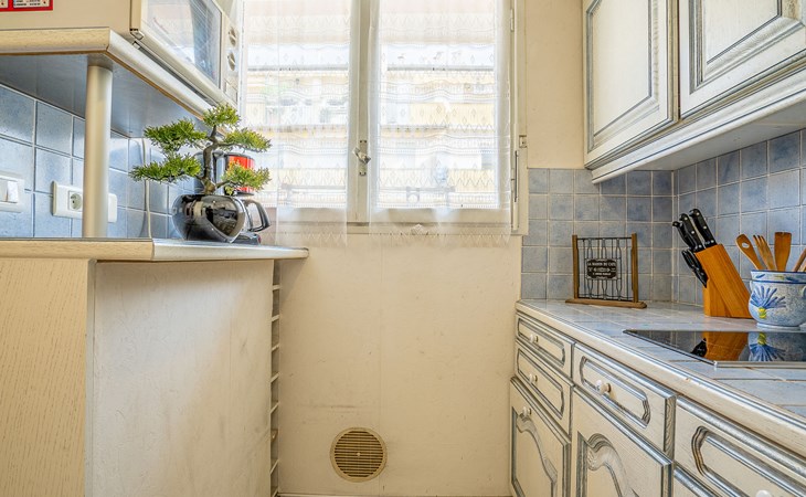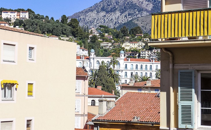 Residentie "Le Casino". In het centrum van Menton, centrale ligging, 100 m van zee, 100 m van het strand. In het complex: lift, centrale verwarming. Winkel 20 m, levensmiddelenwinkel, restaurant, bushalte 40 m, treinstation 100 m, kiezelstrand "publique" 100 m, duikschool 2 km, overdekt zwembad 2.6 km. Jachthaven 2.3 km, golfterrein (18 holes) 17 km, zeilschool 1.4 km, tennis 550 m, midgetgolf 2.8 km, manege 7 km. Attracties in de buurt: Place aux herbes 700 m, Villa Maria Serena 2.9 km, Jardin de Val Rahmeh 2 km.