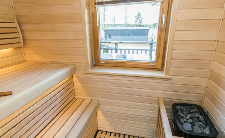 85 km southwest of Turku, Archipelago Sea 200 m, boat dock. The beach is shared among the villas of the holiday village. A separate beach sauna can be rented. Rental instructions are in the cabin folder.