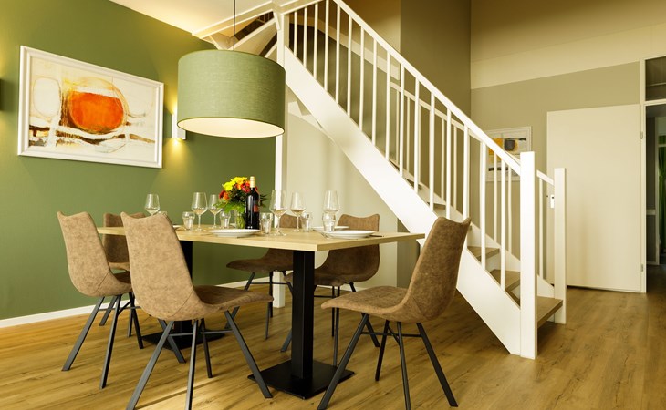 Penthouse Staffelsee is een extra luxe accommodatie geschikt voor 6 personen en van alle gemakken voorzien. Het 4-kamerappartement is uitgevoerd als maisonnette, heeft een gebruiksoppervlakte van circa 140 m2 verdeeld over twee woonlagen. De accommodatie bevindt zich op de bovenste verdieping van het appartementsgebouw en is gelegen aan de gezellige promenade van het resort. Hier bevinden zich ook de uitgebreide faciliteiten.