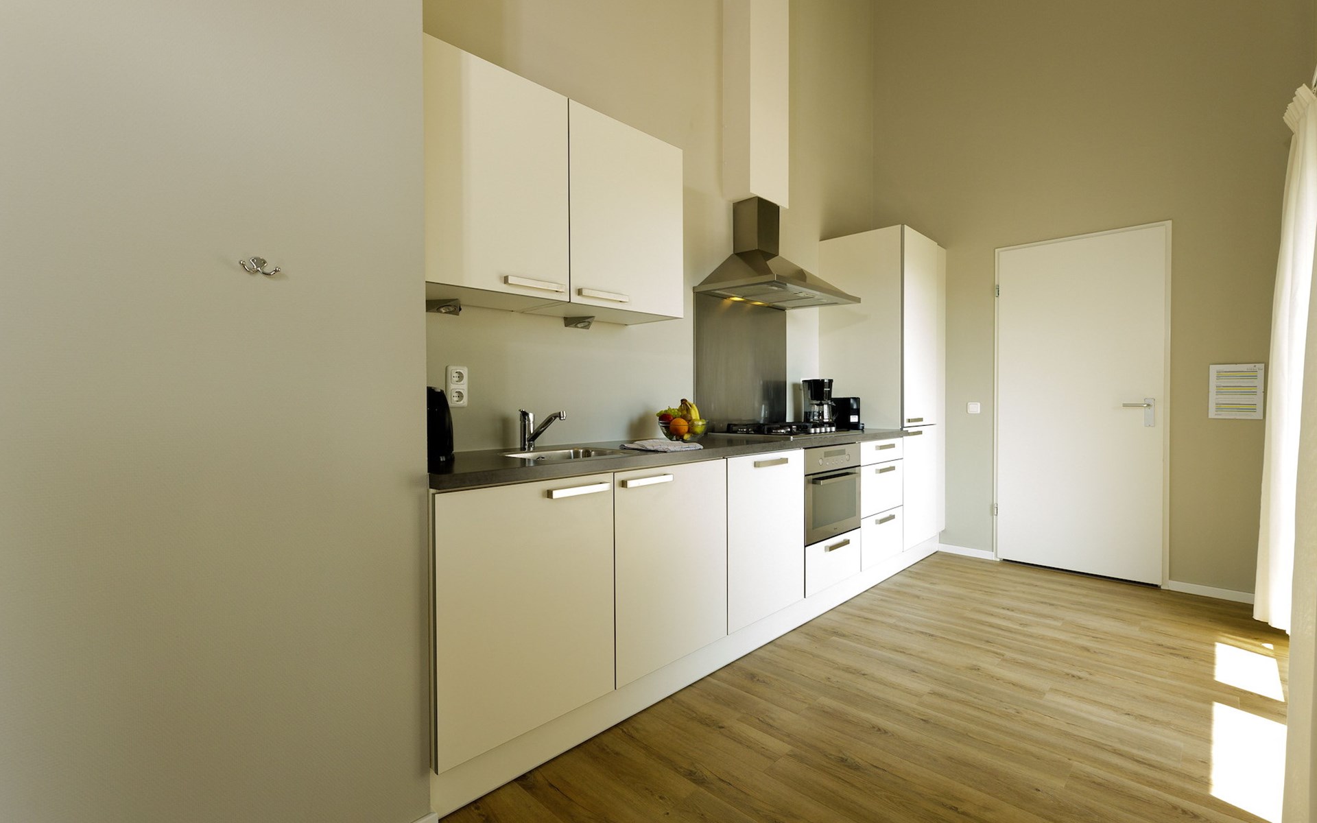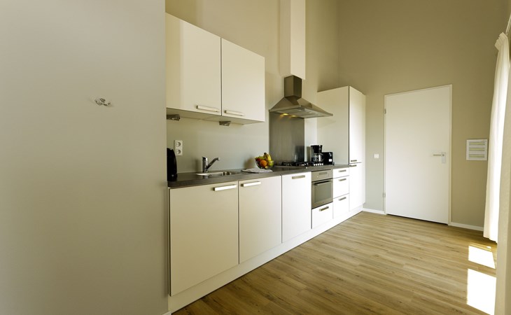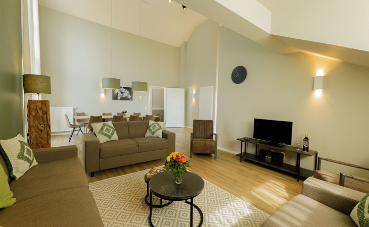 In de sfeervolle woonkamer heb je met jouw gezelschap een zithoek met een televisie tot je beschikking. Daarnaast is er een eethoek waar je heerlijk kunt tafelen. De compleet ingerichte open keuken is voorzien van luxe apparatuur en heeft onder andere een gaskookplaat, combimagnetron en vaatwasser. De woonkamer geeft je toegang tot het