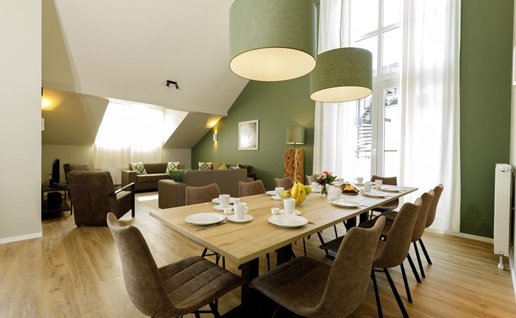 Penthouse Tegernsee is een groot en luxe penthouse voor 10 personen op Dormio Resort Eifeler Tor. Het 6-kamerappartement met 2 badkamers is gelijkvloers en heeft een gebruiksoppervlakte van circa 145 m2. Het appartement bevindt zich op de bovenste verdieping van het appartementsgebouw en is bereikbaar met een lift.