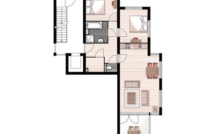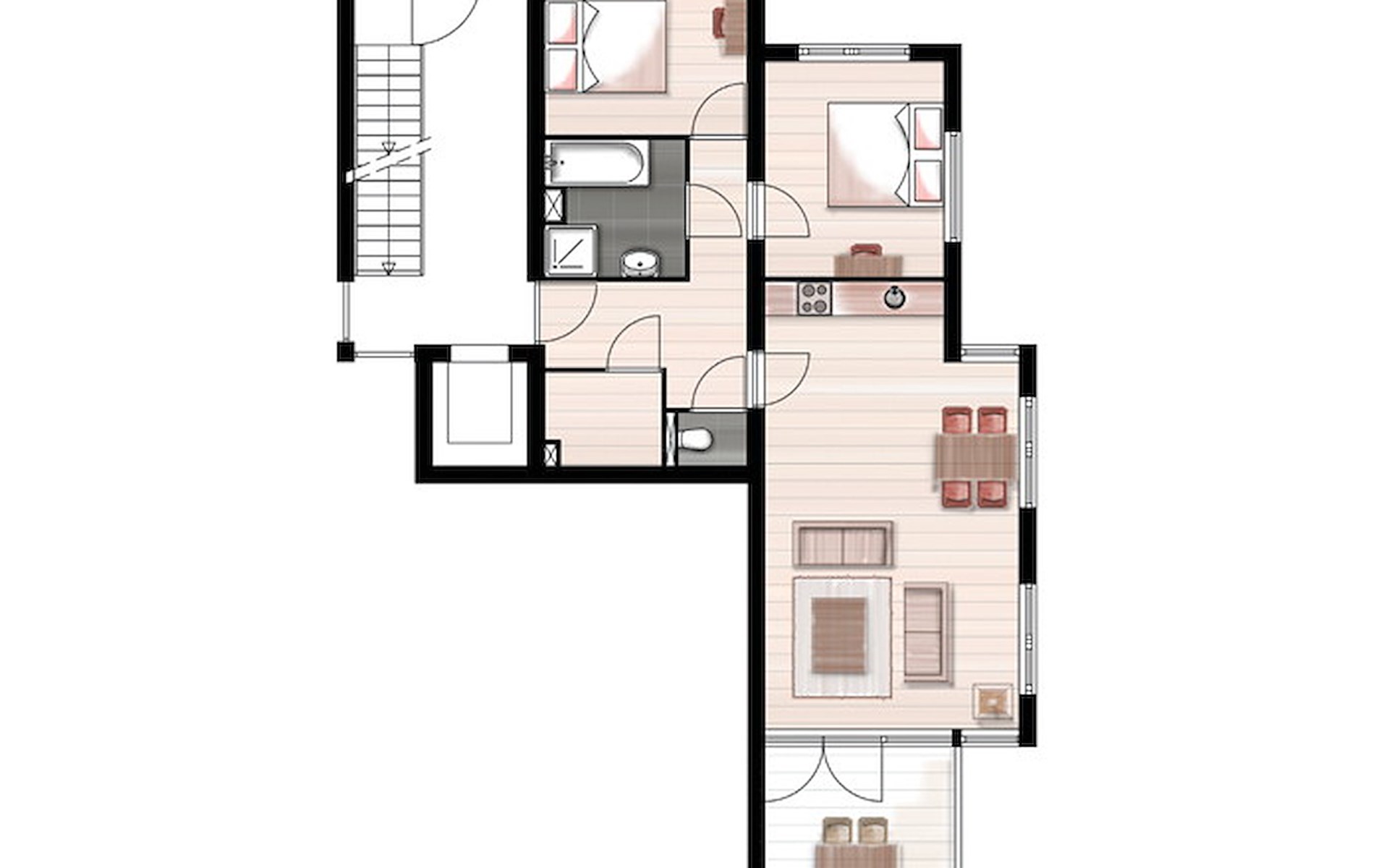 Appartement Ammersee is een comfortabel, gelijkvloers appartement op Dormio Resort Eifeler Tor. Dit 3-kamerappartement met 2 slaapkamers en 1 badkamer is geschikt voor 4 personen en heeft een gebruiksoppervlakte van circa 80 m2. Het appartement is met een lift te bereiken. Je vindt Appartement Ammersee aan de gezellige promenade van het resort. Hier bevinden zich ook onder andere de restaurants, het binnen- en buitenzwembad, de supermarkt en de fietsverhuur.