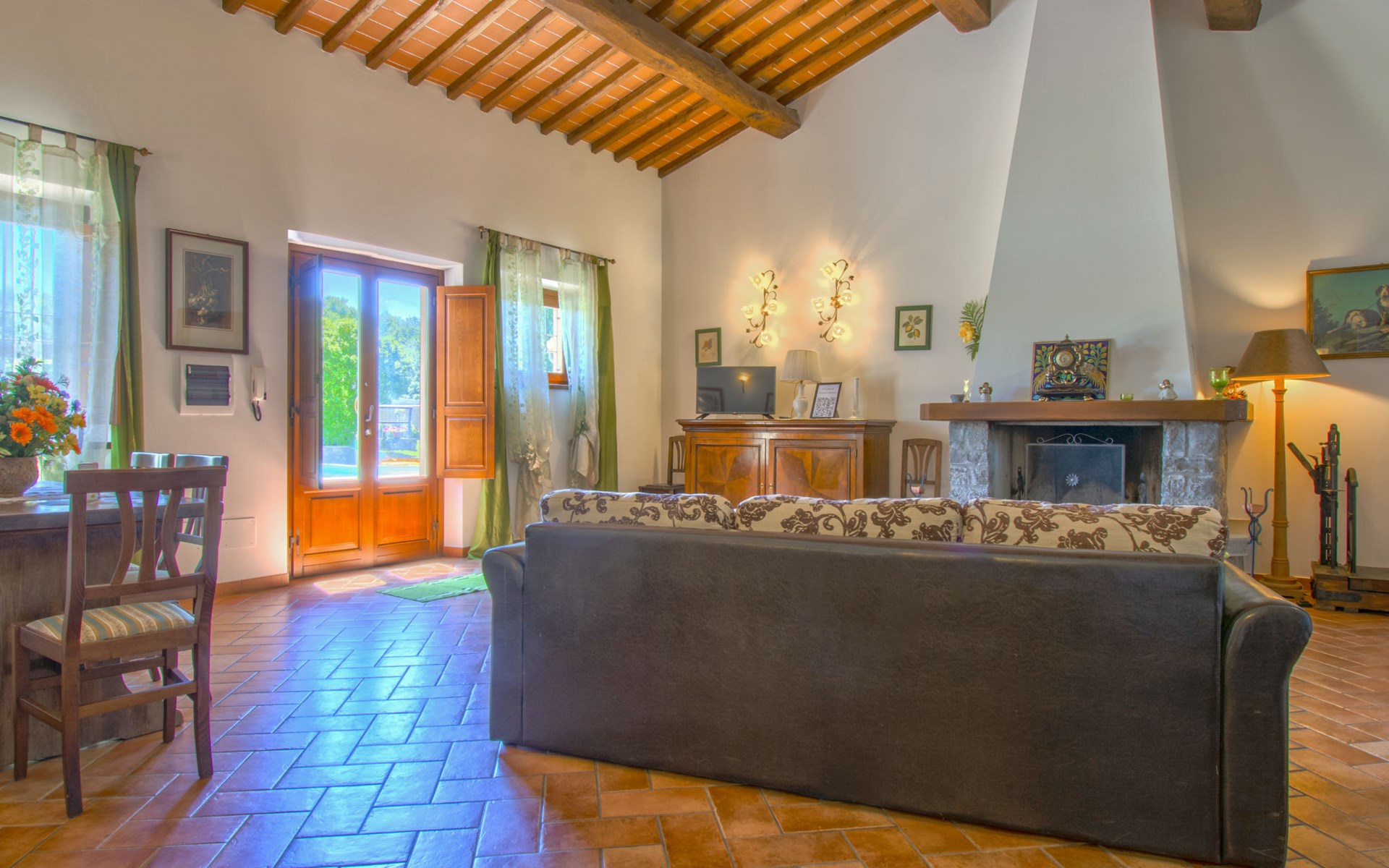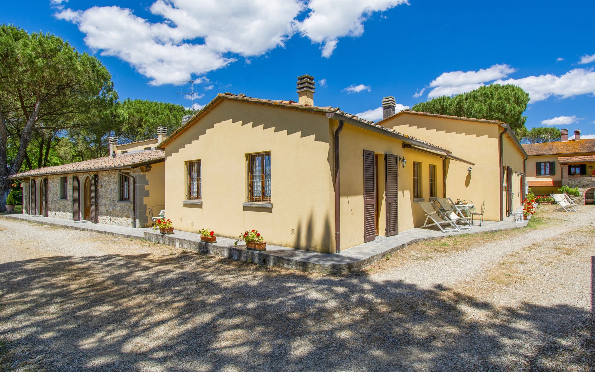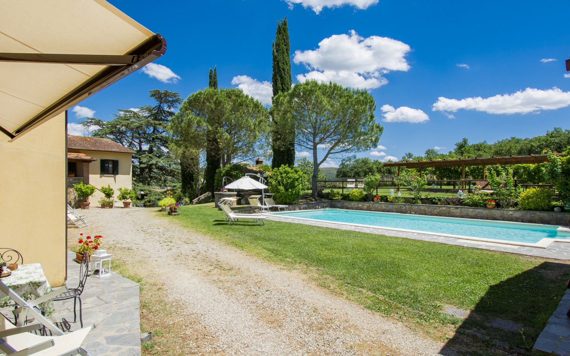 Residentie "Cedri Alti", omgeven door bomen en velden. 4 huizen in de woning. Boven Gavignano in Val d'Ambra, 5 km van het centrum van Bucine, 1 km van het centrum van Ambra, 32.5 km van het centrum van Arezzo, rustige, verhoogde ligging. Voor medegebruik: terrein 14 ha, tuin 6.000 m2 (omheind) met gazon en bomen, weide, boomgaard, openluchtzwembad (12 x 6 m, 70 - 240 cm diepte, seizoensgebonden beschikbaarheid: 15.Apr. - 31.Okt. openingstijden zwembad: 00:01-24:00). Buitendouche, poolhouse, tafeltennis, terras, tuinmeubelen, barbecue. In het huis: tafeltennis, tafelvoetbal. Parkeerplaats. Winkel 1.4 km, supermarkt 7 km, bushalte 500 m, treinstation "Bucine" 3 km, zandstrand "Castiglione della Pescaia" 125 km, openluchtzwembad 1 km. Tennis 1 km, manege 1 km. Attracties in de buurt: Siena 40 km, Montepulciano 55 km, Firenze 65 km, Equestrian Center Arezzo 25 km. Geschikt voor families.
