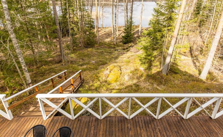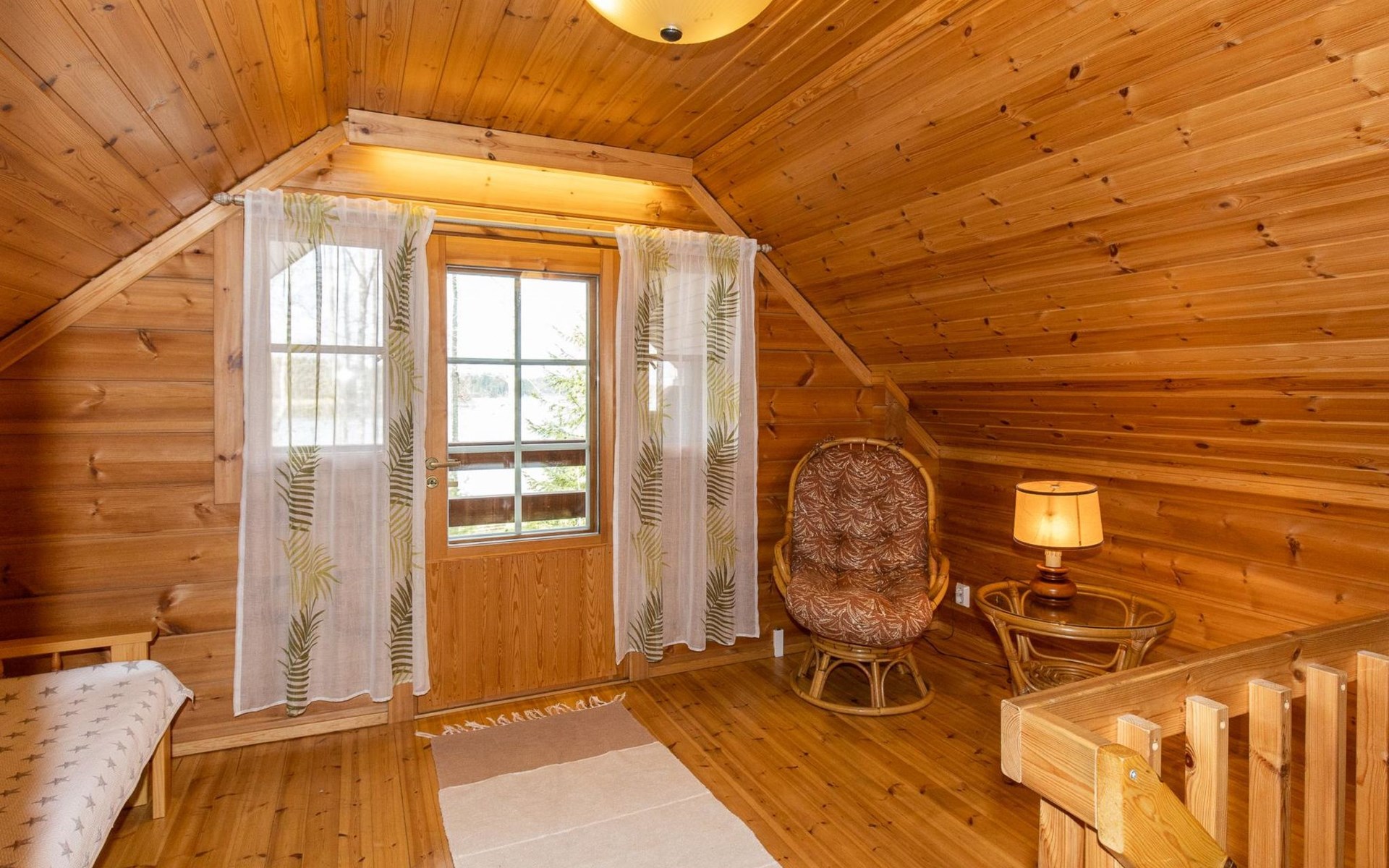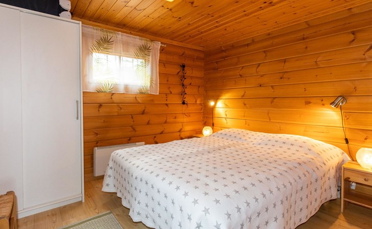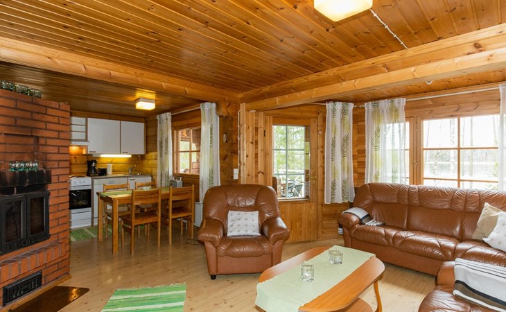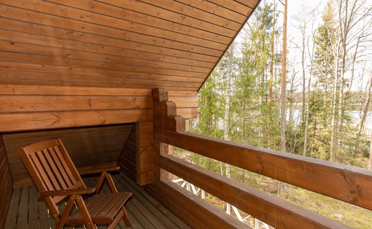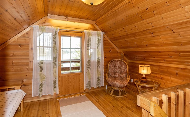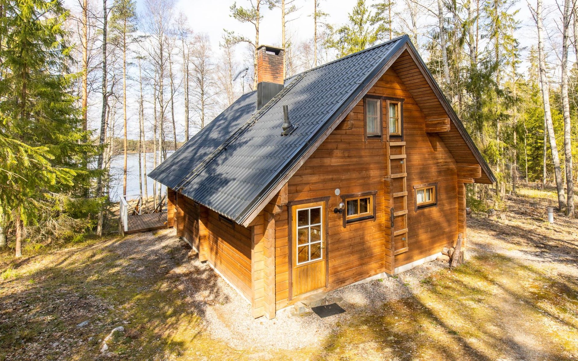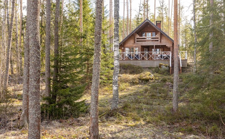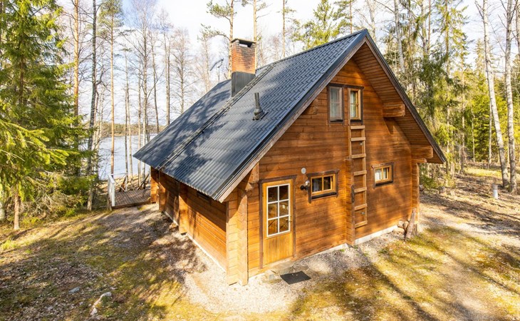 10 km to the south from Vääksy, lake Vesijärvi 30 m, shallow hard clay bottom with thin sand layer, pier, rowing boat, log-built cabin (1994), living room, living room/kitchen, bedroom with double bed on the ground floor, bedroom with two beds in the loft, sofa bed (140 x 190 bed) in the hall of loft. WC in the washroom, sauna with wood-burning sauna stove.