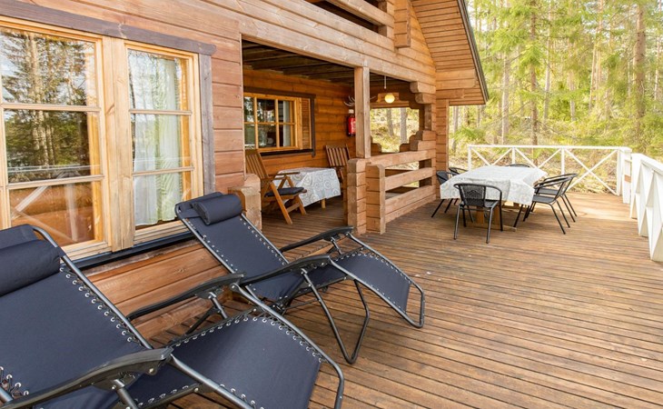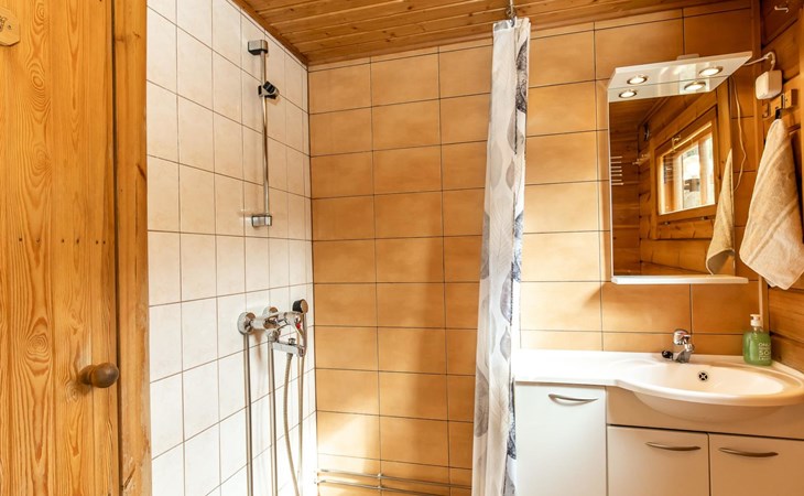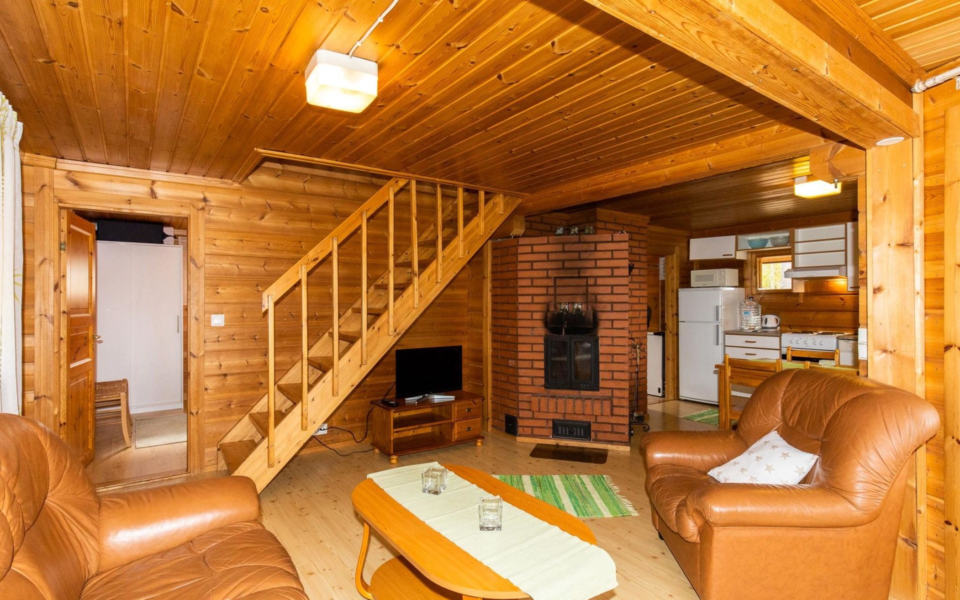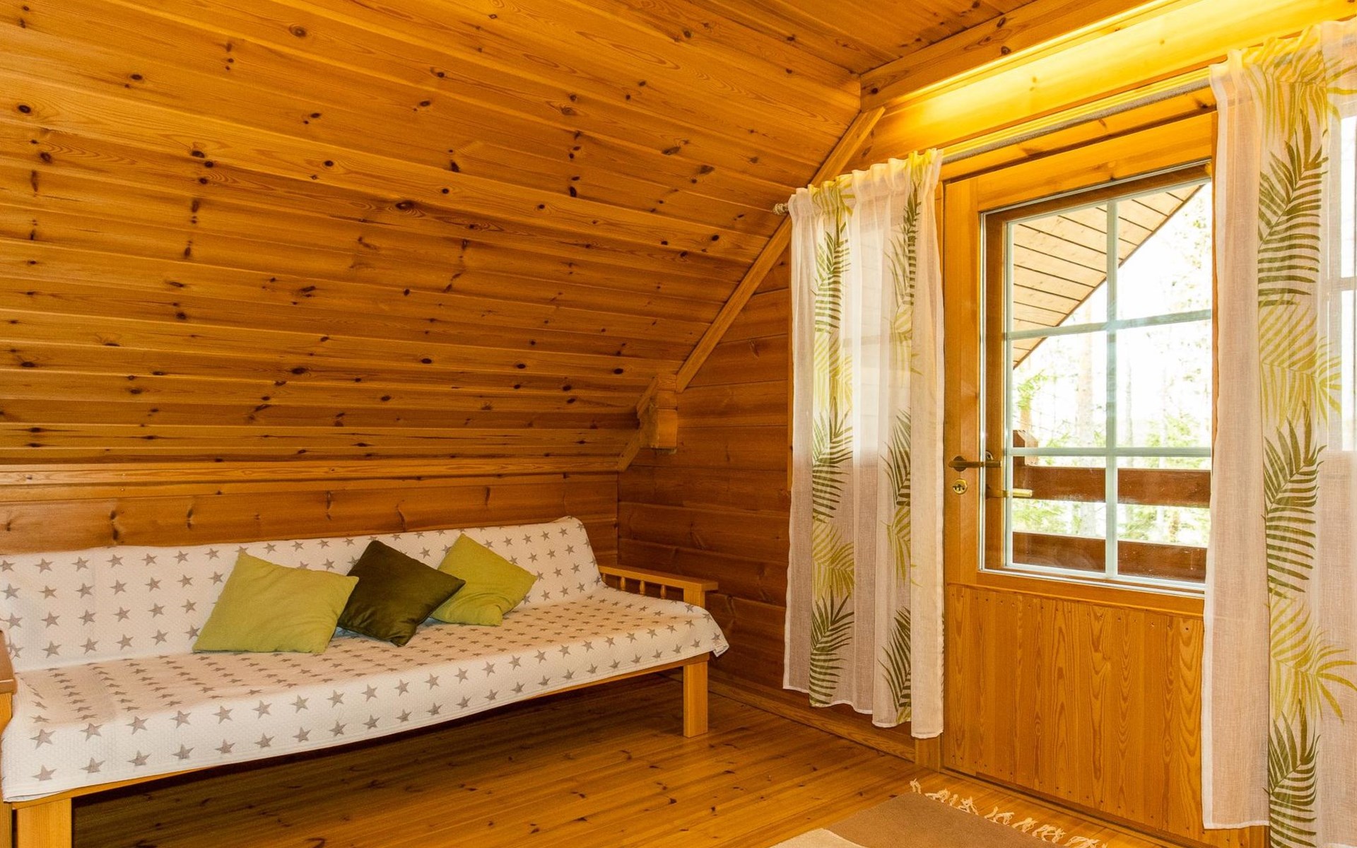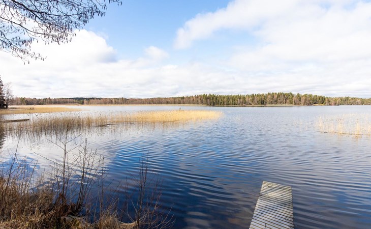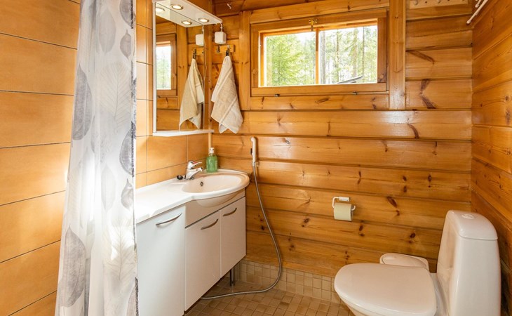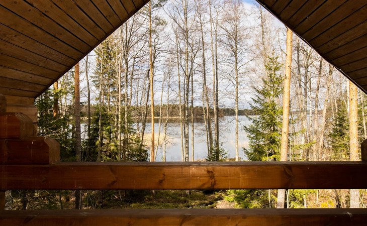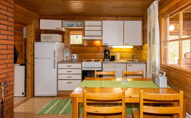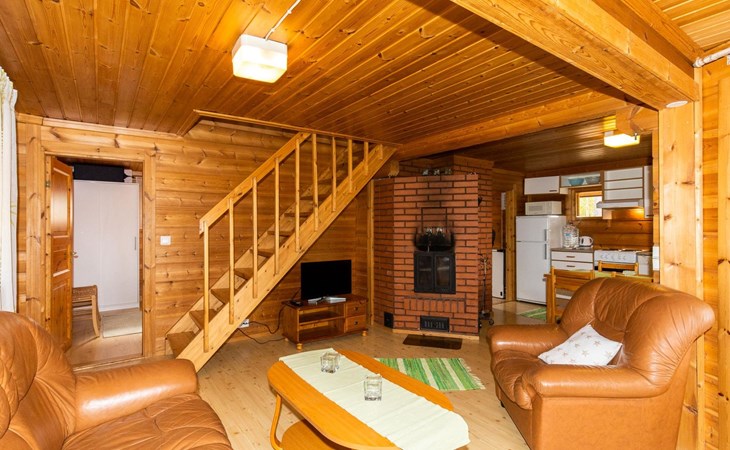 10 km to the south from Vääksy, lake Vesijärvi 30 m, shallow hard clay bottom with thin sand layer, pier, rowing boat, log-built cabin (1994), living room, living room/kitchen, bedroom with double bed on the ground floor, bedroom with two beds in the loft, sofa bed (140 x 190 bed) in the hall of loft. WC in the washroom, sauna with wood-burning sauna stove.